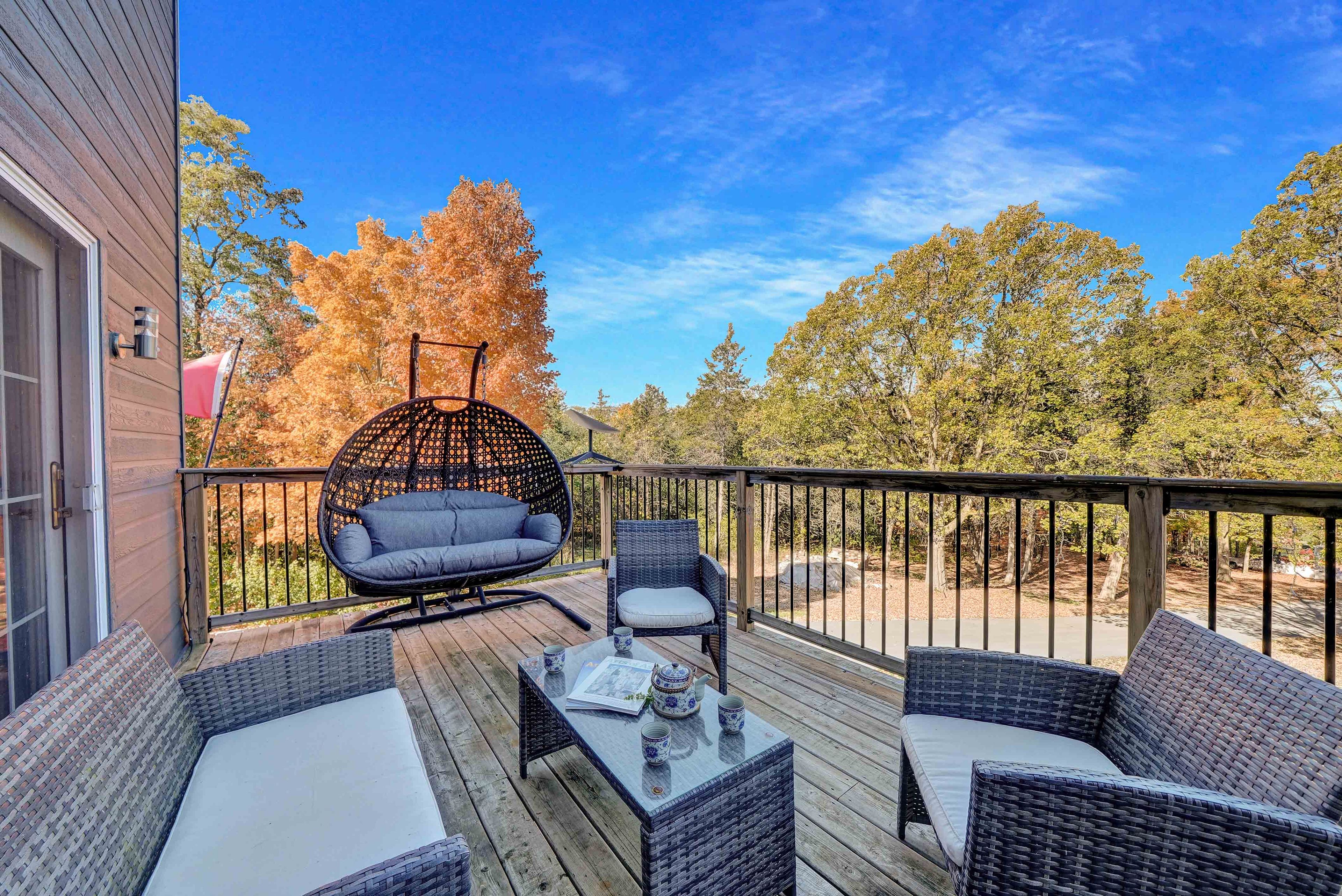 • Beautiful backyard oasis with extensive decking and a fire pit.