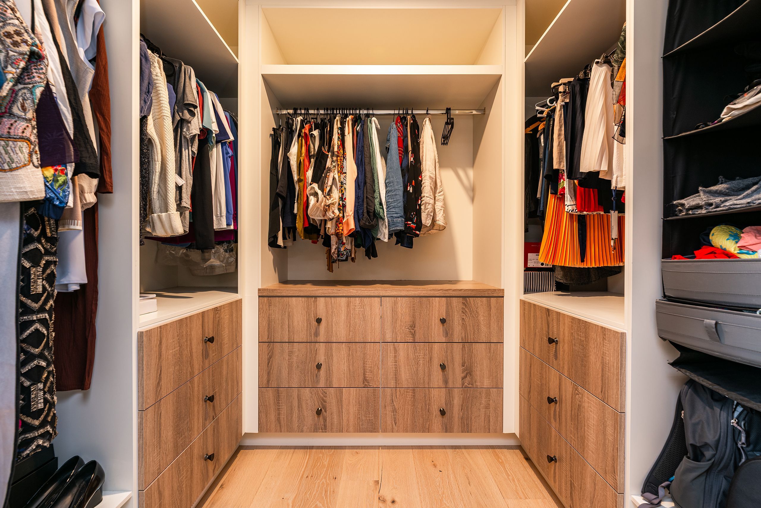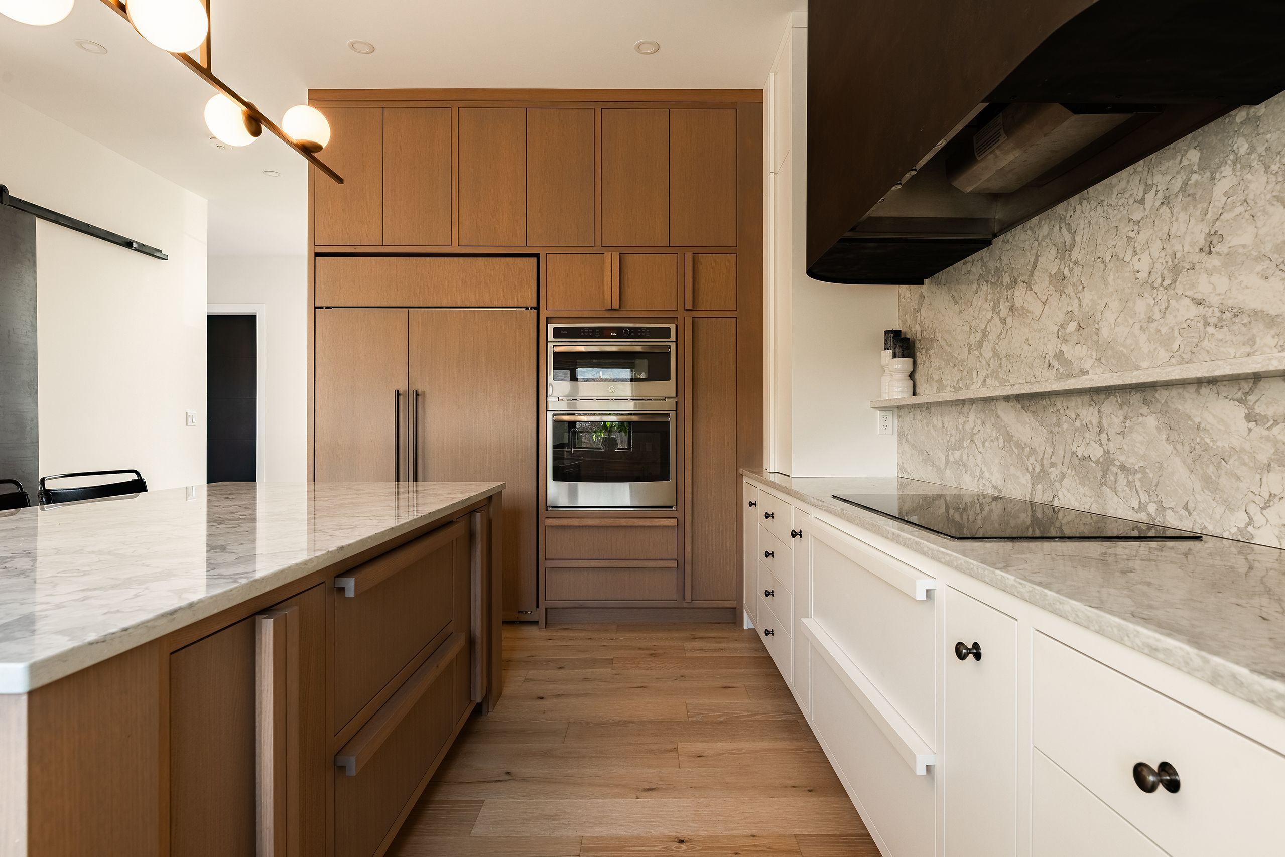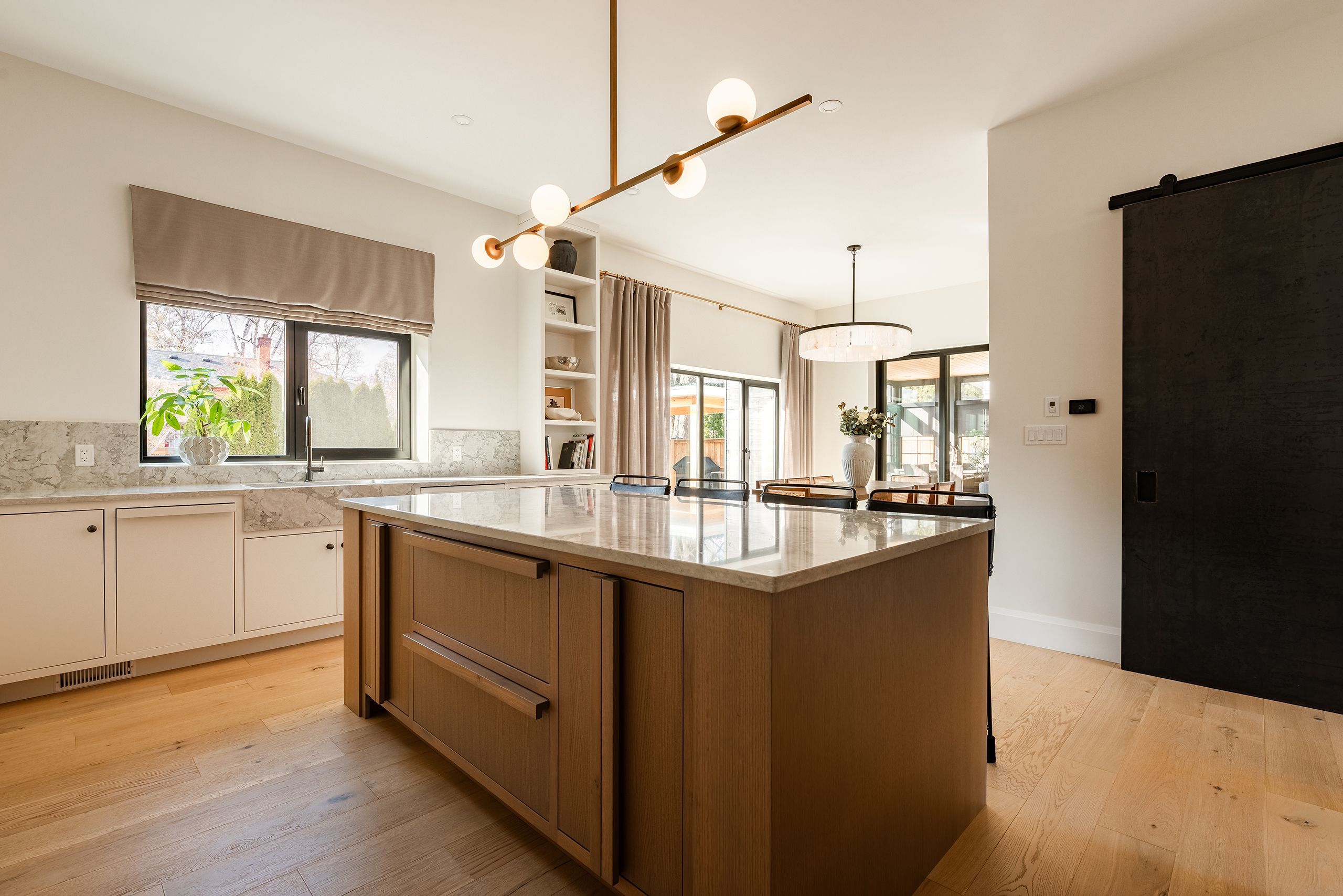 • Spacious kitchen featuring solid wood cabinetry and integrated appliances.