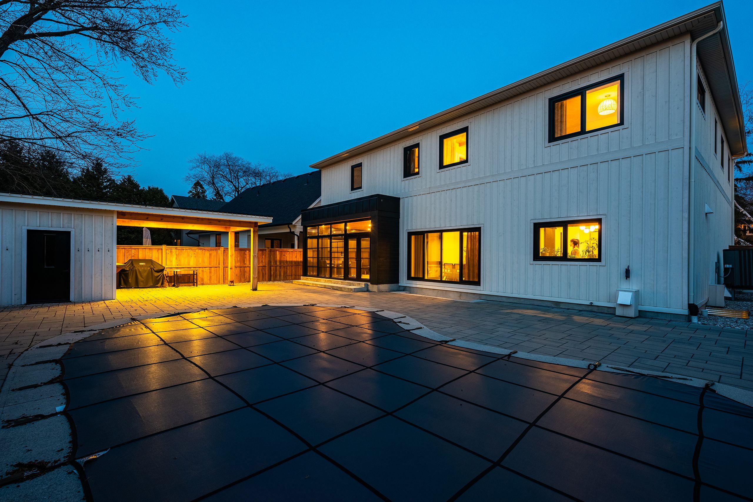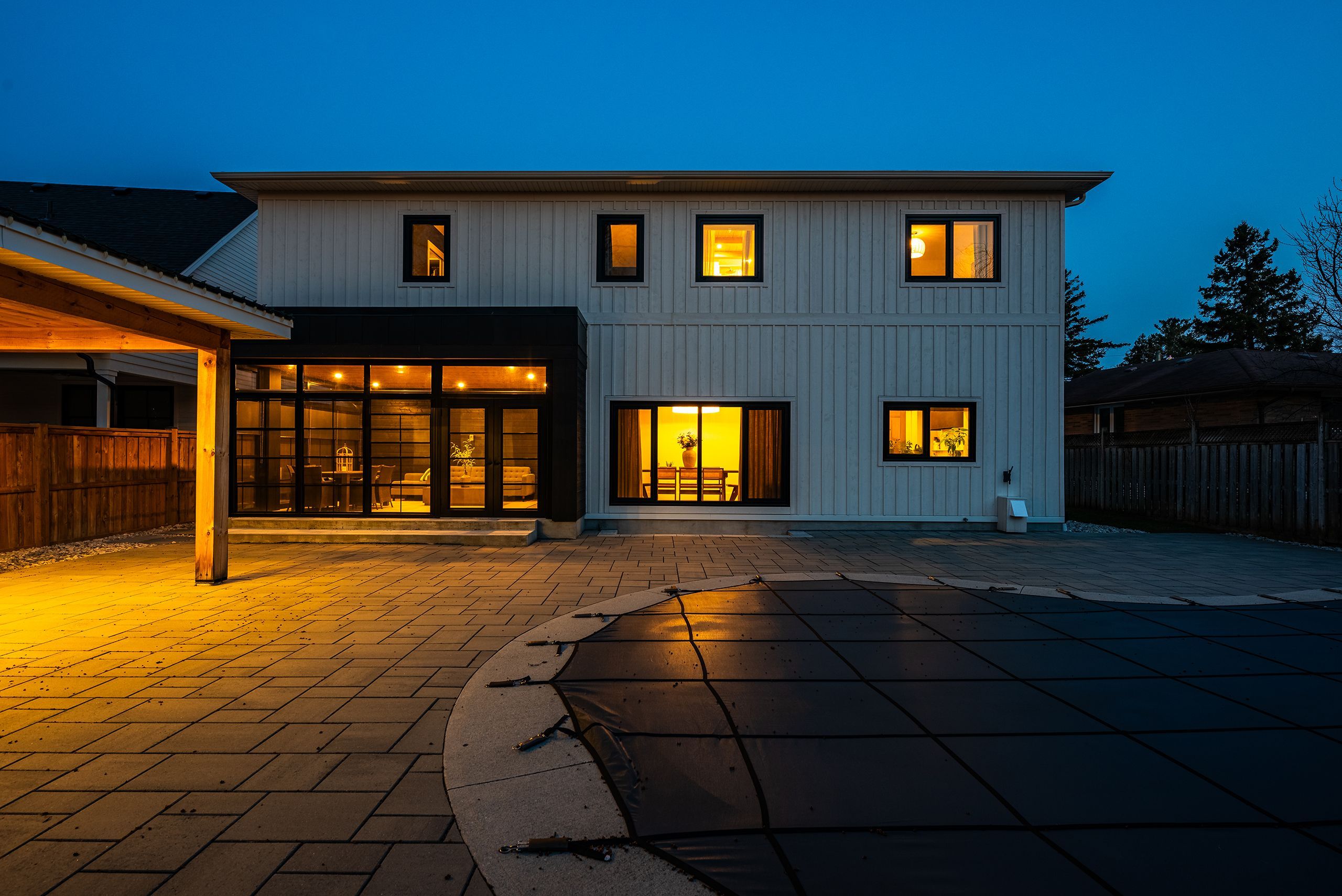 A beautifully crafted custom home completed in 2022, designed by passive design house, award-winning passive house architectural firm, blending sustainability, efficiency and sophisticated modern living. The exterior presents a sophisticated and refined aesthetic, combining natural stone with classic board and batten detailing, while expansive windows invite an abundance of natural light throughout the home. Inside, the interiors, curated by coco & jack design studio, deliver a warm, elevated feel with a seamless balance of modern design and everyday comfort. At the heart of the home, the kitchen is beautifully appointed with custom solid wood cabinetry, integrated appliances and clean, functional design - perfectly suited for both entertaining and daily family living. The open-concept layout flows effortlessly, enhanced by the home's thoughtful passive design principles that maximize light, efficiency and comfort year-round. The second level offers four well-appointed bedrooms, including a serene primary retreat with a walk-in closet and a beautifully finished ensuite. Three additional bedrooms share access to two full washroom as well as a versatile second floor den/office. The fully finished lower level extends the home with a spacious recreation area, dedicated gym and a full bathroom, perfect for both everyday living and entertaining. Seamlessly extending the home, the sunroom, enclosed with a custom integrated window system, creates a peaceful, year-round space to relax. Outside, the professionally landscaped backyard offers a private, turnkey setting complete with a custom shed with change room and storage, and a canopy for effortless entertaining. With its west-facing exposure, the pool is perfectly positioned to capture warm afternoon and evening sun. This is a home where architectural integrity, design excellence and lifestyle come together seamlessly - offering a truly elevated living experience in one of oakville's most desirable communities.