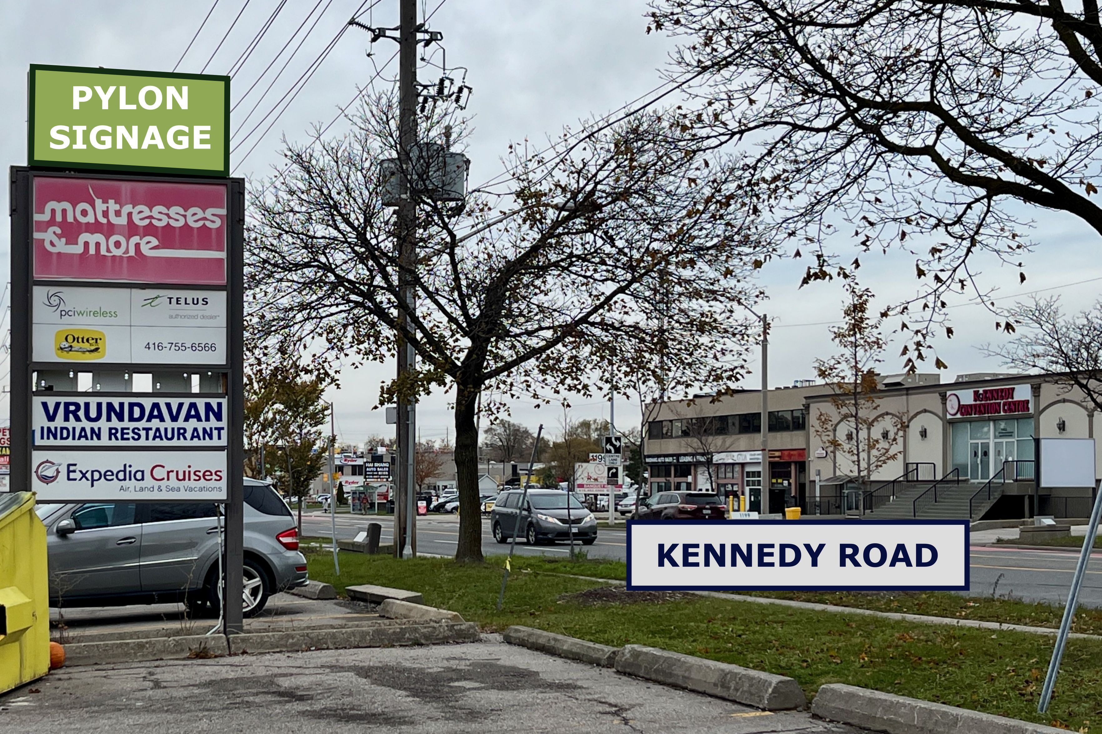 • Strong visibility on Kennedy Rd, steps from a bus stop.