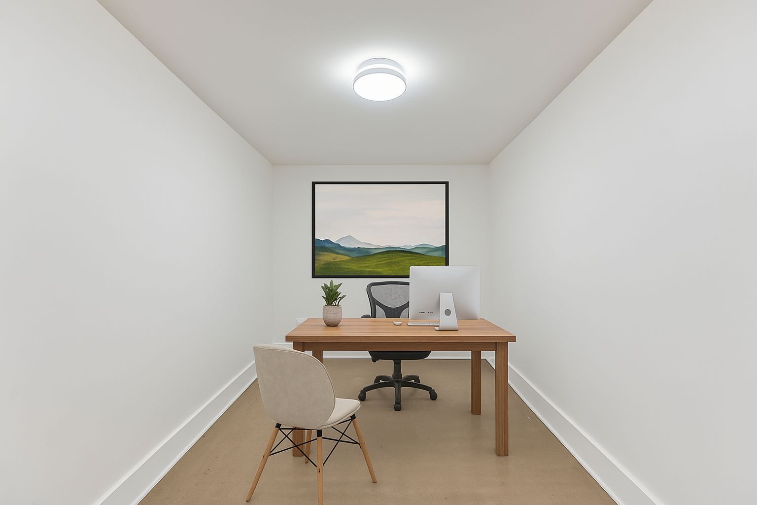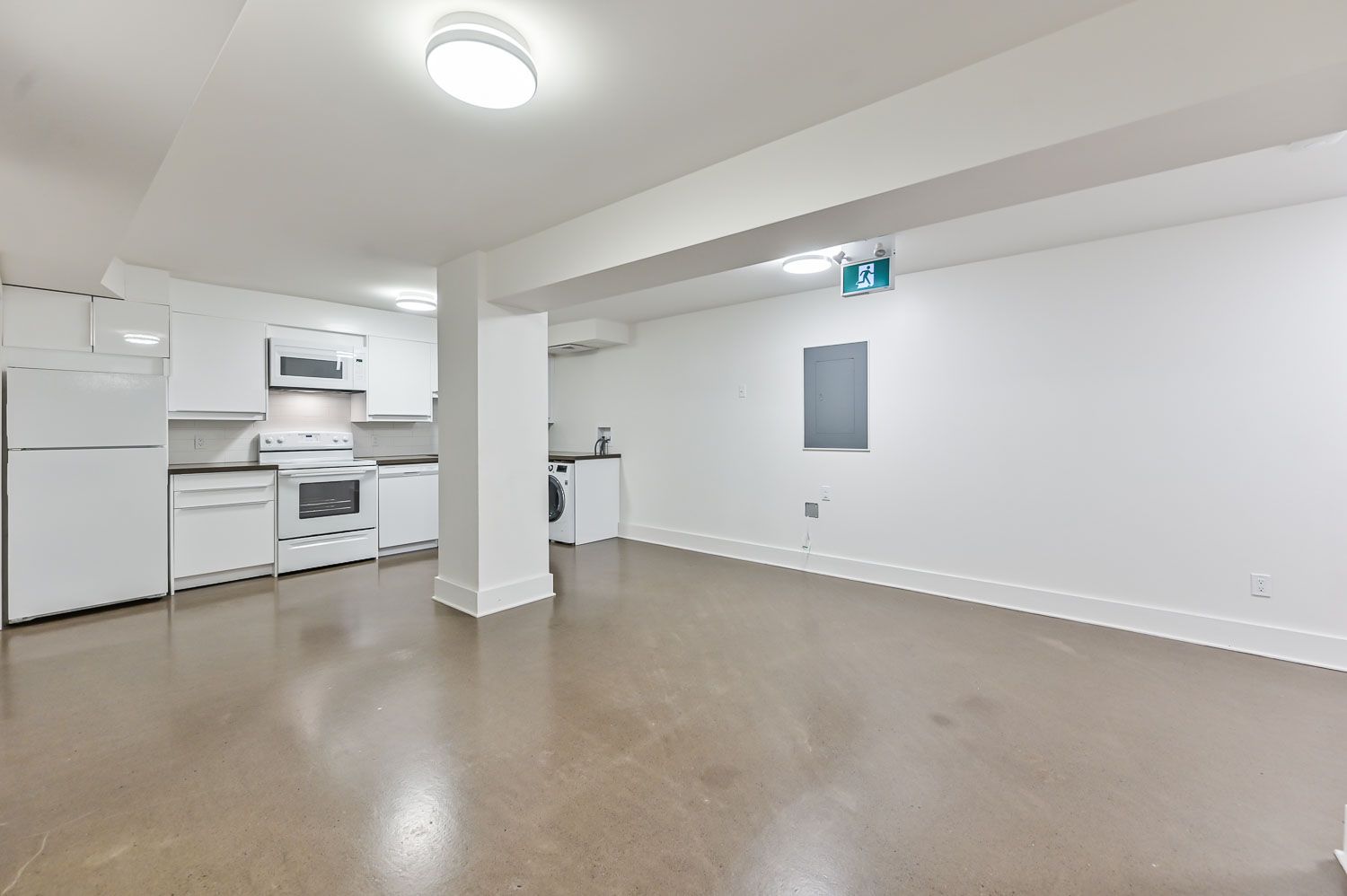 This large and versatile lower-level 1 bedroom + den suite, ideally located in a well-maintained multi-use building at lawrence ave w and caledonia. This versatile suite offers a one bedroom + den layout that can easily function as two private offices-ideal for a professional workspace, live-work arrangement, or a combination of both. Perfect for entrepreneurs, creatives, consultants, and anyone seeking a dedicated and flexible office space outside the home. Offering 846 sq. Ft. Of functional living space, this unit is perfect for those seeking a comfortable home with the flexibility for a live-work setup. The suite features: modern kitchen with quartz countertops and soft-close drawers, heated polished concrete floors throughout, air conditioning for year-round comfort, 3-piece bathroom with a stand-up shower, private in-suite laundry, spacious den ideal for an office or workspace. Tenant responsible for 12. 20% of hydro, enbridge (gas), and water, plus 12. 50% of waste services. Tmi $9/sqft