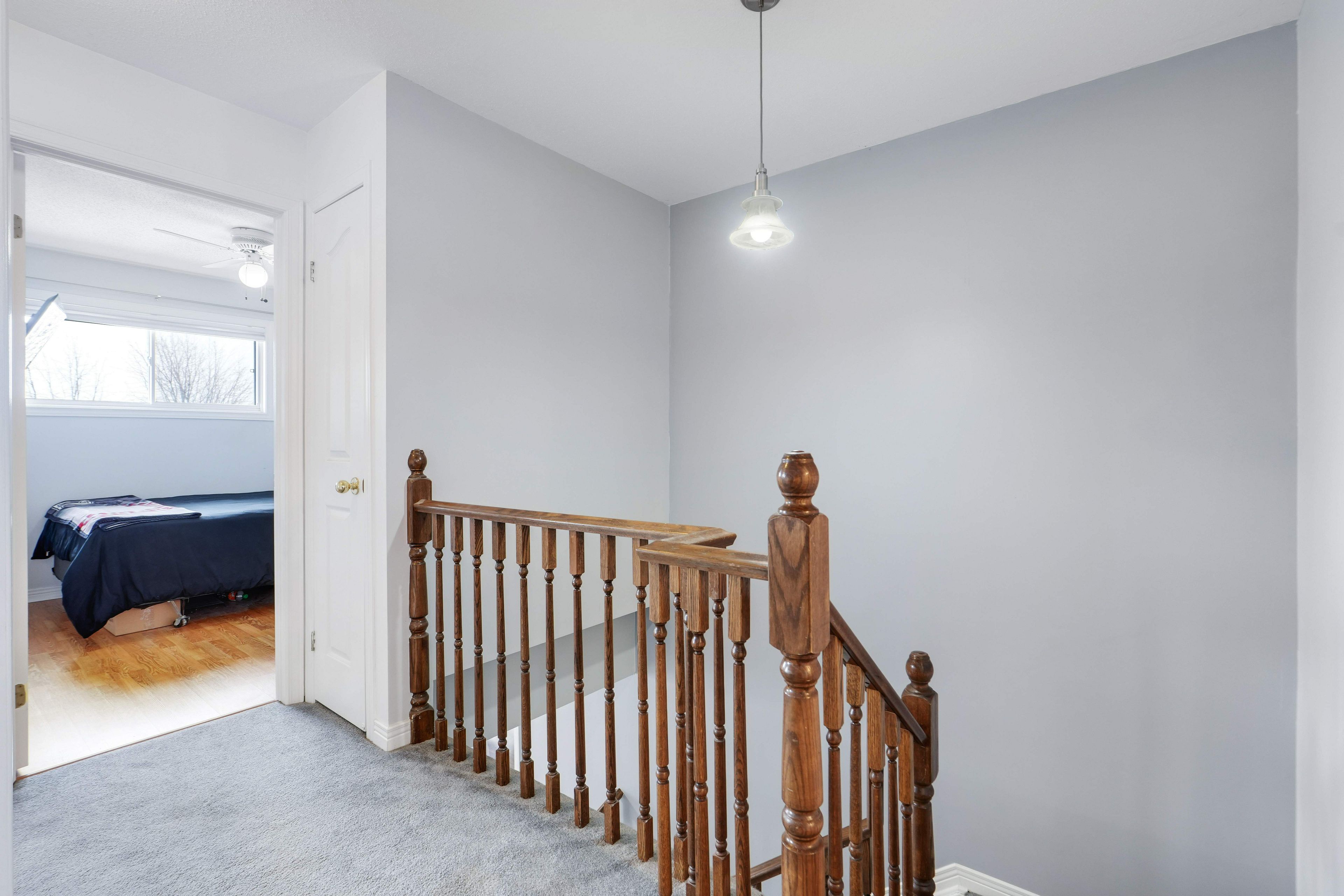 Lovely freehold townhome in avalon, with no rear neighbours!! Enjoy the large family room in the bright finished basement which includes a gas fireplace. Lovely hardwood flooring on main floor which offers a large bright living room with vaulted ceiling and a dining room area. The eat-in kitchen has loads of cupboard space and opens to the large, fenced rear yard with shed. A convenient main floor 2pc bathroom & spacious foyer complete the main floor. Double doors open into the spacious primary bedroom with wall to wall closet space. Bedrooms 2 & 3 and the 4pc bathroom complete the second floor. The lower finished level has a cozy gas fireplace and tons of storage space, in addition to the laundry room. The gas furnace and ceentral air conditioning were newly installed in 2024. The roof is approximately 10 years old. Enjoy the spacious backyard with the added bonus of having no rear neighbours! Move right into this lovely affordable home on a quiet street close to all amenities and schools.