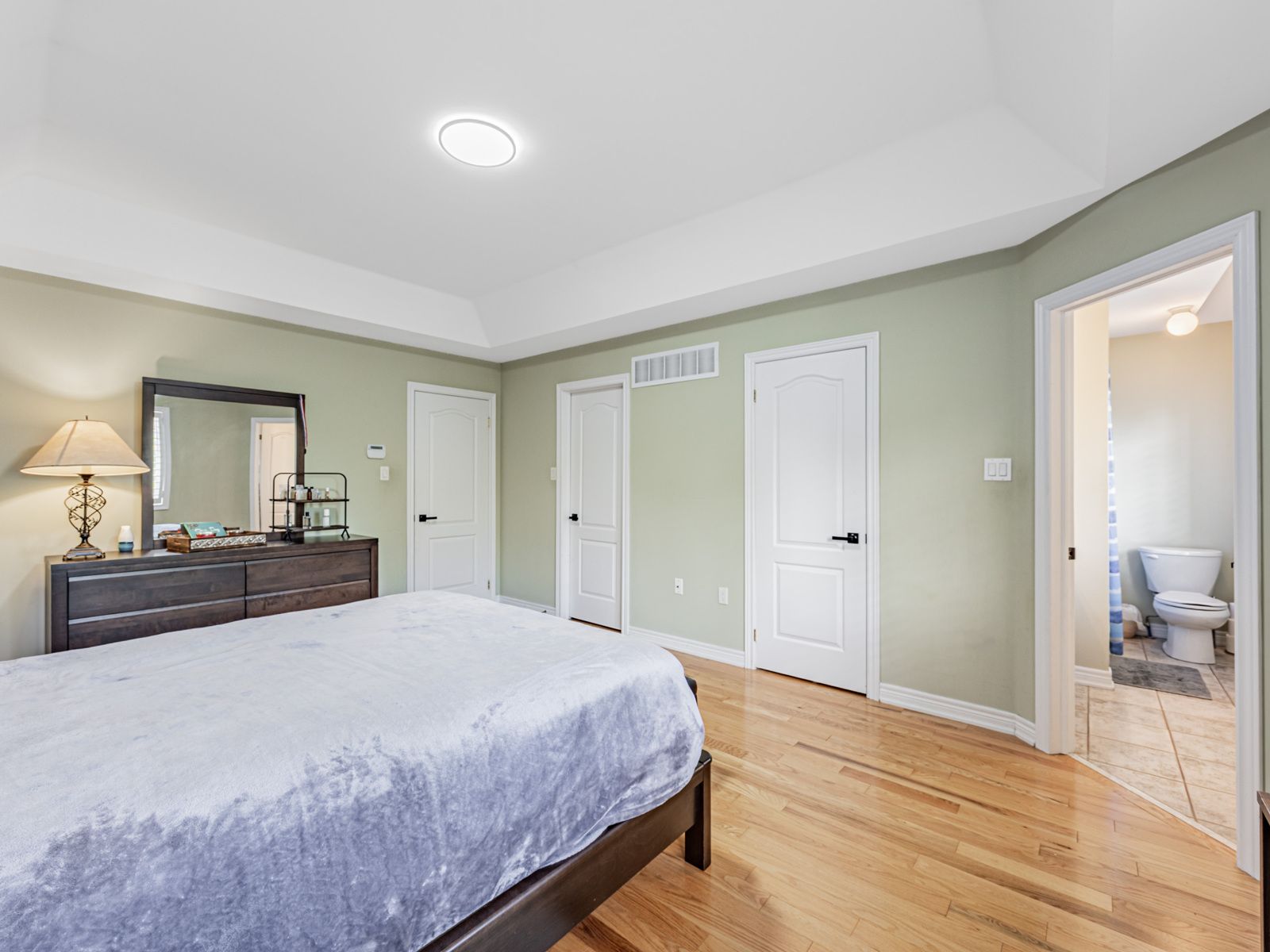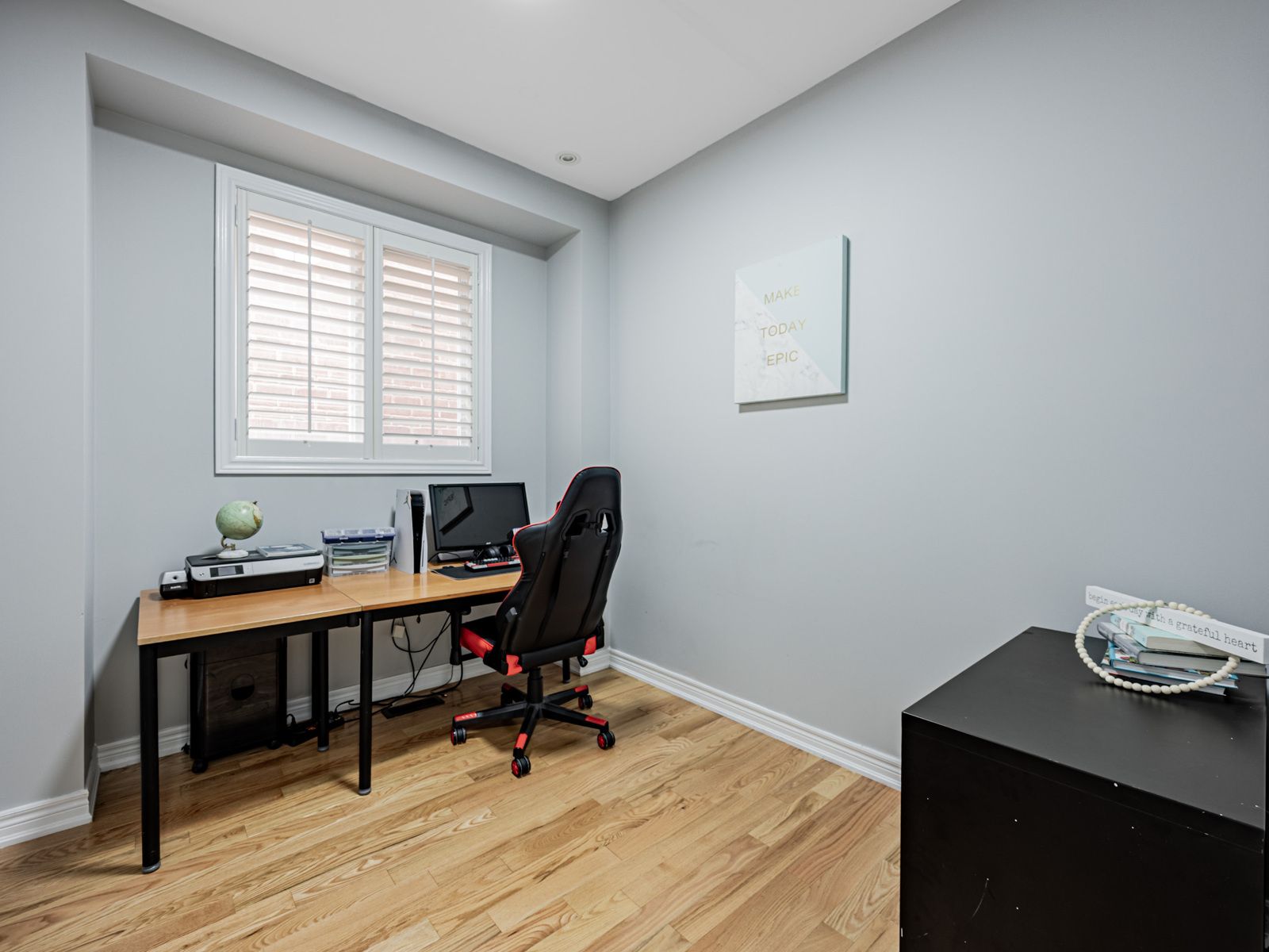 Welcome to this stunning**detached all brick/stone home, offering exceptional curb appeal and modern comfort. This beautifully maintained property features**3 spacious bedrooms plus a dedicated office, perfect for working from home. Enjoy open concept living area** gleaming hardwood floors, upgraded lighting, garage door and california shutters throughout, adding style and function. The kitchen boasts granite countertops and smart layout ideal for everyday living and entertaining. The large backyard provides ample space for outdoor enjoyment and gatherings. The basement offers excellent high ceilings, rough in for a bathroom, providing potential for an in-law suite or recreation. An expansive driveway accomodates over 3 vehicles in addition to the 1 car garage. This home truly combines elegance, comfort, and practicality-all with a flexible closing to suite your needs. Don't miss out on this beautiful home.