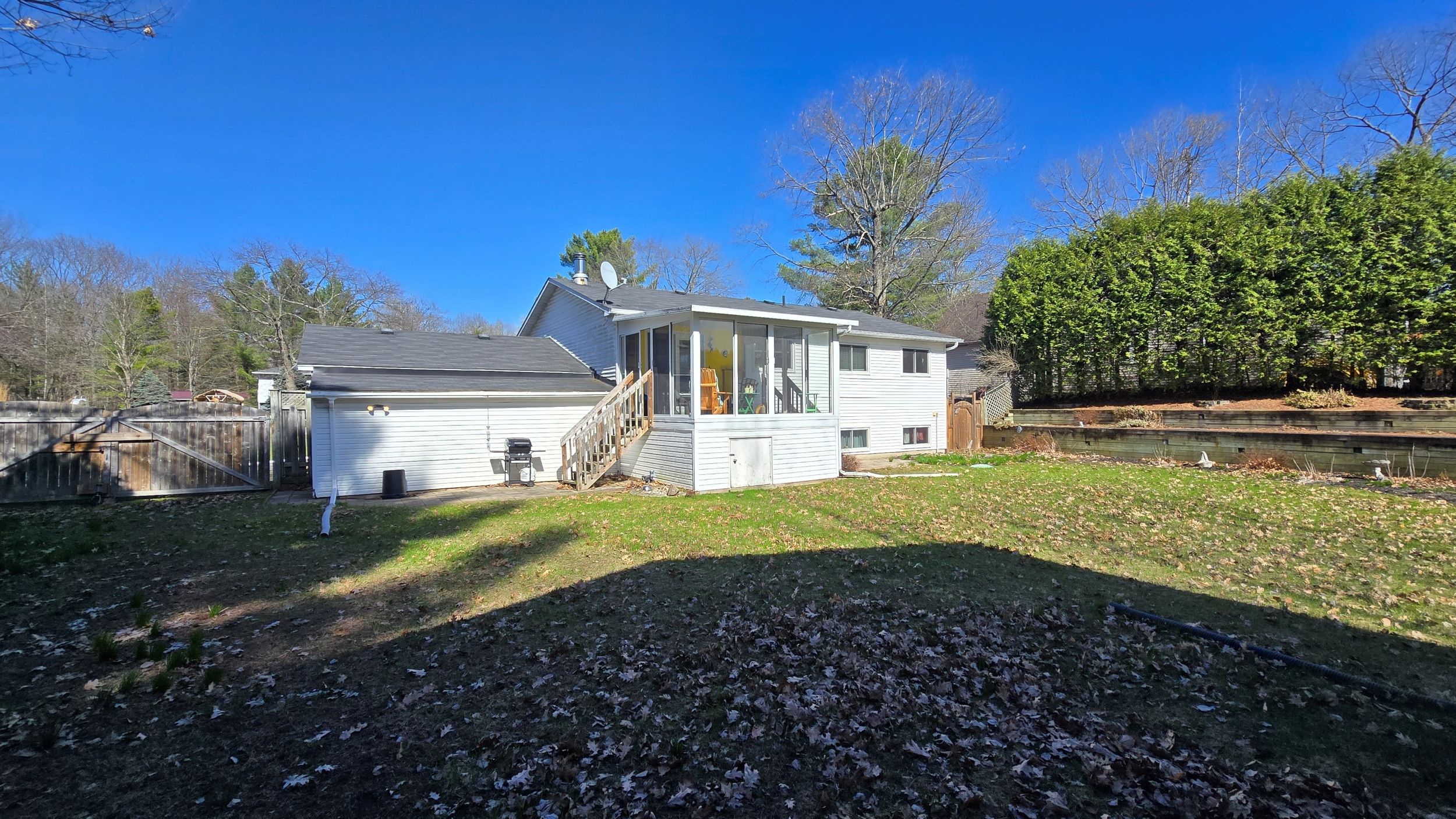 Check out this wonderful 3 bedroom hi ranch bungalow on a quiet cul de sac in constance bay. With an interlock laneway, an oversized double attached garage (22'6" x 22'6"), a 20' x 24' detached garage with power and a double gate access to the south facing backyard, this property delivers space, function, and serious lifestyle appeal. The fully fenced yard is your own private retreat featuring raised gardens, an inground pool and a sunroom overlooking it all. The main level offers gleaming hardwood flooring, a bright skylit oak staircase, an oak kitchen with eating area and formal living and dining rooms. The spacious primary bedroom includes two sets of closets with organizers. The fully finished lower level provides a separate entrance to the side yard and attached garage and includes a bright rec room with pot lighting, tray ceiling, large above grade windows and a woodstove. A den/home office can function as a 4th bedroom. There is a hobby room joining the rec room with a window and closet. Plus a generous storage room with wall-to-wall closet and a large laundry room. Enjoy easy access to the beach and forest trails-just a short walk-and only 2 minutes to the boat launch! Nearby golf courses and a lively village provide restaurants, a pharmacy, a dentist, a community centre/library, sports fields, a rink, a church, a general store and the legion, offering strong recreational and everyday conveniences. This family-friendly location also offers school bus service. Natural gas is available at the street and bell fibe high-speed internet. With city conveniences only 20 minutes away, you get the ideal blend of peaceful, nature-filled living and practical modern amenities! A must see!