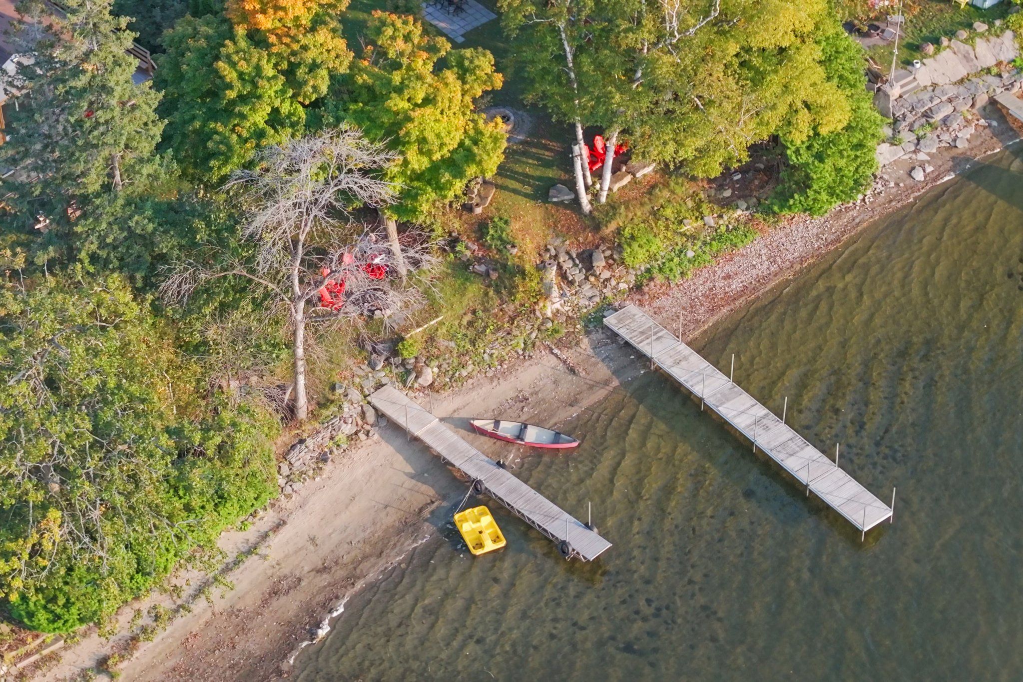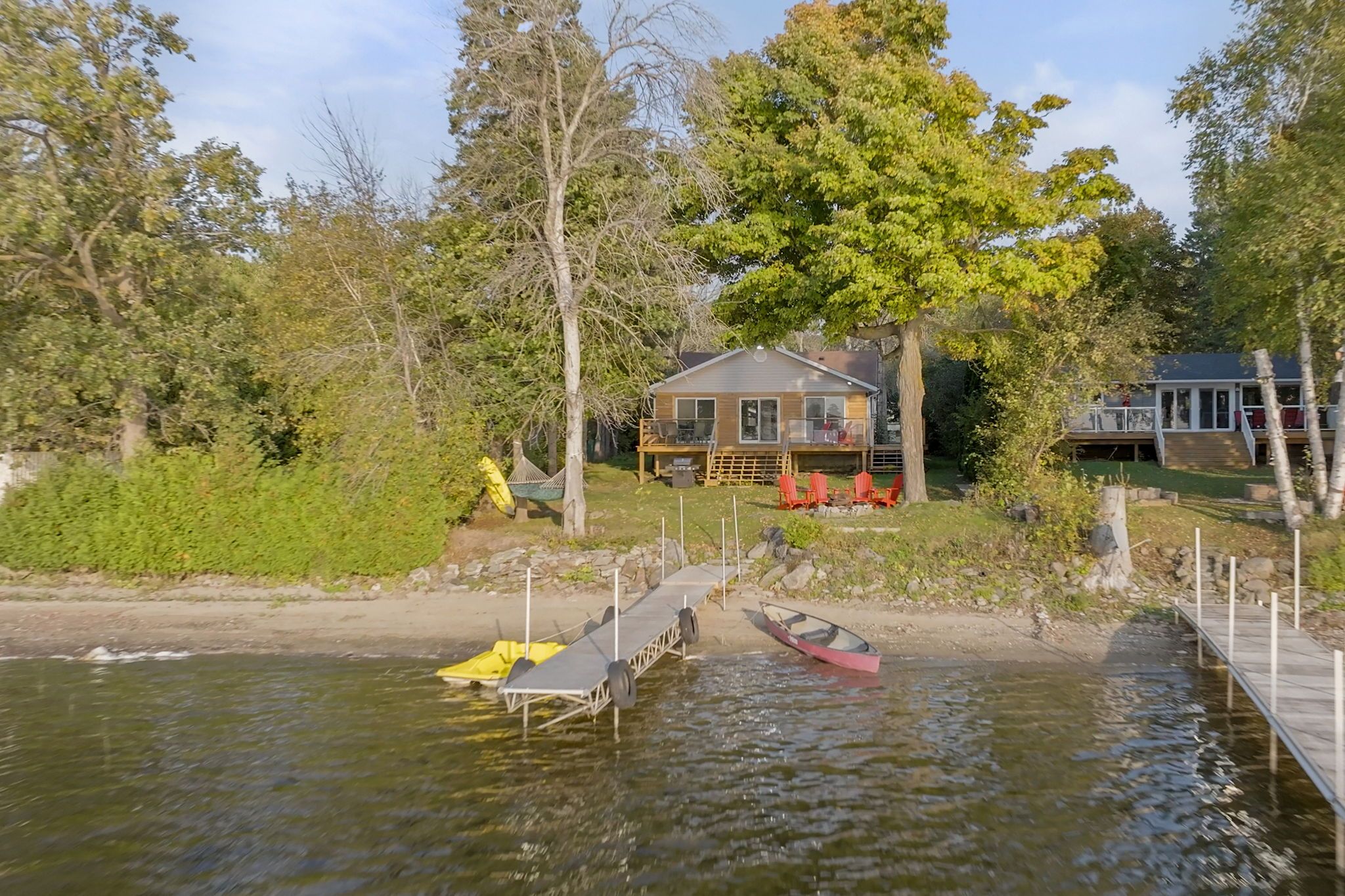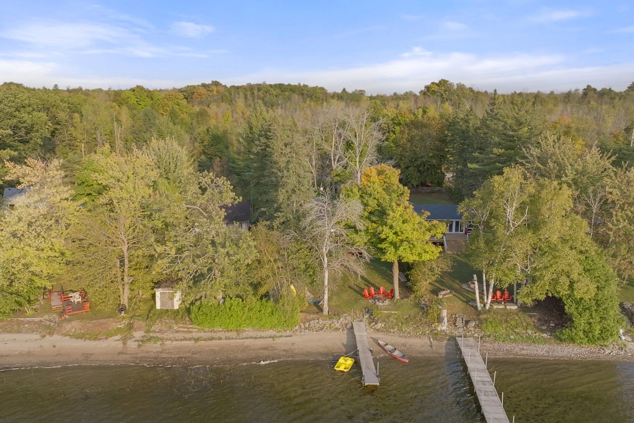 • Waterfront home with direct access to a sandy family-friendly shoreline.