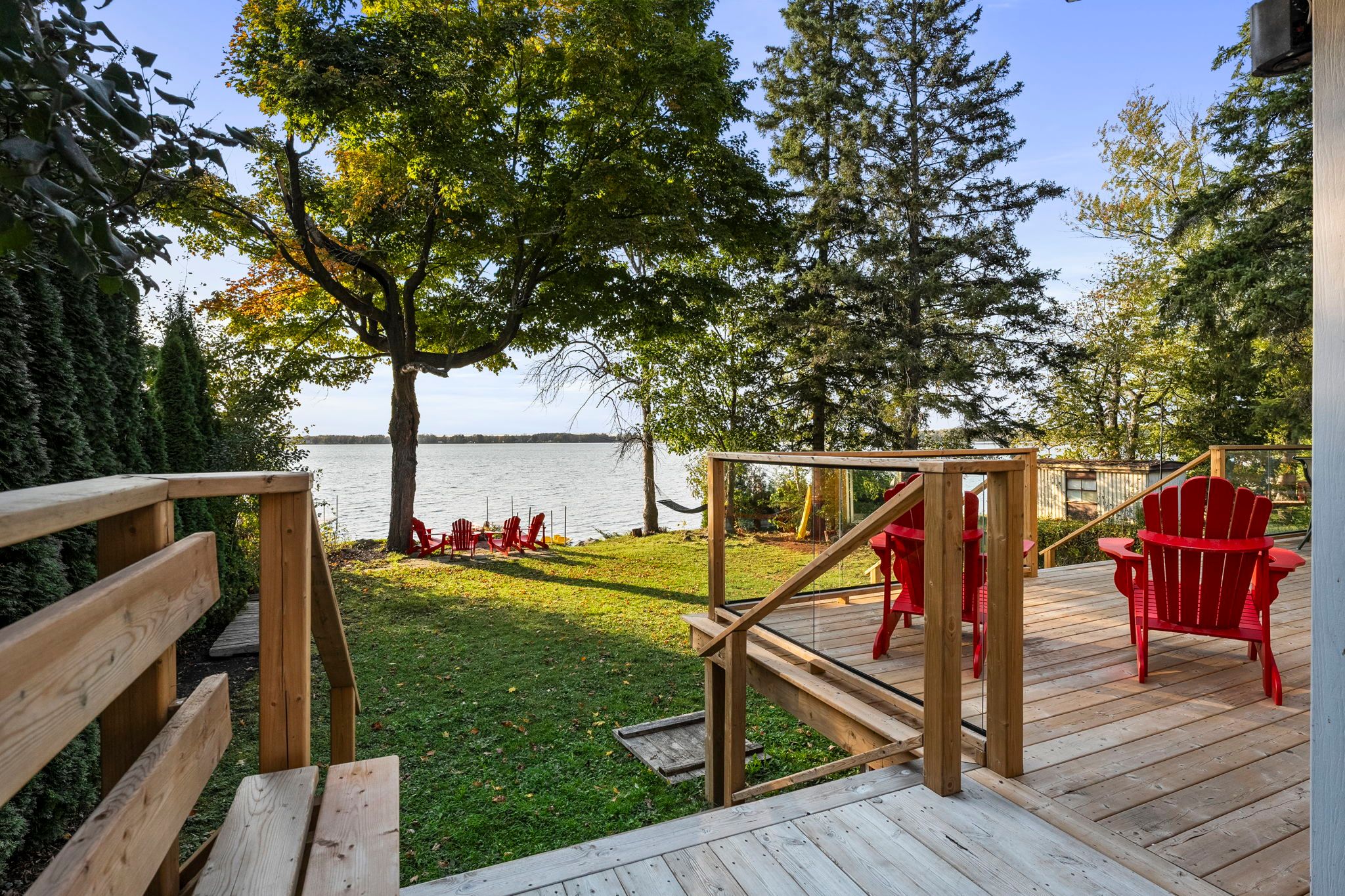 • Brand new wrap-around deck featuring sleek glass panels for outdoor enjoyment.