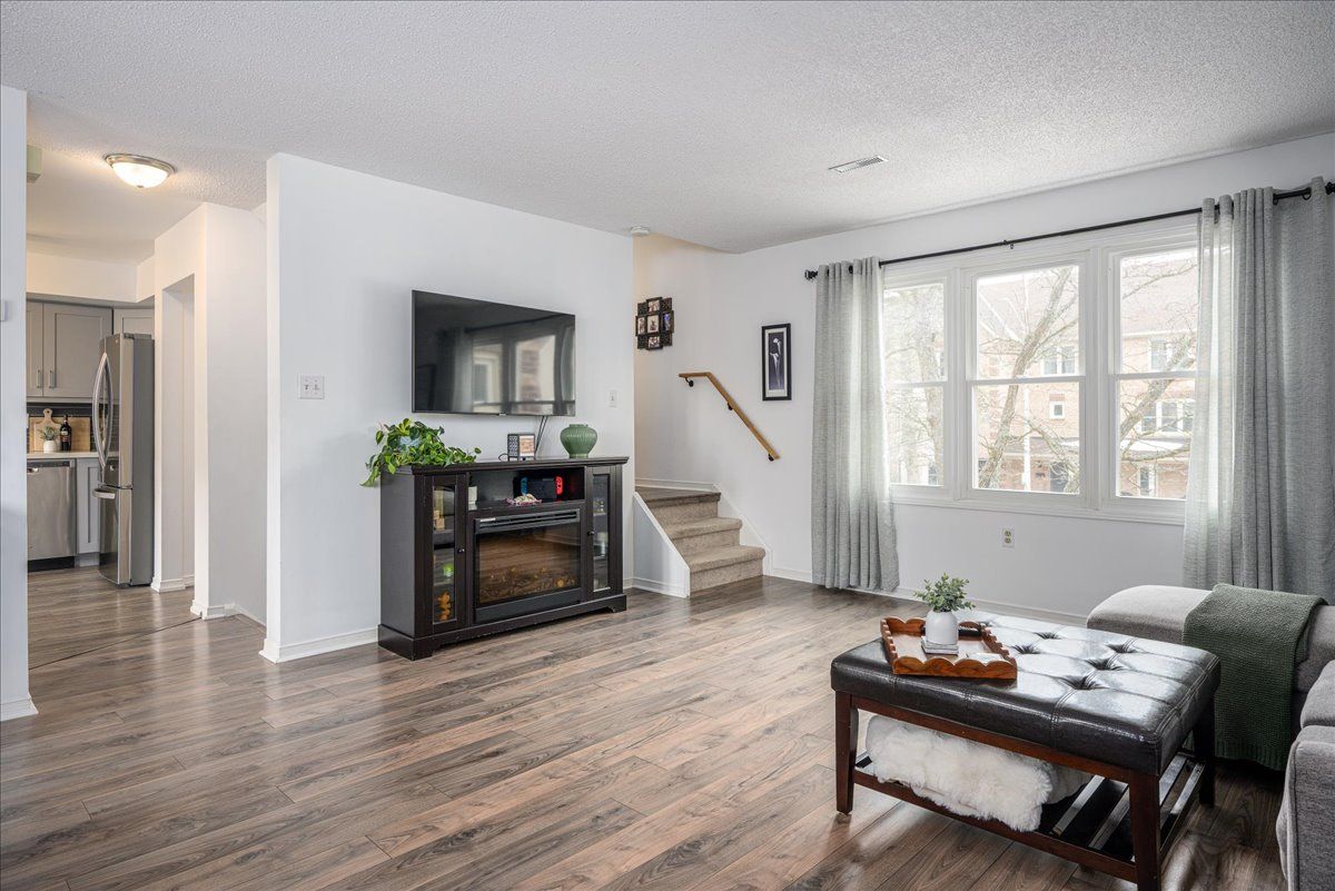 Sun-filled and beautifully updated, this 3-bedroom, 2-bath stacked condo townhome offers stylish, low-maintenance living in a quiet, convenient neighbourhood close to shopping, schools, the go train, commuter routes, and the waterfront. Renovated in 2022 by the current owner, the home features a stunning modern kitchen with quartz countertops, grey shaker cabinetry, an undermount double stainless steel sink, tiled backsplash, stainless steel appliances, and updated laminate, vinyl, and broadloom flooring throughout. Both bathrooms have been fully renovated, and the interior has been freshly painted in neutral tones, creating a bright, warm, and contemporary feel. Large windows fill the home with natural light from every direction, while each bedroom includes a full-size closet and generous window space. Additional highlights include in-suite laundry, a gas furnace (2022), central air conditioning (2023), newer vinyl double-hung tilt windows, a new front door with screen door, a spacious deck, dedicated parking, and clear pride of ownership throughout. Spacious and suitable for all ages, this well-maintained property also benefits from affordable condo fees of just $383. 00 per month, covering exterior maintenance and common areas for easy, worry-free living. Additional parking spaces may also be rented from the condominium corporation on a monthly basis on a first-come, first-served basis. Perfect for all ages and anyone looking for an investment property.