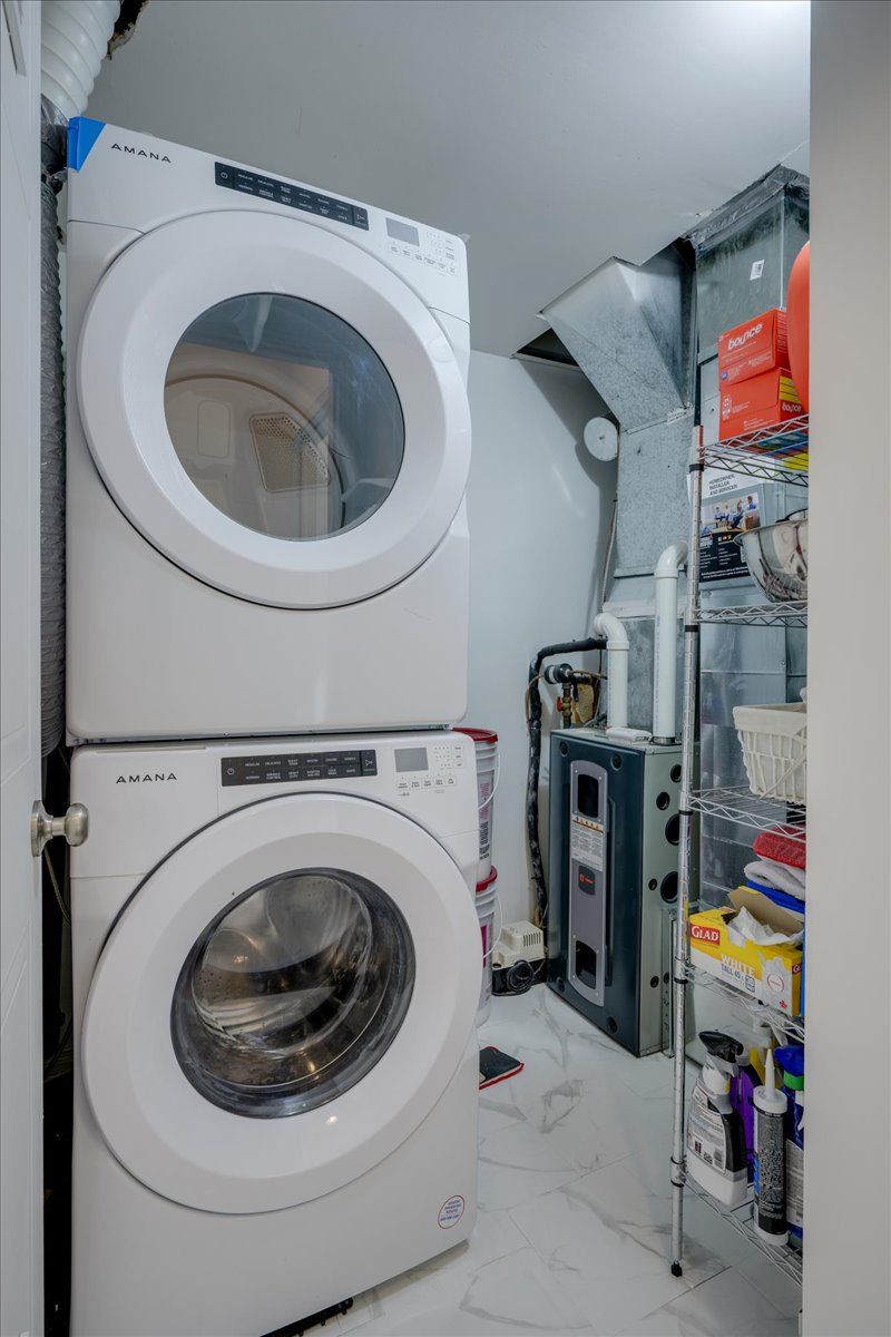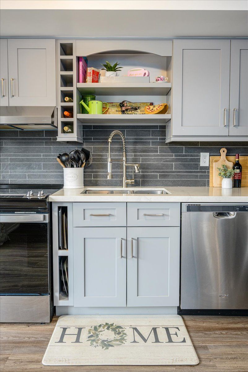 • Modern kitchen features quartz countertops and stainless steel appliances.