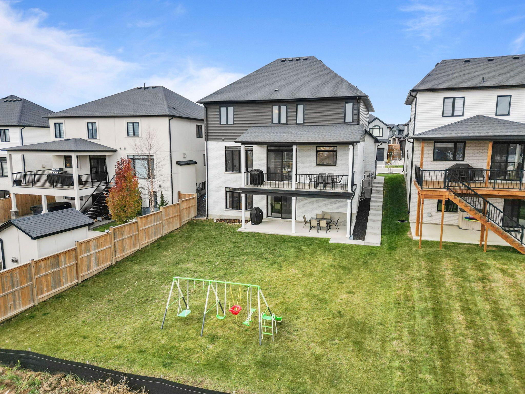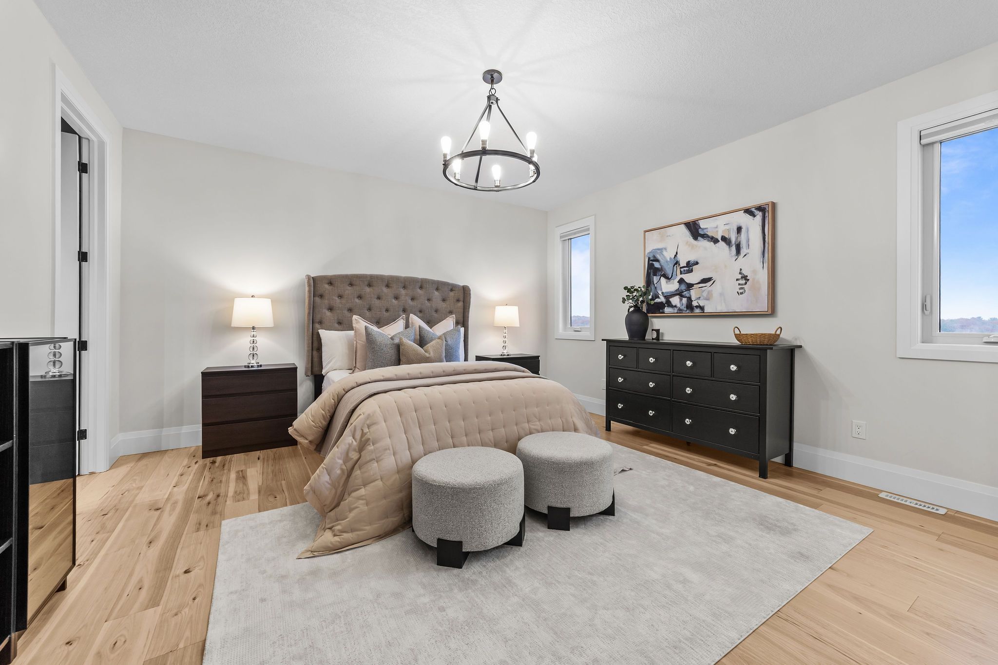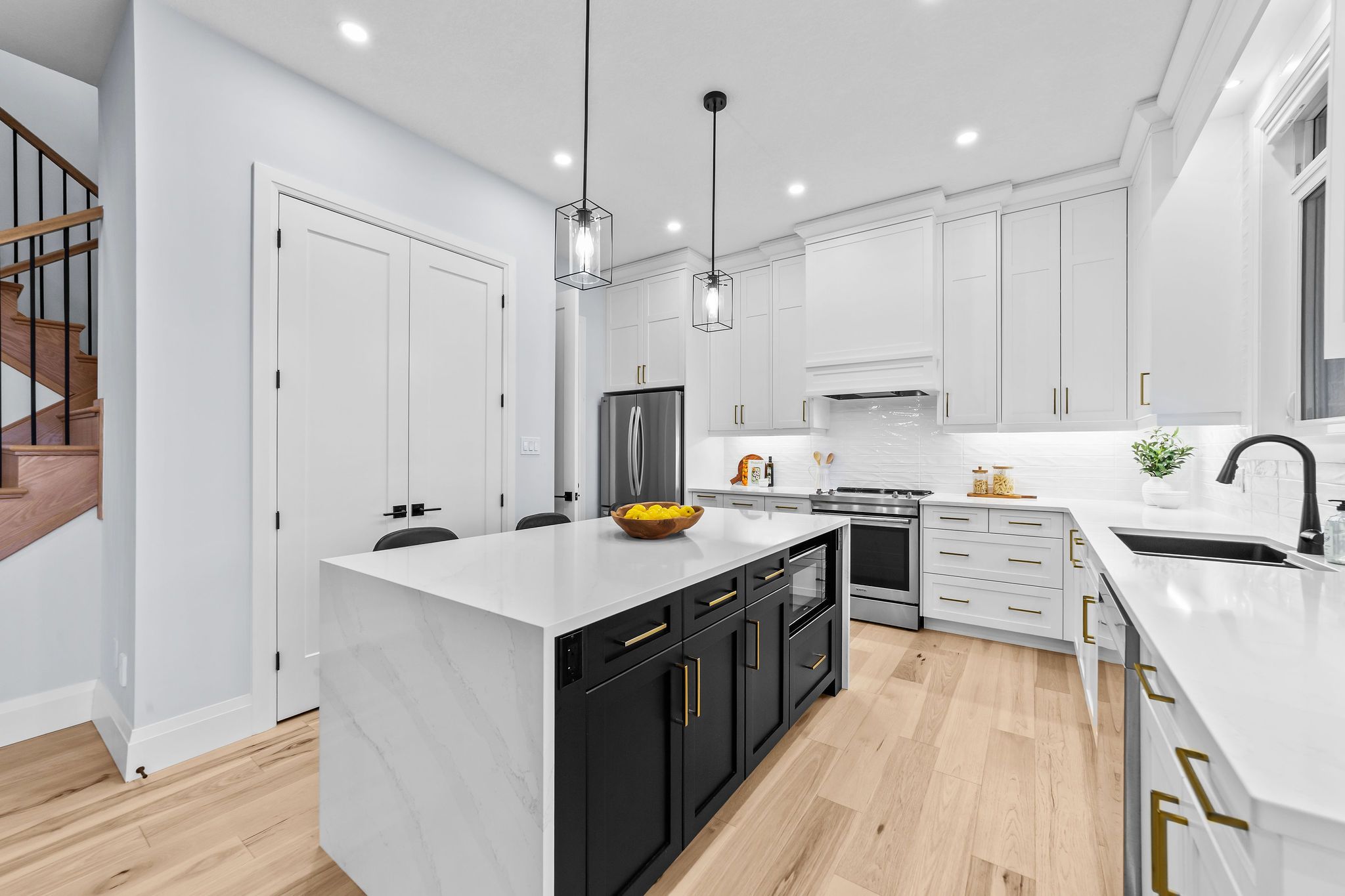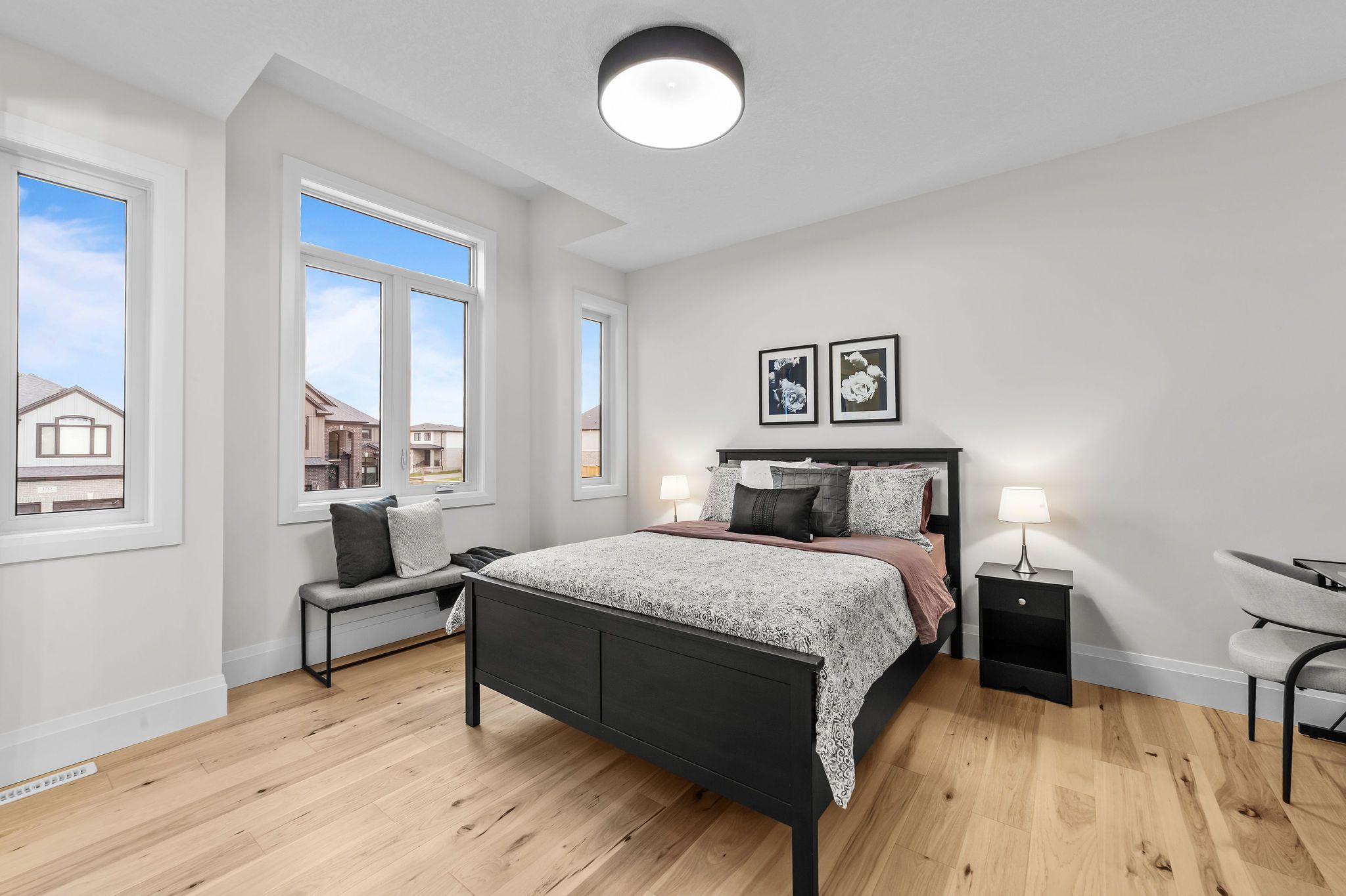 119 daventry way is a remarkably versatile six bedroom home set on a premium elevated walkout lot, offering an ideal layout for large families, multi generational living, or strong rental potential. The main floor features soaring 10 foot ceilings, upgraded 8 foot doors, a separate dining room, a front office that can function as a seventh bedroom, and a kitchen with stone countertops, floor to ceiling cabinetry, and a waterfall edge island that overlooks the open concept living area. In 2024, the living room was enhanced with custom built in cabinetry and shelving, and a functional mudroom with main floor laundry provides direct access to the two car garage. The upper level continues with 9 foot ceilings and 8 foot doors and offers four spacious bedrooms and three full bathrooms, including a luxurious primary suite with a five piece ensuite, a second bedroom with its own private three piece ensuite, and two additional bedrooms connected by a well appointed jack and jill bathroom with a double vanity. All above grade bathrooms feature heated flooring. The professionally finished walkout basement, completed in 2024, provides a complete secondary living space with 9 foot ceilings, a full kitchen with stone counters and a full set of appliances, dedicated laundry, an open concept living area, and two additional bedrooms. This level was constructed with enhanced soundproofing and r20 and r12 insulation for improved comfort and efficiency. Exterior improvements completed in 2025 include a new stairwell to the basement and a concrete side path that provides direct access to the separate walkout entrance, making it well suited for rental use or extended family living. The neighbourhood continues to grow with a new catholic school planned for 2027 and future nearby retail additions including no frills and shoppers drug mart, adding long term convenience to an already exceptional property.