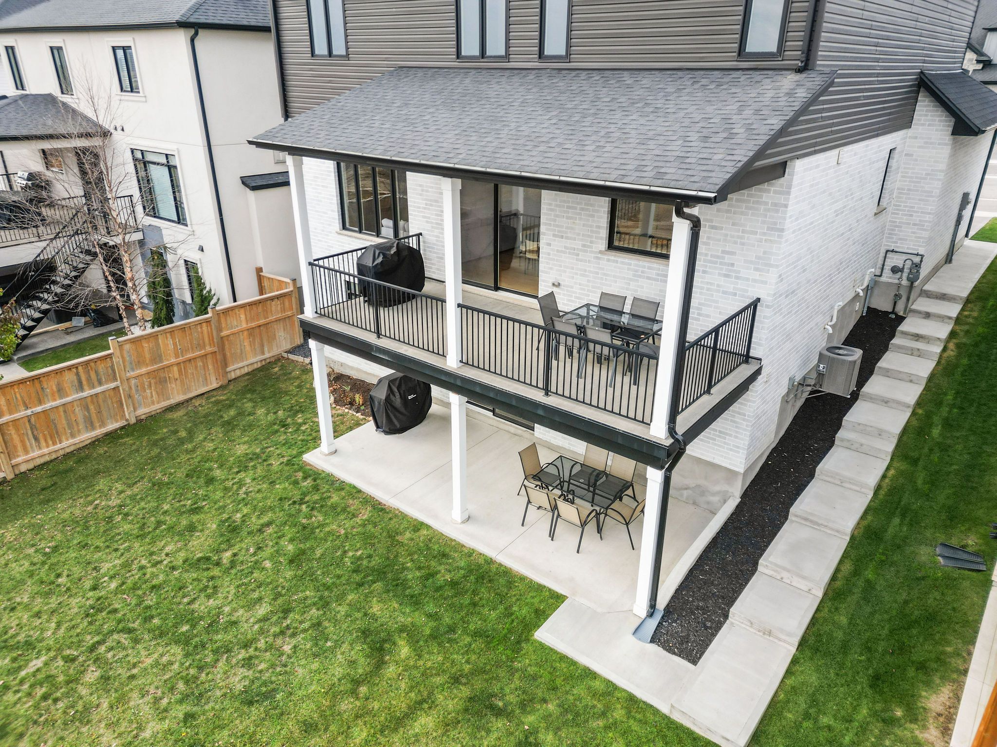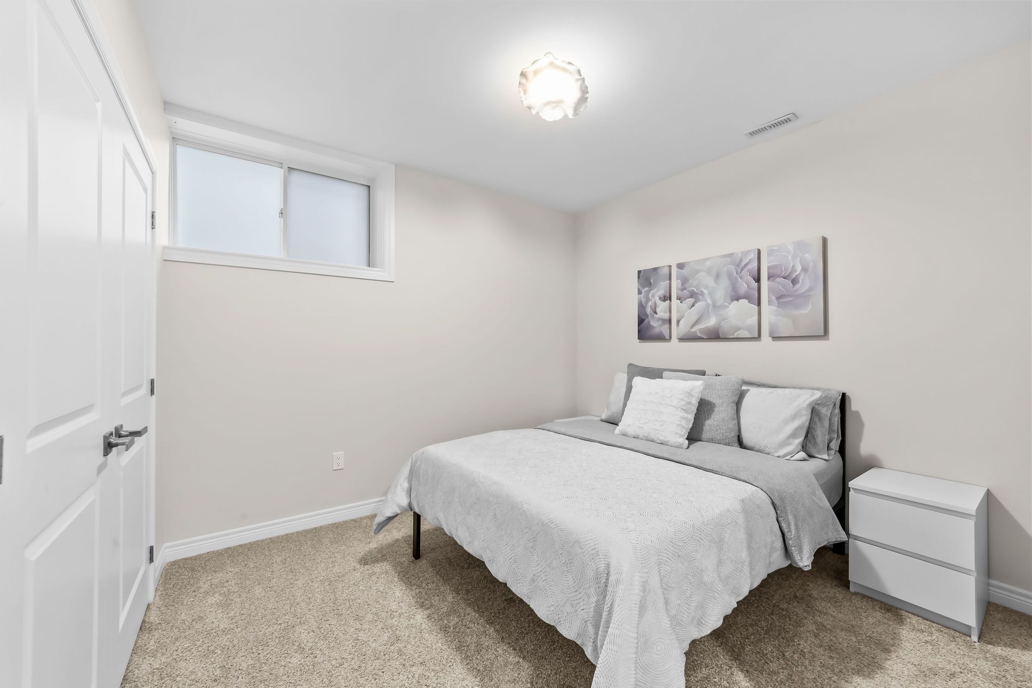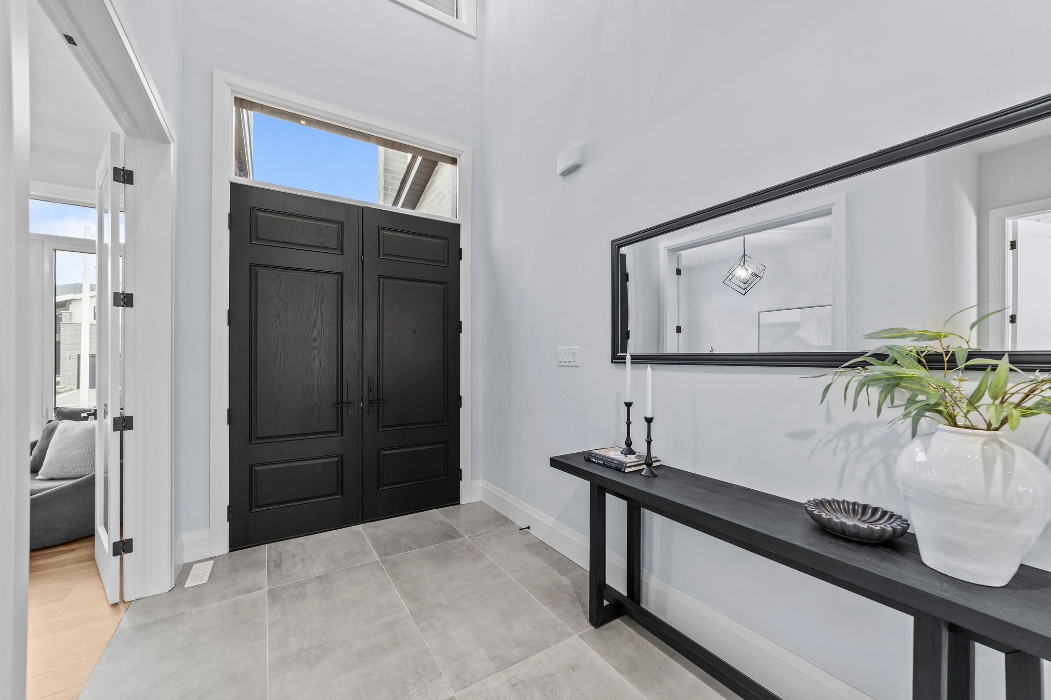119 daventry way is a remarkably versatile six bedroom home set on a premium elevated walkout lot, offering an ideal layout for large families, multi generational living, or strong rental potential. The main floor features soaring 10 foot ceilings, upgraded 8 foot doors, a separate dining room, a front office that can function as a seventh bedroom, and a kitchen with stone countertops, floor to ceiling cabinetry, and a waterfall edge island that overlooks the open concept living area. In 2024, the living room was enhanced with custom built in cabinetry and shelving, and a functional mudroom with main floor laundry provides direct access to the two car garage. The upper level continues with 9 foot ceilings and 8 foot doors and offers four spacious bedrooms and three full bathrooms, including a luxurious primary suite with a five piece ensuite, a second bedroom with its own private three piece ensuite, and two additional bedrooms connected by a well appointed jack and jill bathroom with a double vanity. All above grade bathrooms feature heated flooring. The professionally finished walkout basement, completed in 2024, provides a complete secondary living space with 9 foot ceilings, a full kitchen with stone counters and a full set of appliances, dedicated laundry, an open concept living area, and two additional bedrooms. This level was constructed with enhanced soundproofing and r20 and r12 insulation for improved comfort and efficiency. Exterior improvements completed in 2025 include a new stairwell to the basement and a concrete side path that provides direct access to the separate walkout entrance, making it well suited for rental use or extended family living. The neighbourhood continues to grow with a new catholic school planned for 2027 and future nearby retail additions including no frills and shoppers drug mart, adding long term convenience to an already exceptional property.