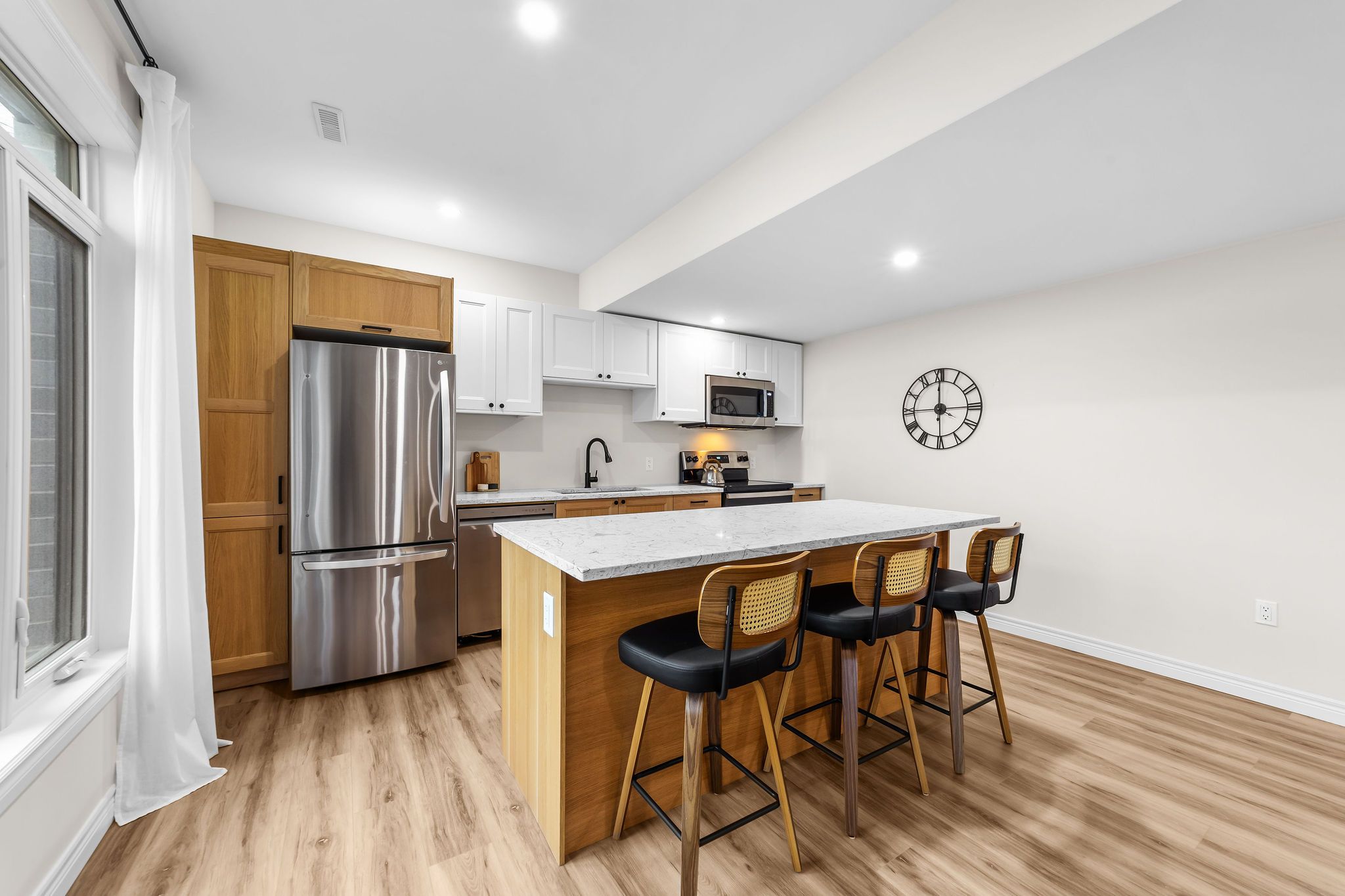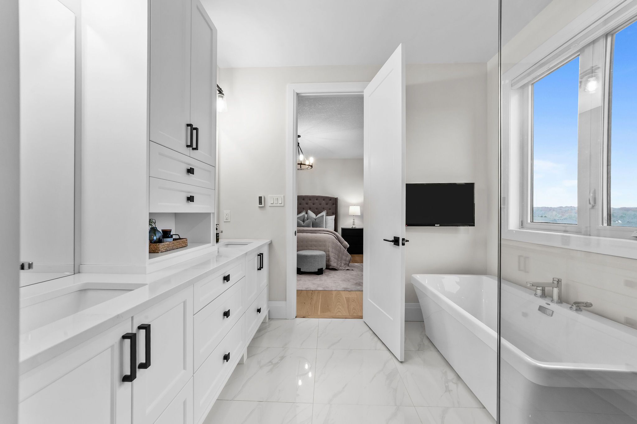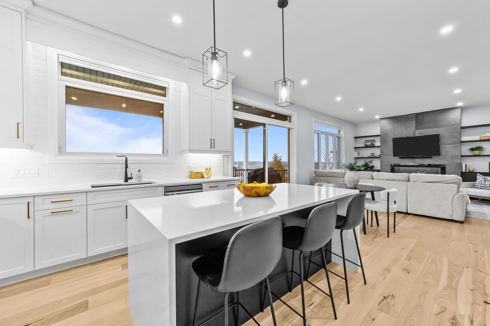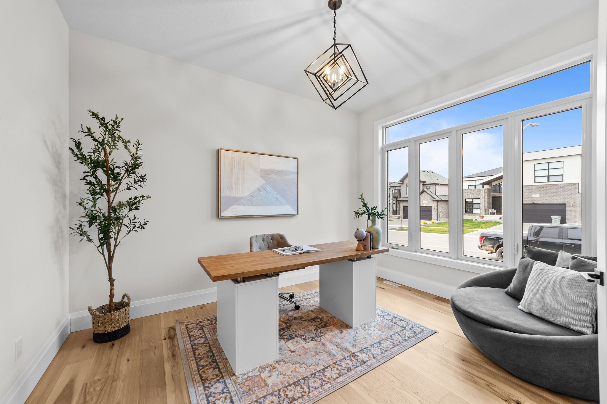 119 daventry way is a remarkably versatile six bedroom home set on a premium elevated walkout lot, offering an ideal layout for large families, multi generational living, or strong rental potential. The main floor features soaring 10 foot ceilings, upgraded 8 foot doors, a separate dining room, a front office that can function as a seventh bedroom, and a kitchen with stone countertops, floor to ceiling cabinetry, and a waterfall edge island that overlooks the open concept living area. In 2024, the living room was enhanced with custom built in cabinetry and shelving, and a functional mudroom with main floor laundry provides direct access to the two car garage. The upper level continues with 9 foot ceilings and 8 foot doors and offers four spacious bedrooms and three full bathrooms, including a luxurious primary suite with a five piece ensuite, a second bedroom with its own private three piece ensuite, and two additional bedrooms connected by a well appointed jack and jill bathroom with a double vanity. All above grade bathrooms feature heated flooring. The professionally finished walkout basement, completed in 2024, provides a complete secondary living space with 9 foot ceilings, a full kitchen with stone counters and a full set of appliances, dedicated laundry, an open concept living area, and two additional bedrooms. This level was constructed with enhanced soundproofing and r20 and r12 insulation for improved comfort and efficiency. Exterior improvements completed in 2025 include a new stairwell to the basement and a concrete side path that provides direct access to the separate walkout entrance, making it well suited for rental use or extended family living. The neighbourhood continues to grow with a new catholic school planned for 2027 and future nearby retail additions including no frills and shoppers drug mart, adding long term convenience to an already exceptional property.