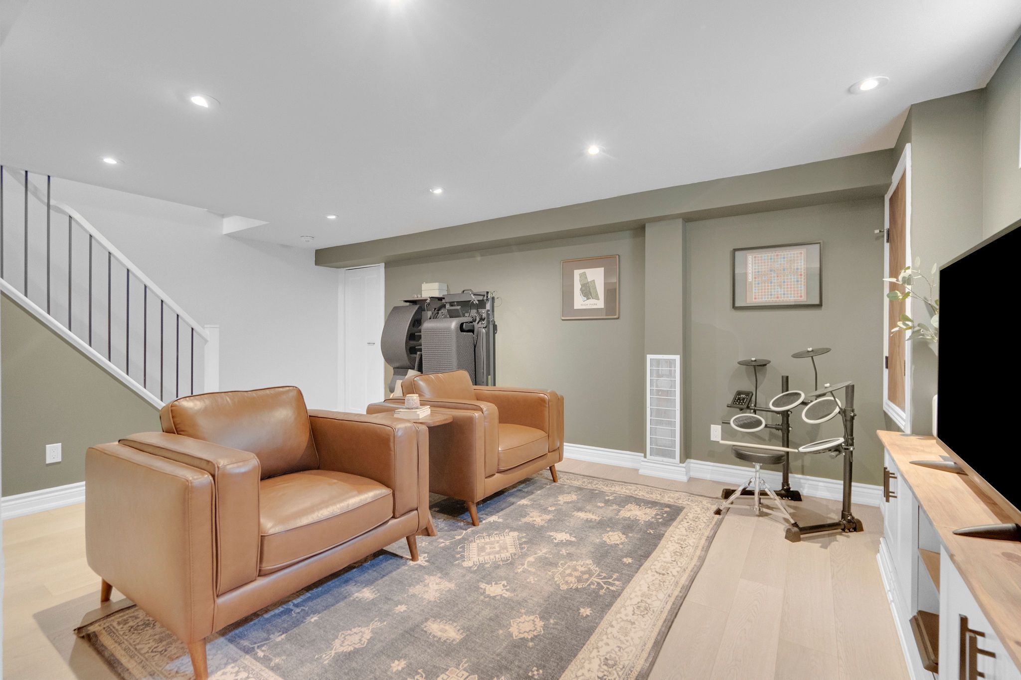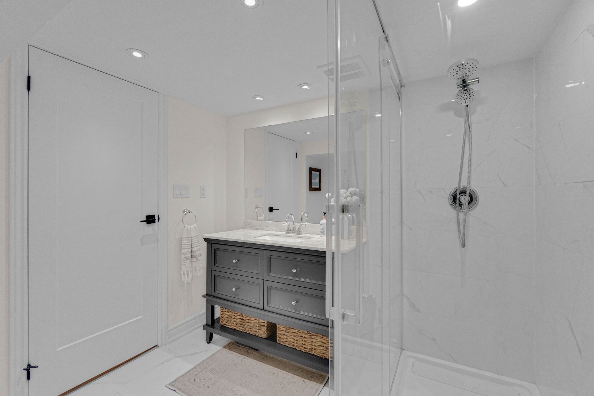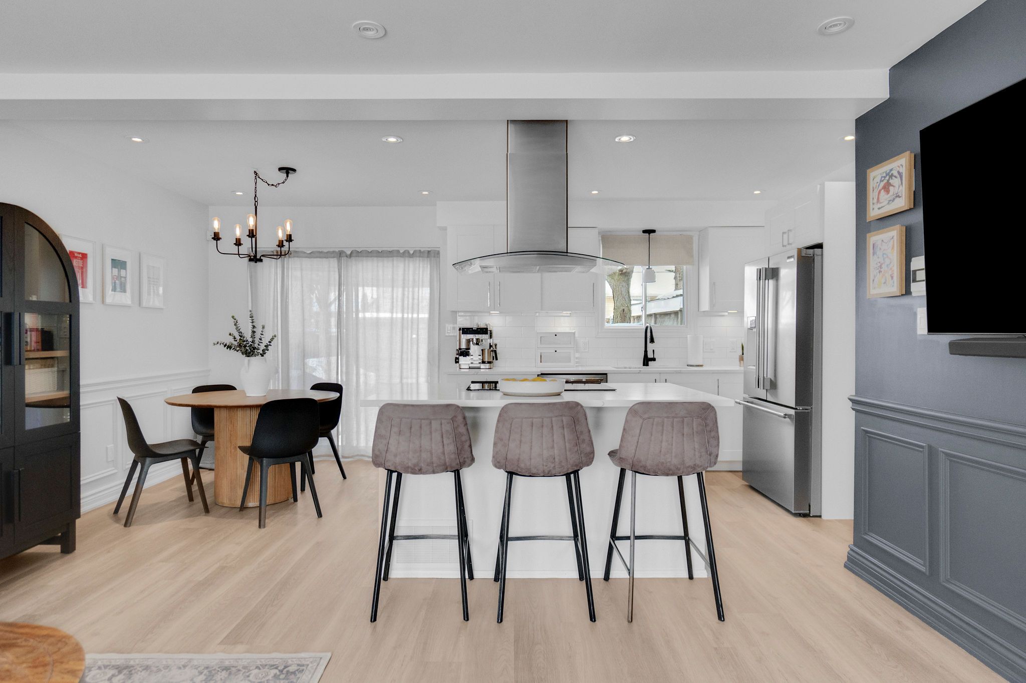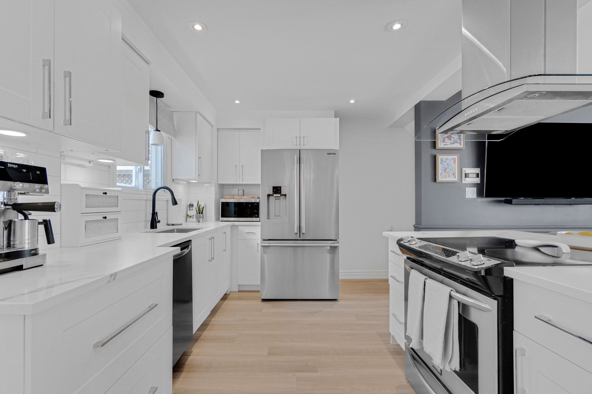 • Modern kitchen with quartz countertops and a centre island for easy meals.