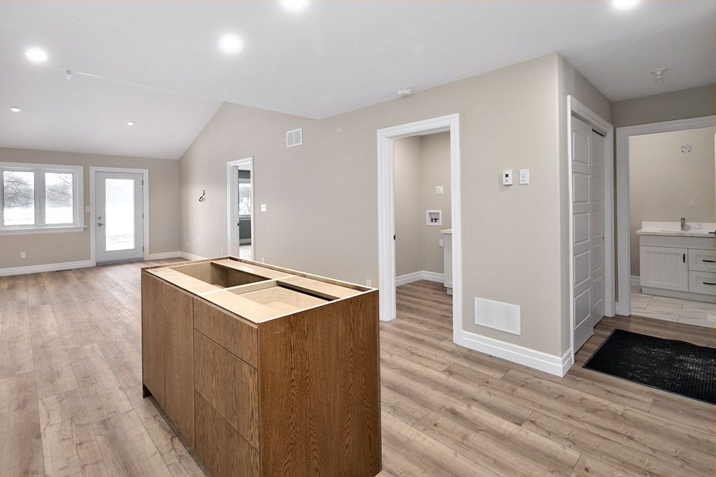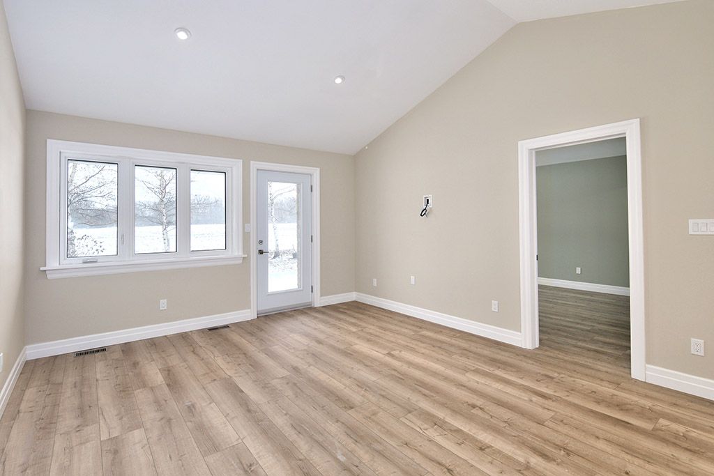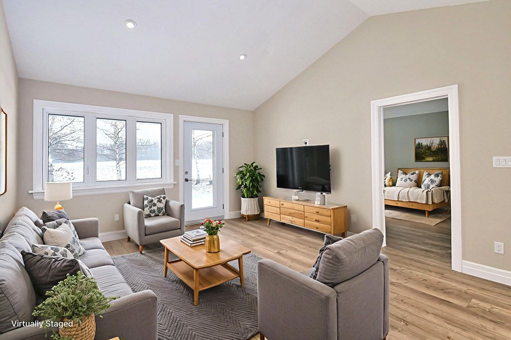 • Open-concept layout with vaulted ceilings for spaciousness and light.