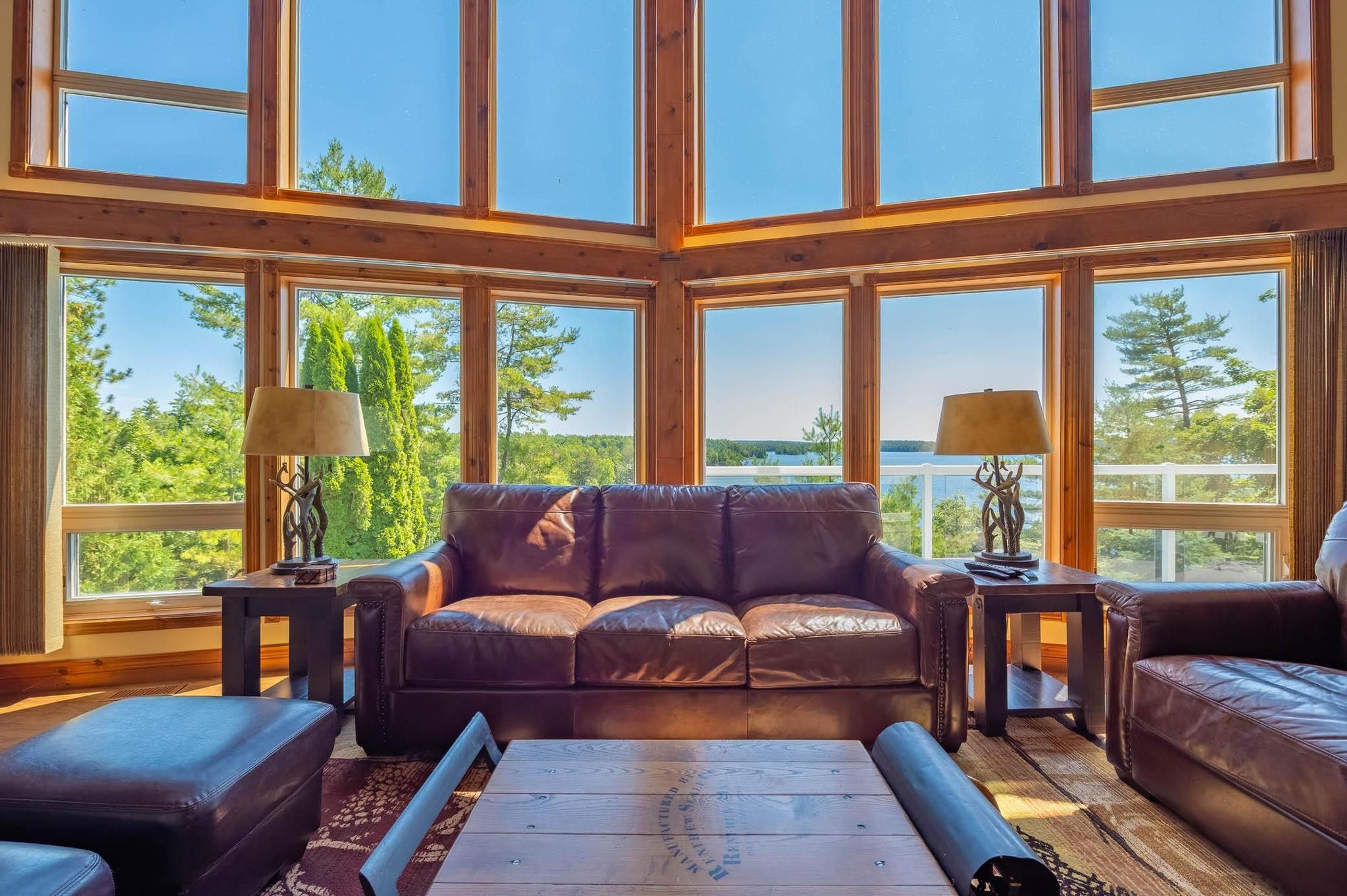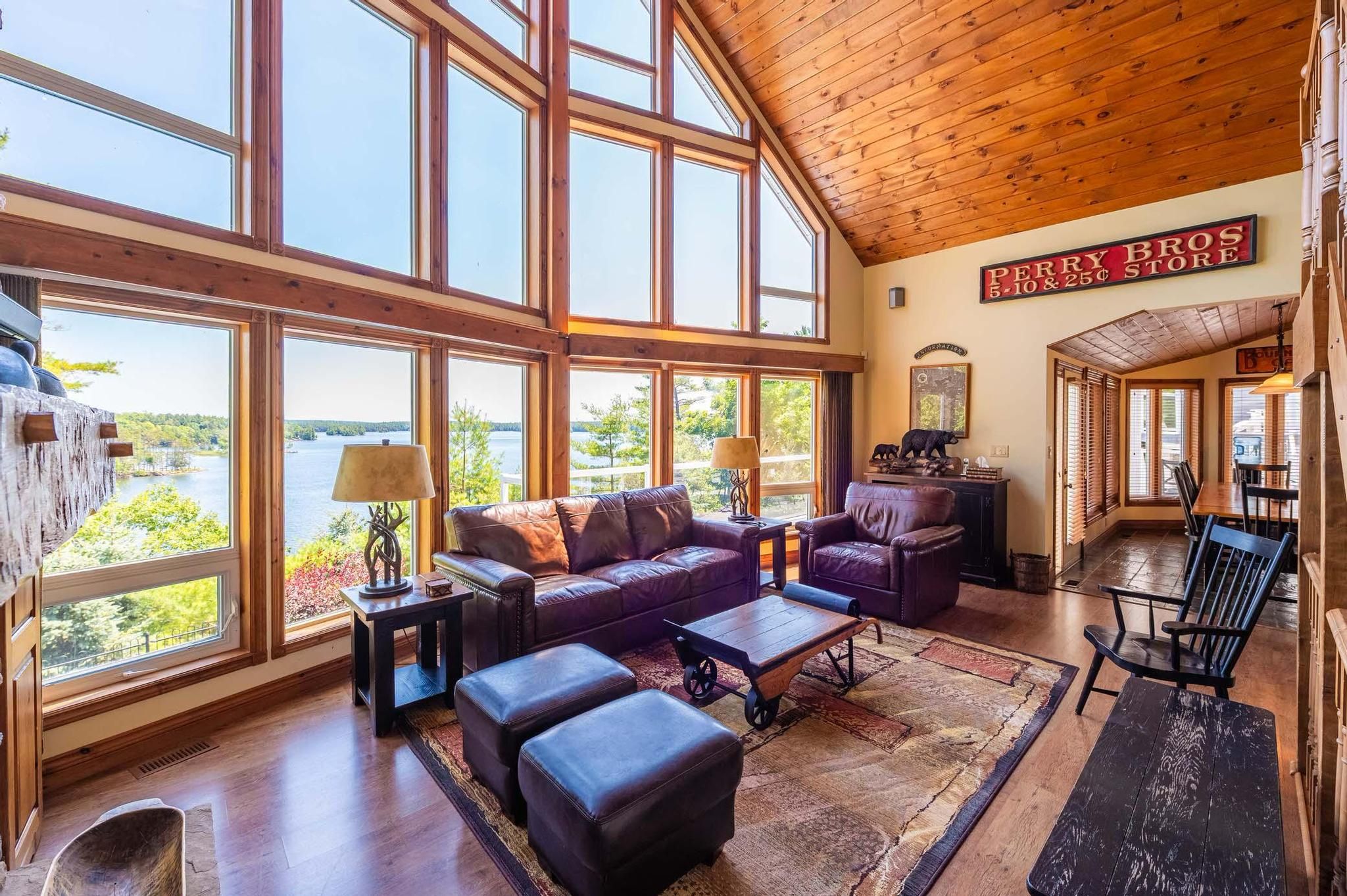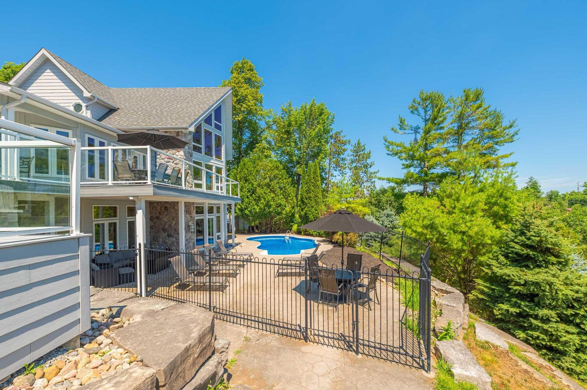 Experience refined waterfront living on beautiful jack lake in this exceptional five bedroom four and a half bath luxury home. Thoughtfully designed to capture elevated, panoramic lake views, this four season retreat blends upscale finishes with the relaxed elegance of cottage country. The main level features an open concept layout with soaring ceilings, expansive windows, and seamless flow to multiple outdoor entertaining areas. A gourmet kitchen with premium appliances and a large island anchors the space, ideal for hosting family and friends. The private primary suite offers stunning lake vistas, a spa-inspired ensuite, and walk-out access to a quiet balcony. Four additional bedrooms provide generous accommodations for guests, complemented by beautifully appointed bathrooms throughout. The lower level extends the living space with a bright recreation area, walk-out access, and plenty of room for gatherings, step outside to your own resort-style oasis. A heated inground swimming pool, integrated hot tub, and sun-drenched lounging terraces overlook the water, surrounded by mature trees and natural stone landscaping. A gentle path leads to the shoreline, offering clean swimming, excellent boating, and access to one of the kawarthas' most desirable lakes. Designed for year-round comfort, this property includes modern utilities, ample parking, and storage for recreational gear. Whether as a full time residence or a luxury cottage escape, this home delivers an unmatched combination of privacy, craftsmanship, and breathtaking natural beauty on sought-after jack lake.