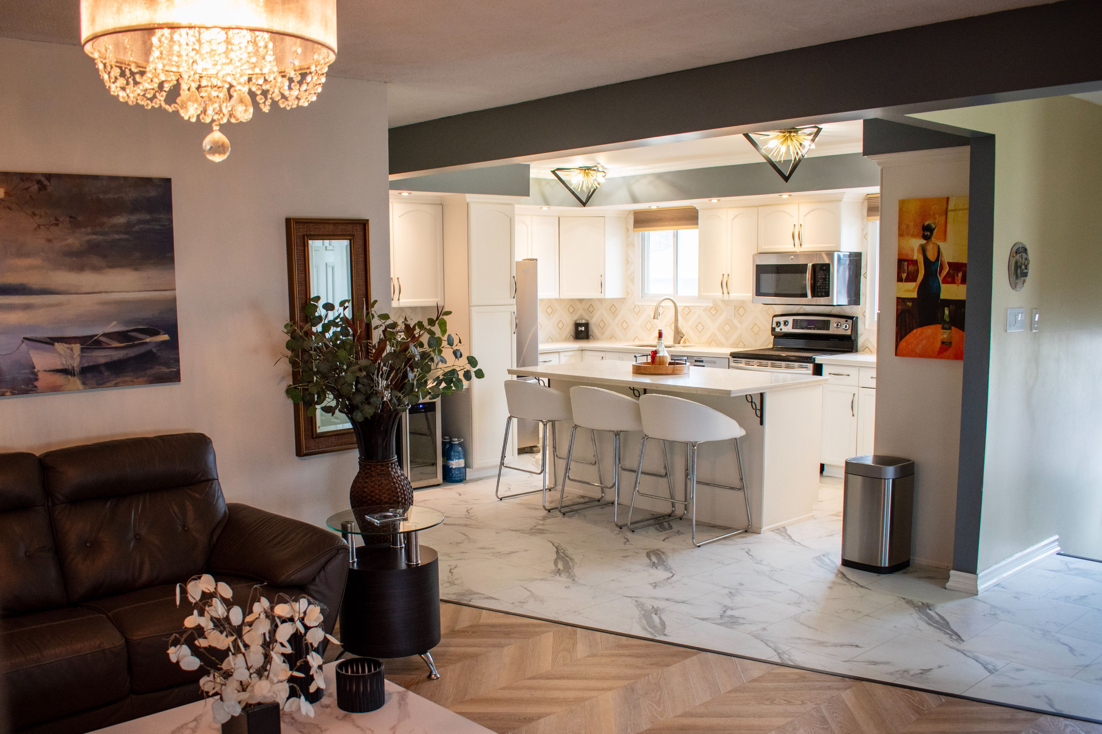 • Open concept kitchen with modern features for enjoyable cooking.