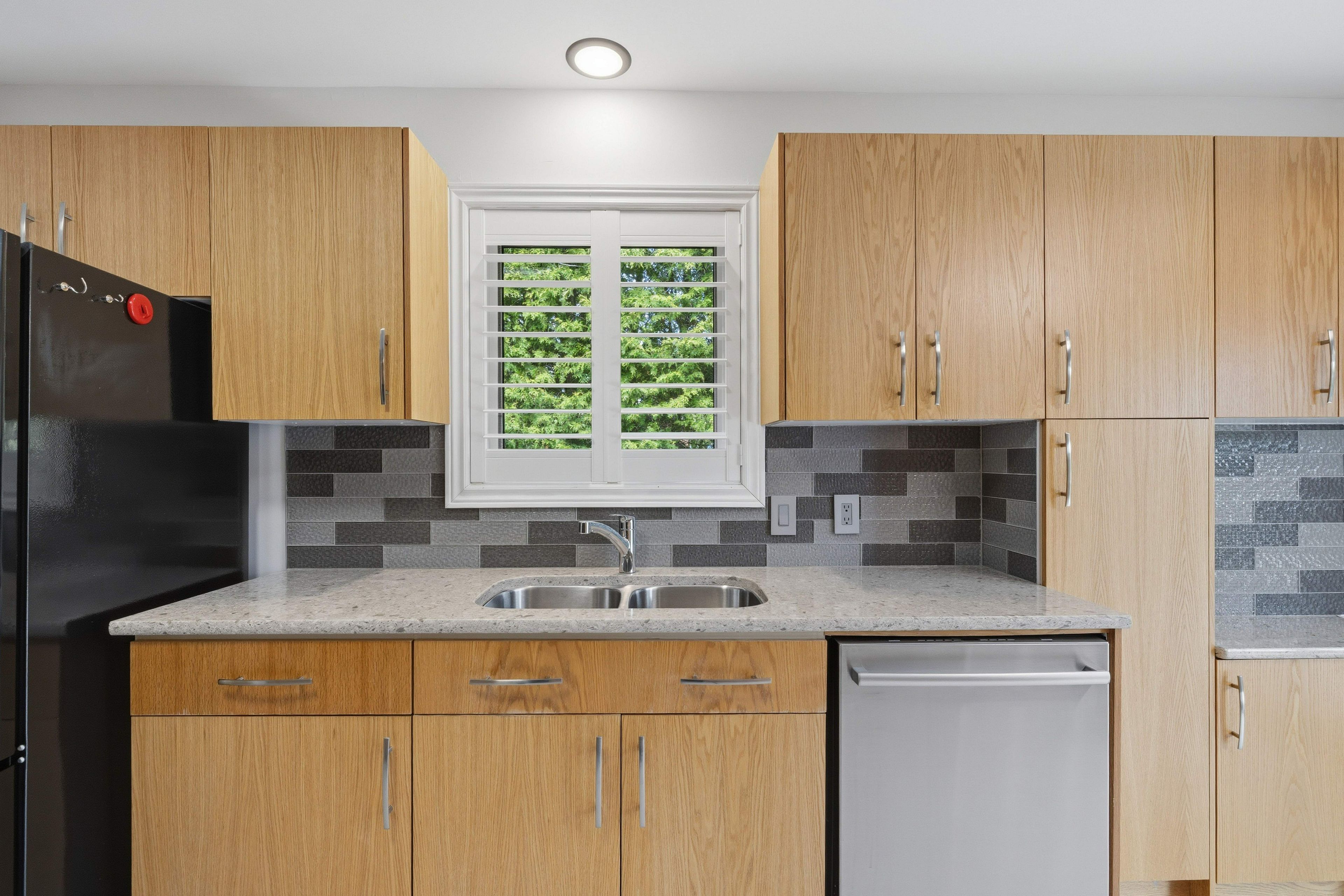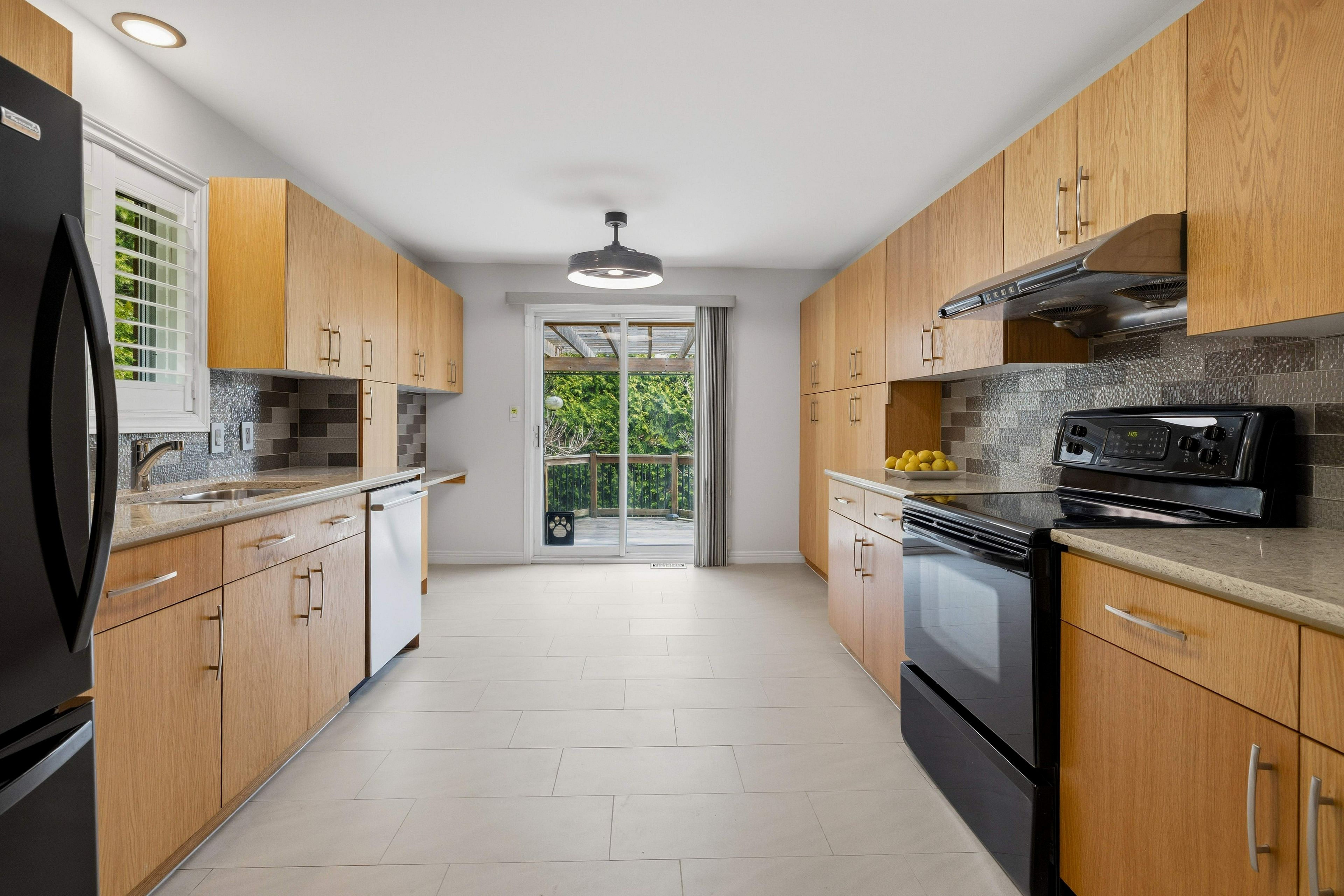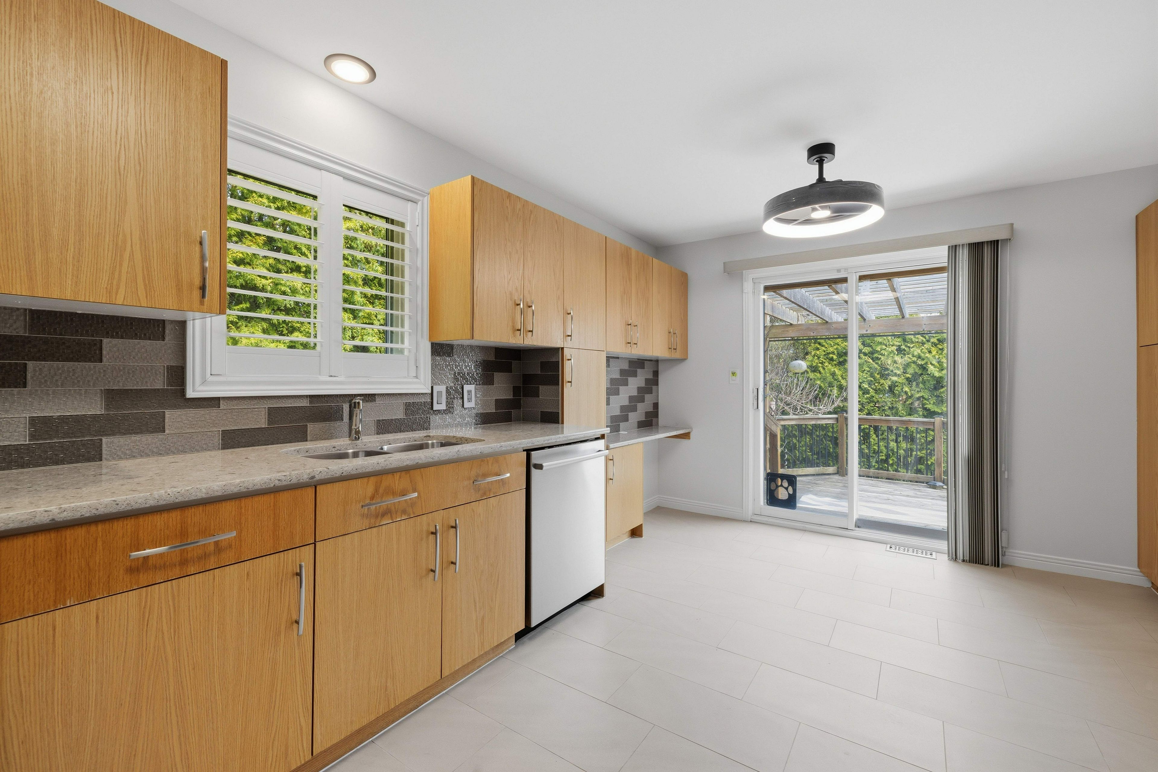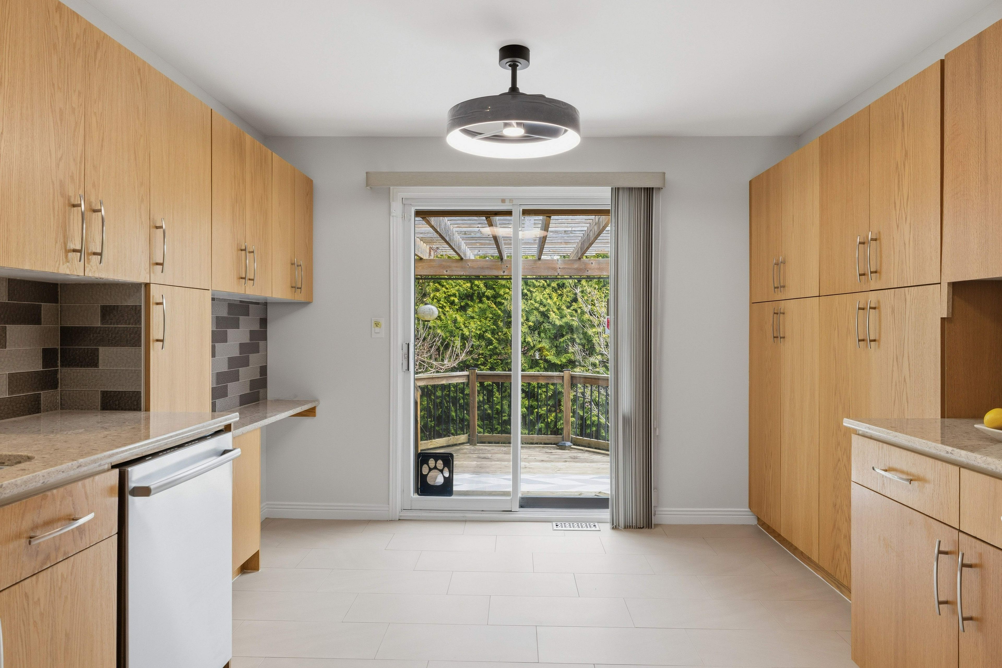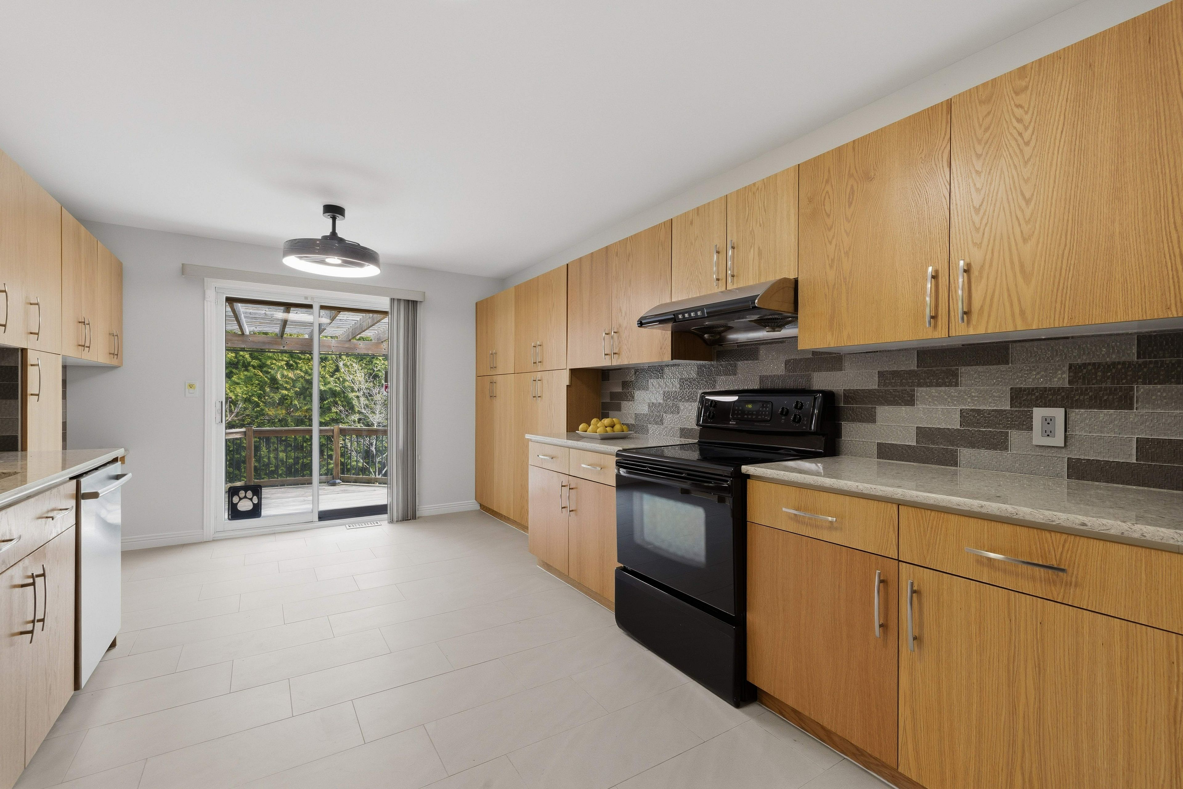 • Tasteful kitchen with quartz countertops and private deck.