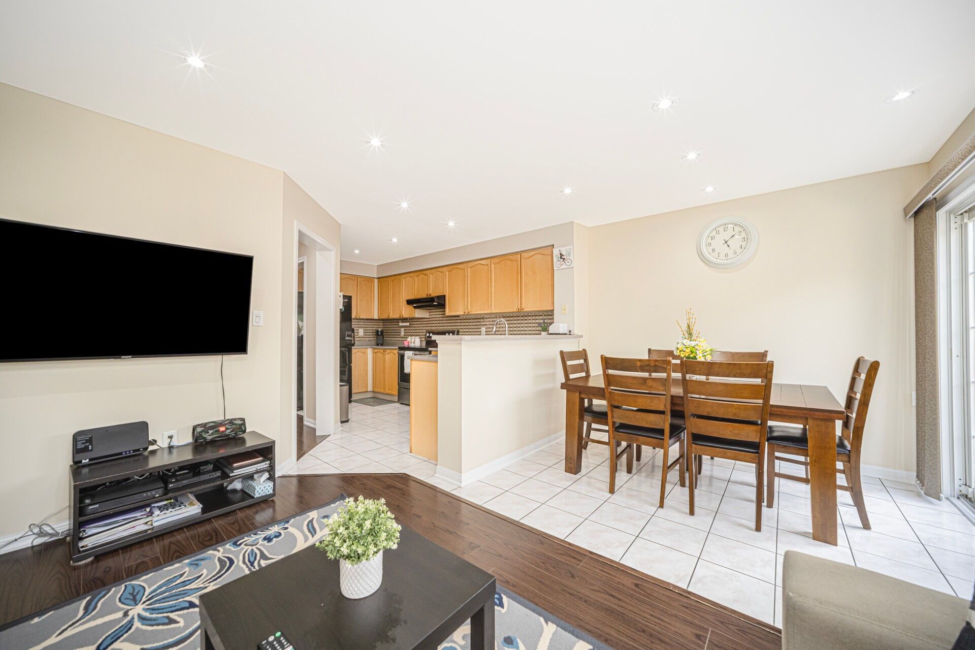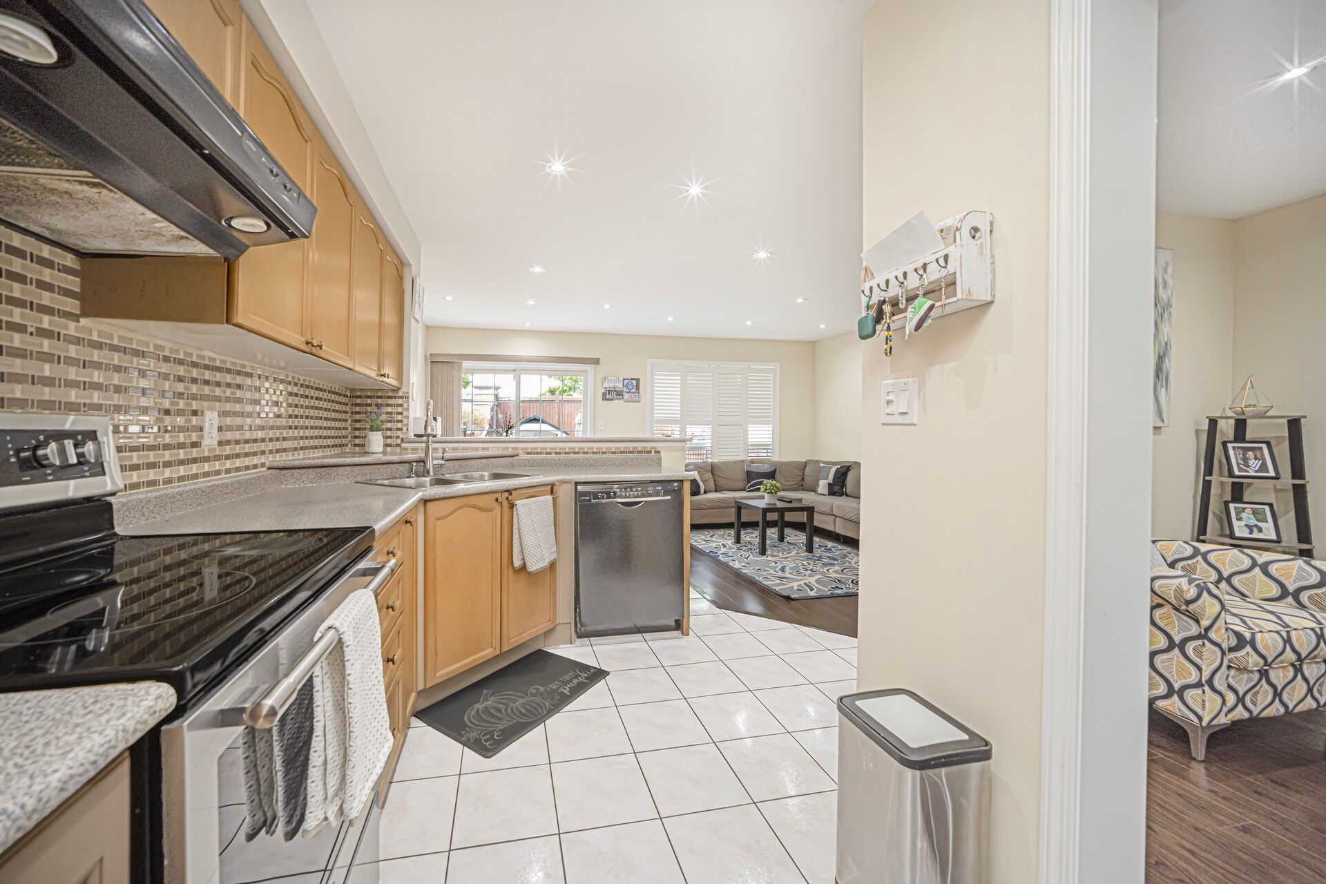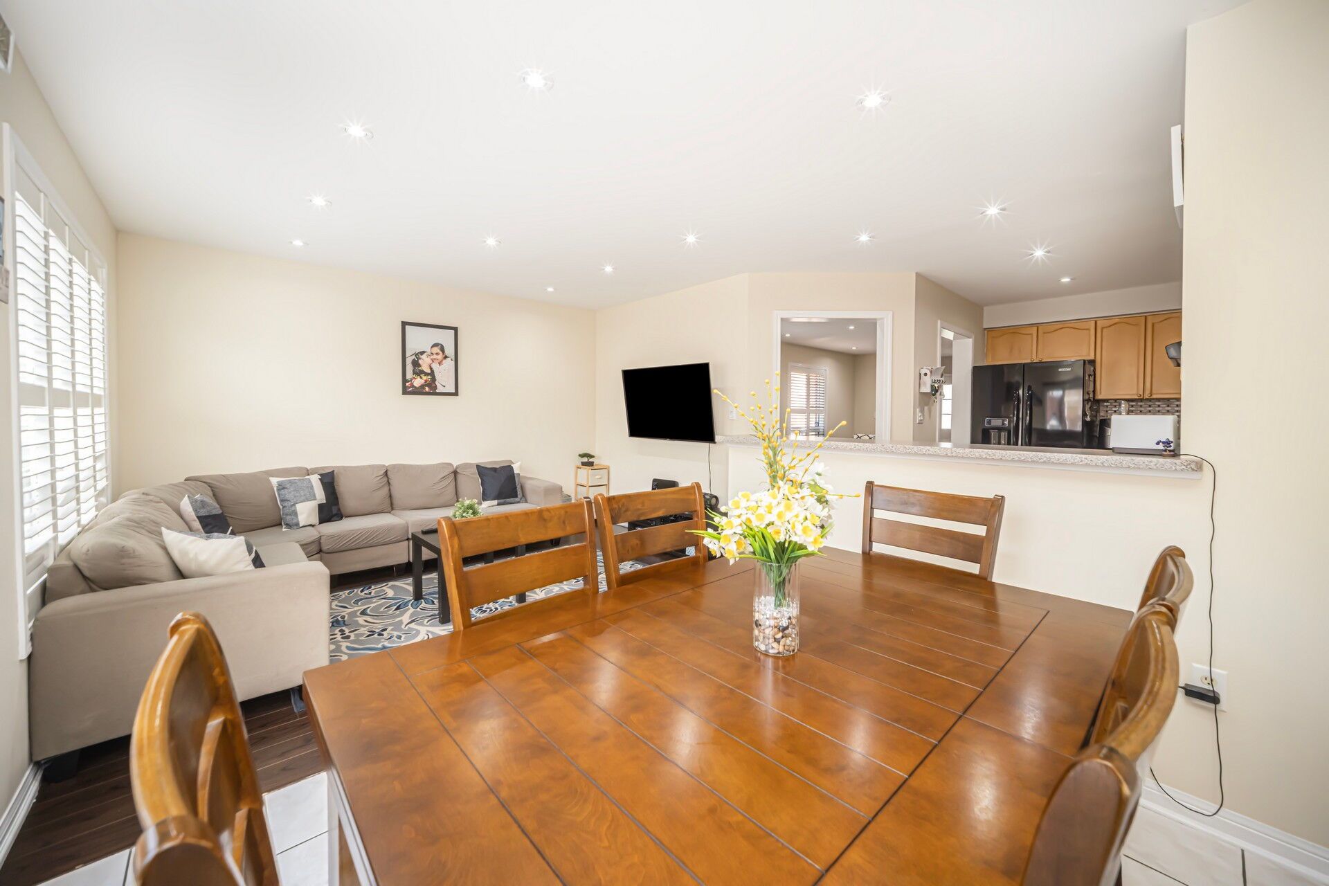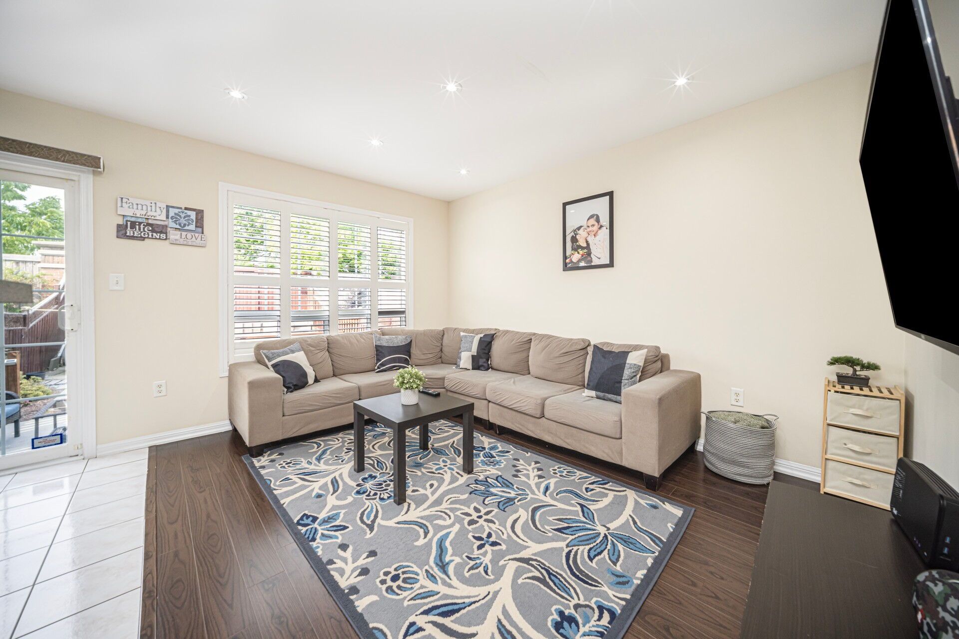 • Well-appointed family room that overlooks the kitchen area.
