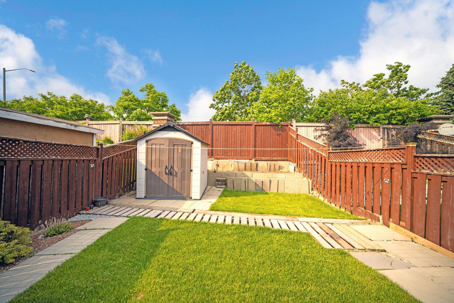 • Fully fenced backyard with a concrete patio, perfect for outdoor use.