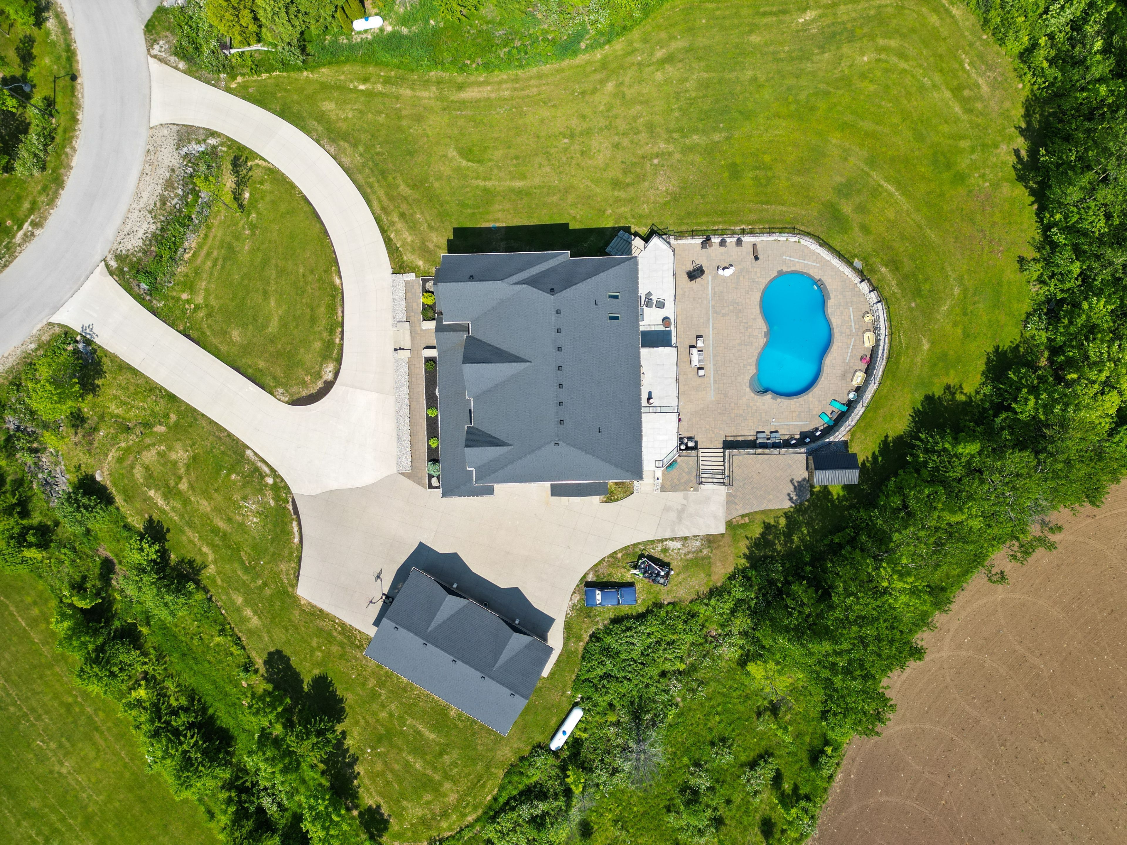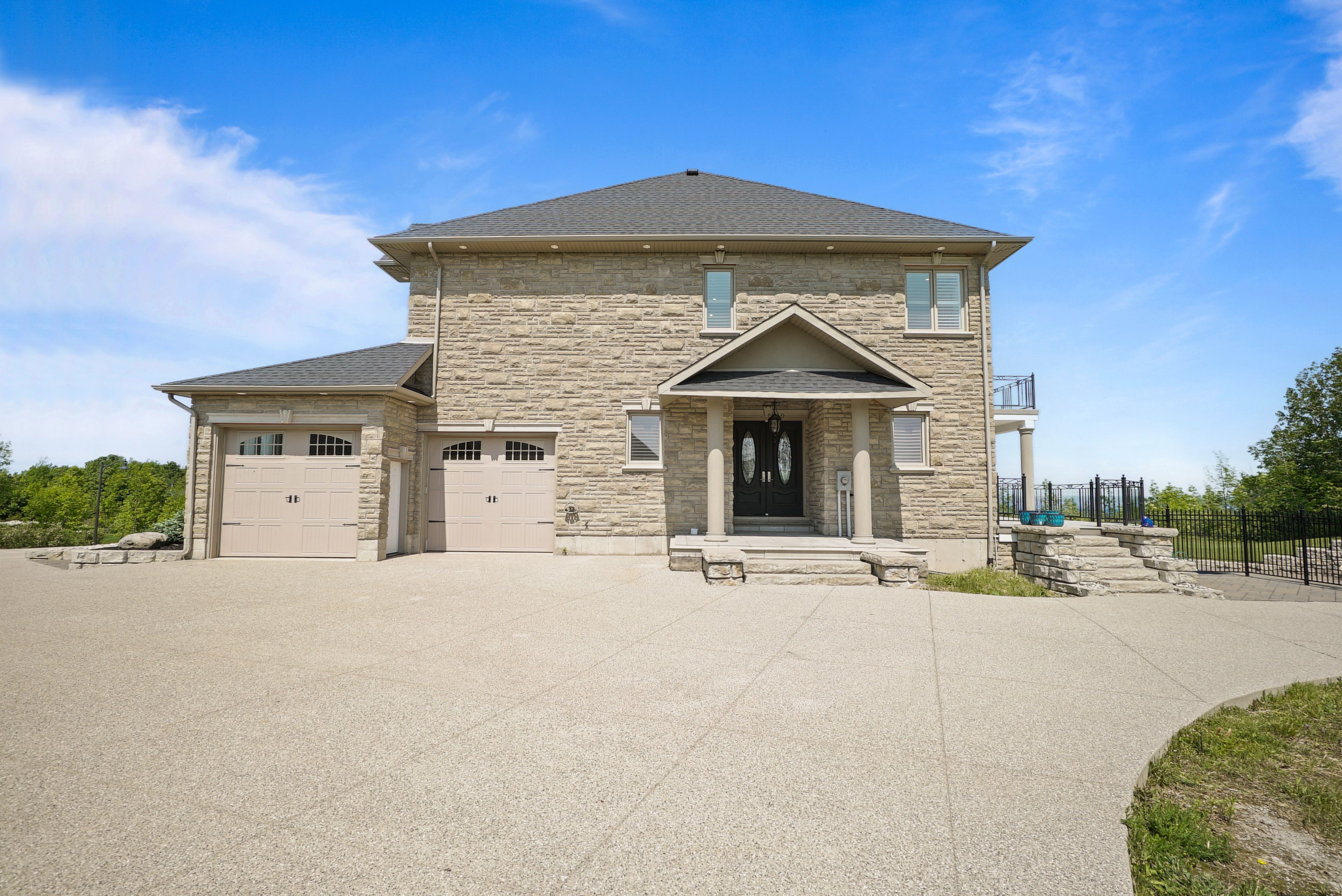 A timeless blend of design and craftsmanship, this custom-built home offers over 6500 sq ft of living space and sits on a premium lot of almost 2 acres with spectacular views overlooking georgian bay. Upon entering the grand foyer, you are immediately greeted by a thoughtfully designed main floor featuring generously sized principal rooms, ideal for both everyday living and entertaining. The chef-inspired kitchen boasts an oversized centre island, an inviting eat-in area, ample counter and storage space, premium appliances, and a butler's pantry that seamlessly flows into the formal dining room for large family gatherings. The living room is the showstopper of the main floor with its 19-foot ceiling and floor-to-ceiling windows, which offer views overlooking the inground 100,000 liter saltwater pool. Upstairs, the expansive primary suite overlooks the mature backyard and includes a cozy gas fireplace, his-and-her walk-in closet, and a spa-inspired ensuite. Three additional well-appointed bedrooms, each with ample closet space and two of them with spa-like ensuites, ensuring comfort and privacy for every family member. The upstairs also boasts a lounge area, ideal for unwinding after a long day. The finished basement, with a separate entrance, includes a theatre room, 2 & 3 pc washrooms, and plenty of recreation space for the growing family. The recreation room has a wall of glass doors that open to the expansive, private backyard, which features endless possibilities for outdoor living. 6 garages, 2 attached,4 separate with 2 lifts, 4 fireplaces,1. 5 year old furnaces (2) and a/c units (2), roof is 6 years old with 235km shingles for windstorms, in-floor basement heating. This home has it all
