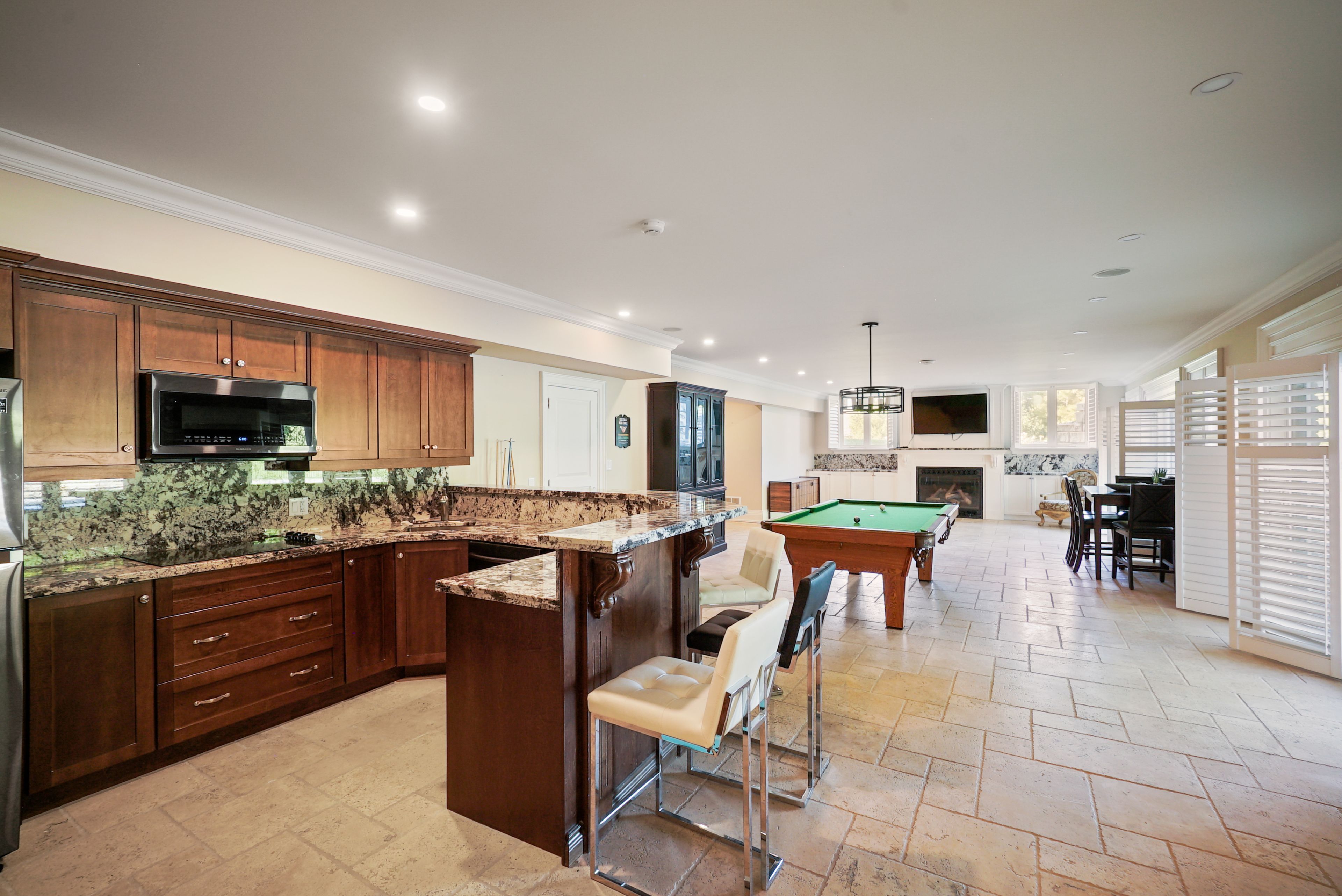 • Finished basement with a theatre room and expansive private backyard for recreation.