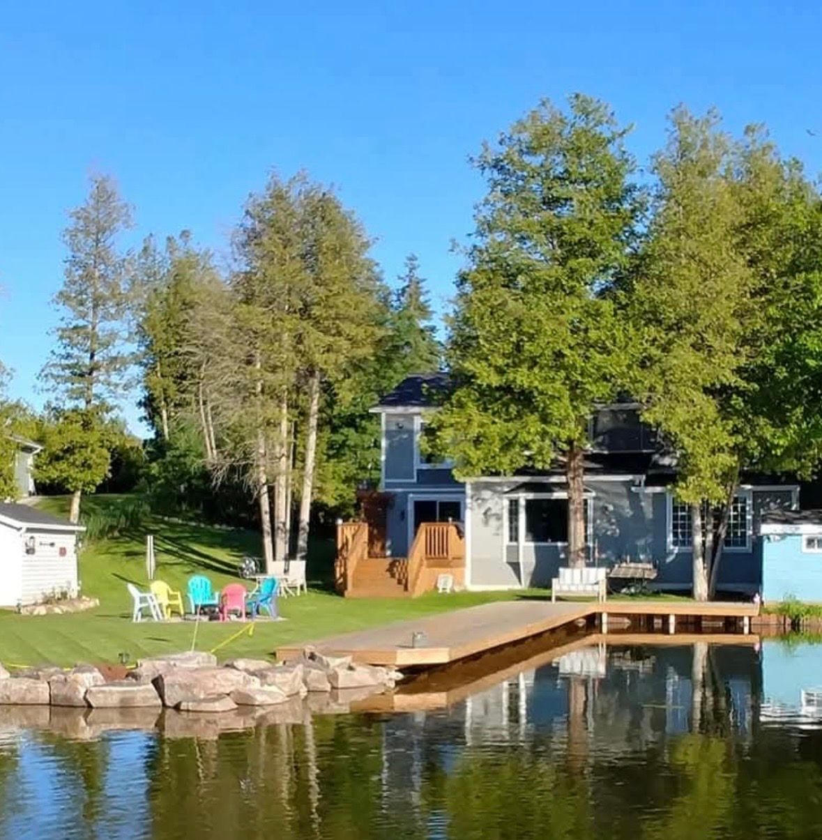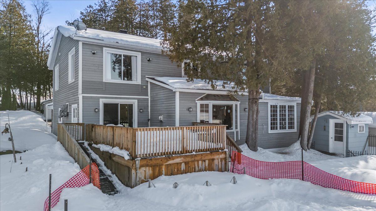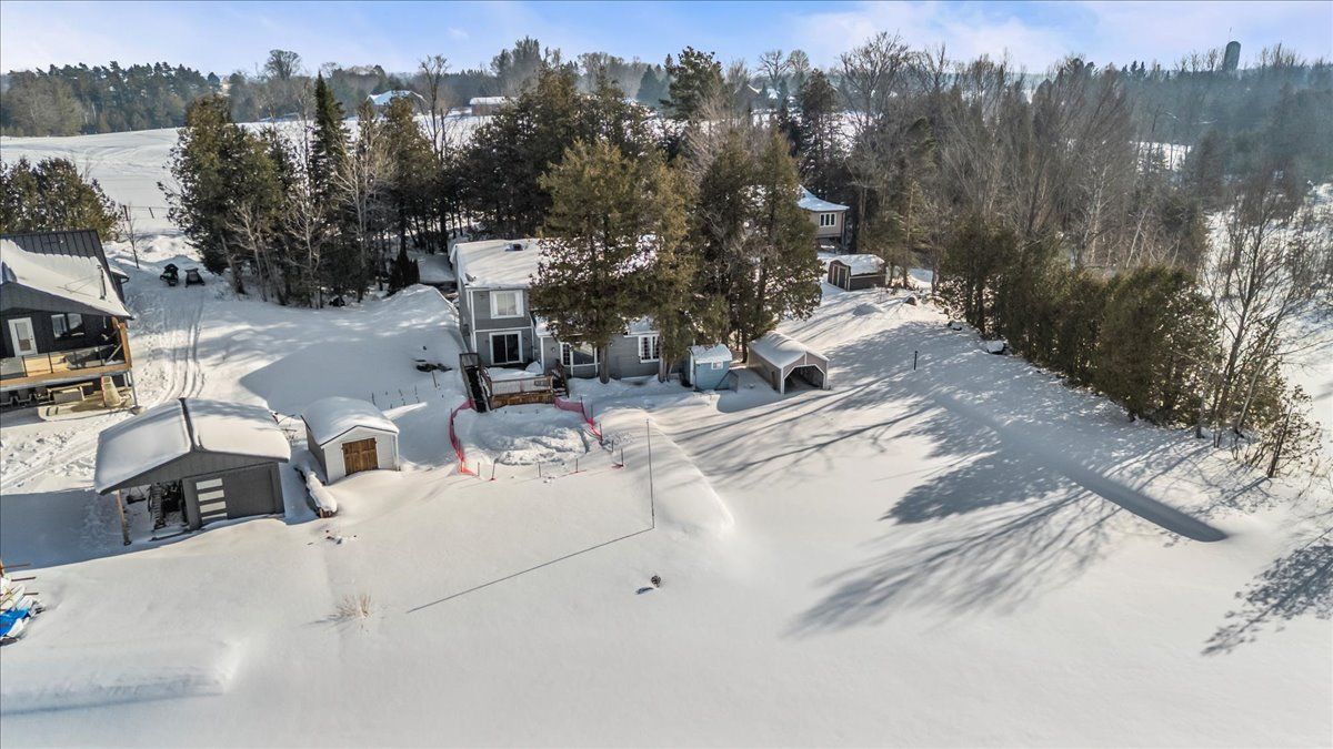 Picturesque waterfront perfection! Have you been dreaming of the perfect waterfront property where you and your family can make memories all year round? Welcome to your new home on the water-an inviting retreat that's ready for you to enjoy every season. As you approach, you'll notice a small, friendly community of neighbours. Down the driveway, a beautiful two-storey home greets you with a spacious foyer, a cozy living room with breathtaking lake views, and a grand fieldstone propane fireplace that's perfect for gatherings. The large eat-in kitchen has been updated and the dining area offers lovely views of the lake, while the main floor also features laundry, a powder room, and a family room with deck access and more lake views. Upstairs, you'll find three comfortable bedrooms, an office, and a well-appointed bathroom. The primary suite includes a generous walk-in closet and a luxurious five-piece ensuite. With both an attached and a detached garage/shop, handy storage sheds, roof replaced in 2024, a newer deck and dock, and some of the most stunning sunsets you'll ever see, this is truly a place to call home. Experience the peaceful, friendly atmosphere of habermehl lake and imagine all the wonderful moments you'll share with family and friends at this spectaular waterfront home.