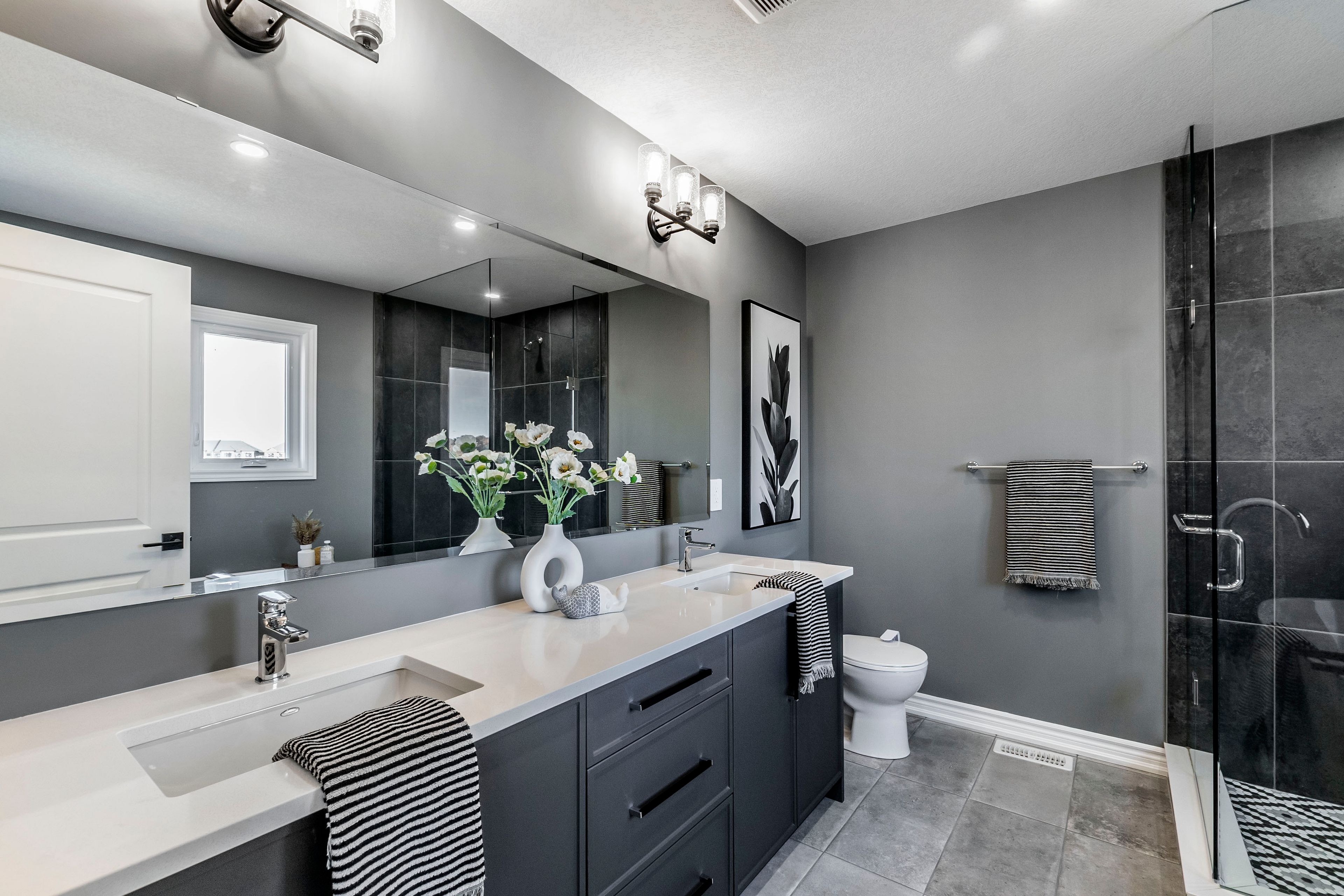 Fabulous kenmore homes model for sale in emerging westwood village! This impressive 4+1 bedroom, 5 bathroom home offers the perfect blend of elegance, comfort, flexibility & functionality, that is ideal for today's modern family. The pricing presents an incredible opportunity to own a model home with premium finishes at outstanding value. Step through the full glass double doors into a bright, airy main floor with 9' ceilings that create a sense of openness throughout. A separate dining room and living room with a show stopping double sided fireplace set the stage for memorable gatherings. The spacious kitchen boasts a large breakfast island, stainless steel appliances, and lots of storage, everything you need for effortless family meals or entertaining guests. A handy mudroom connects directly to the double car garage for everyday convenience. Upstairs, retreat to the primary suite, a true sanctuary featuring a walk-in closet and a luxurious 5-piece ensuite with double sinks, a glass shower, and a freestanding tub. Three additional bedrooms provide plenty of space, including one with its own private ensuite. A thoughtfully designed main bath with double sinks and a separate water closet, plus a second-floor laundry room with front-load washer and dryer, make family living easy. The finished lower level with 9' ceilings and oversized windows offers endless versatility. Complete with a 5th bedroom, recreation room, games/tv area, and a 4-piece bath, it's the perfect spot for family fun or overnight guests. Set in the growing westwood village community, you'll love being steps away from family-friendly amenities like a new splash pad, skate park, and scenic walking trails, ideal for creating lasting memories. You will also appreciate the quick drive to amenities in both cambridge, and kitchener, plus conestoga college, costco, and the 401! Don't miss the opportunity to make this stunning model home yours, at a price that makes it an exceptional opportunity!