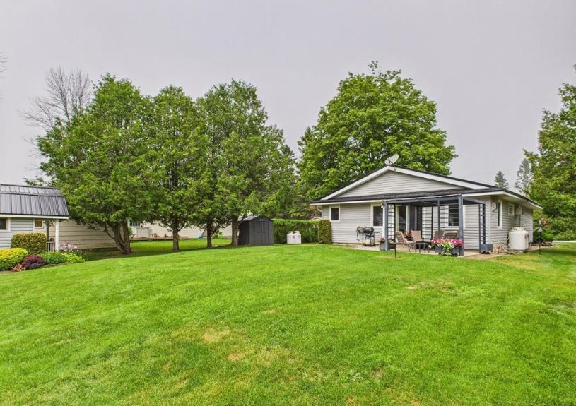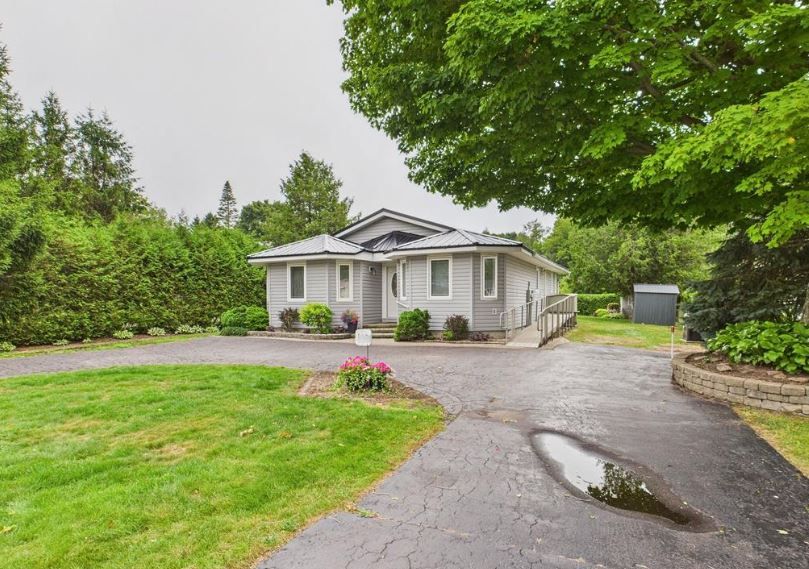 Located in the lakeside community of point clark, this almost 1,400 sq' bungalow has great curb appeal. Set off by the bayed frontage of the house with the metal roof and circular drive welcomes you in to the 2 bedroom, 1 1/2 bath home that has many features for those with mobility issues. A steel ramp provides wheelchair access and there is a wonderful open concept for wheelchair movement inside. A newly installed heat pump provides comfort year round. The main bath is well lit over the large 2 sink corner vanity with added storage and a one-piece easily accessible tub/shower unit with overhead light. Enjoy the serene back yard of this nicely landscaped property with its variety of trees, shrubs and perennials including a perimeter privacy hedge. Outside buildings include a garden shed and a workshop that could convert to a cute little bunkie. Don't fear power outages as the home also comes equipped with an automatic 10. 000 watt generator too!!!