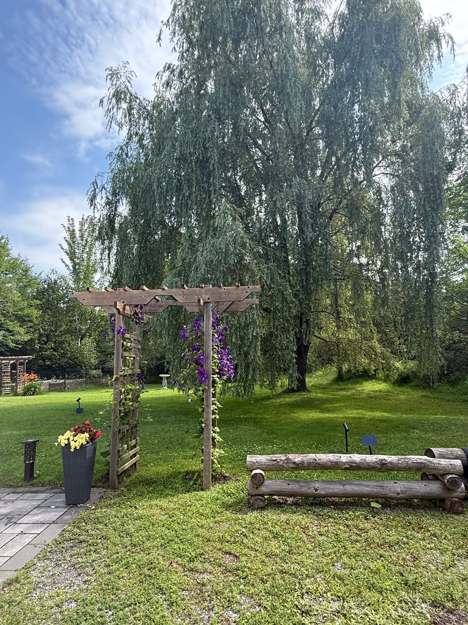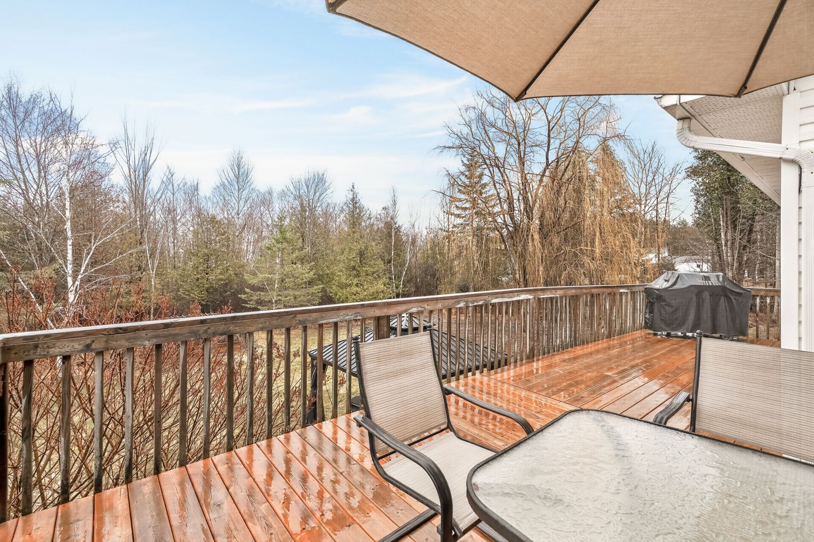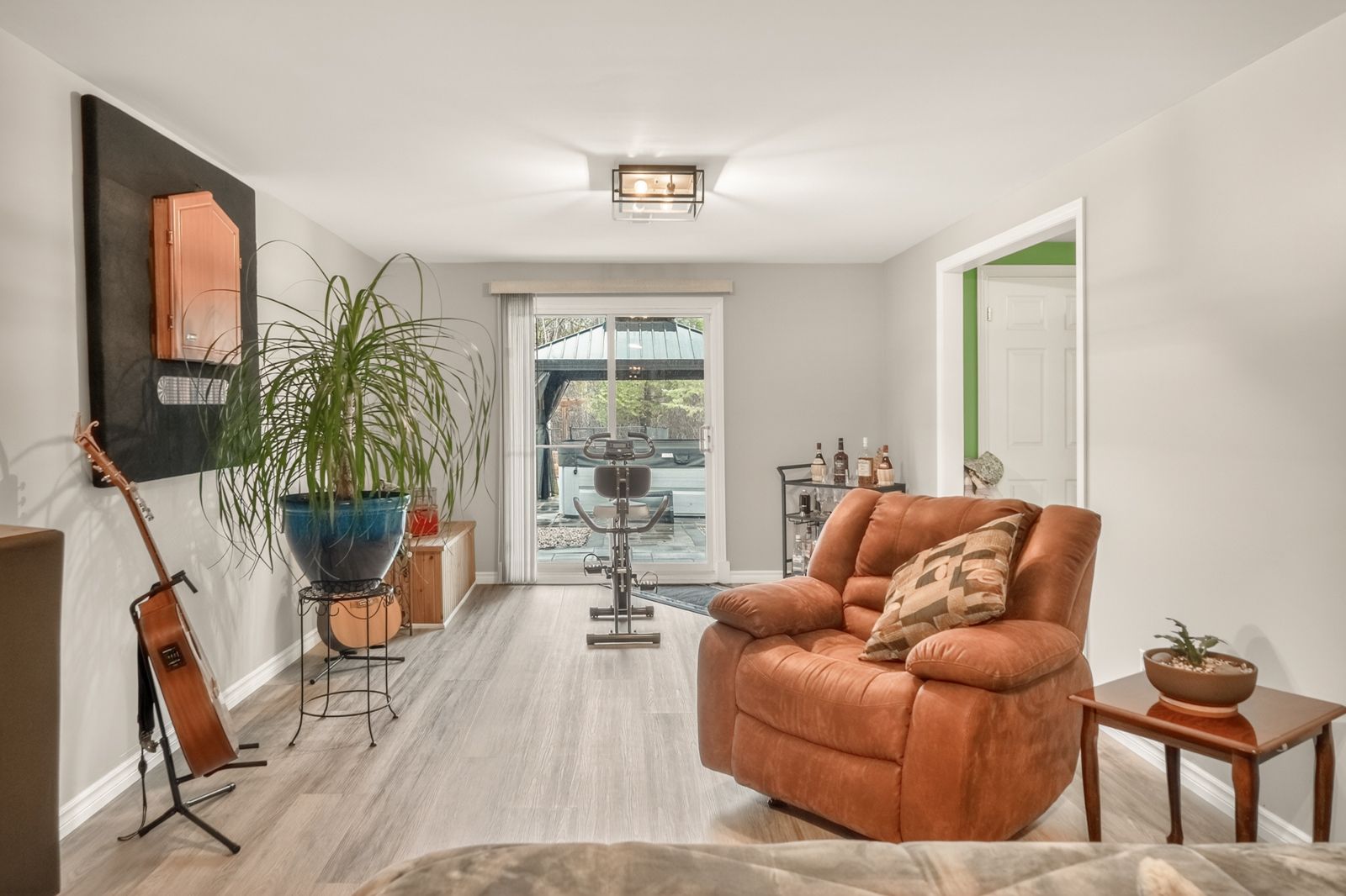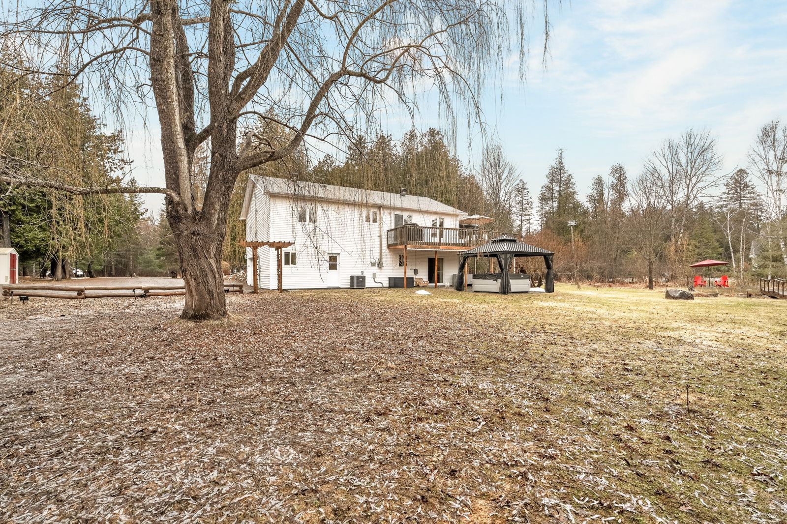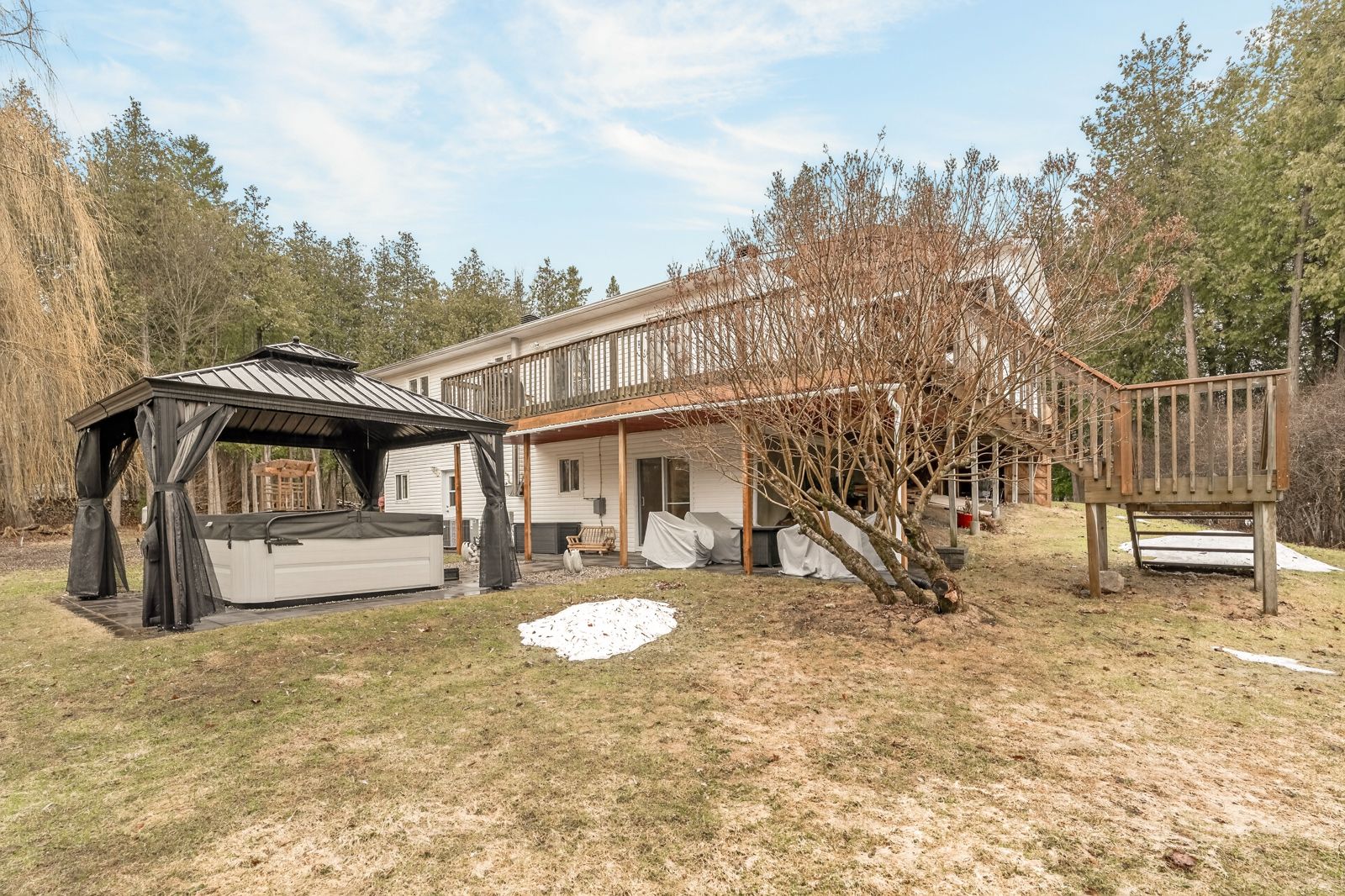 • Large, private backyard with a deck and hot tub.