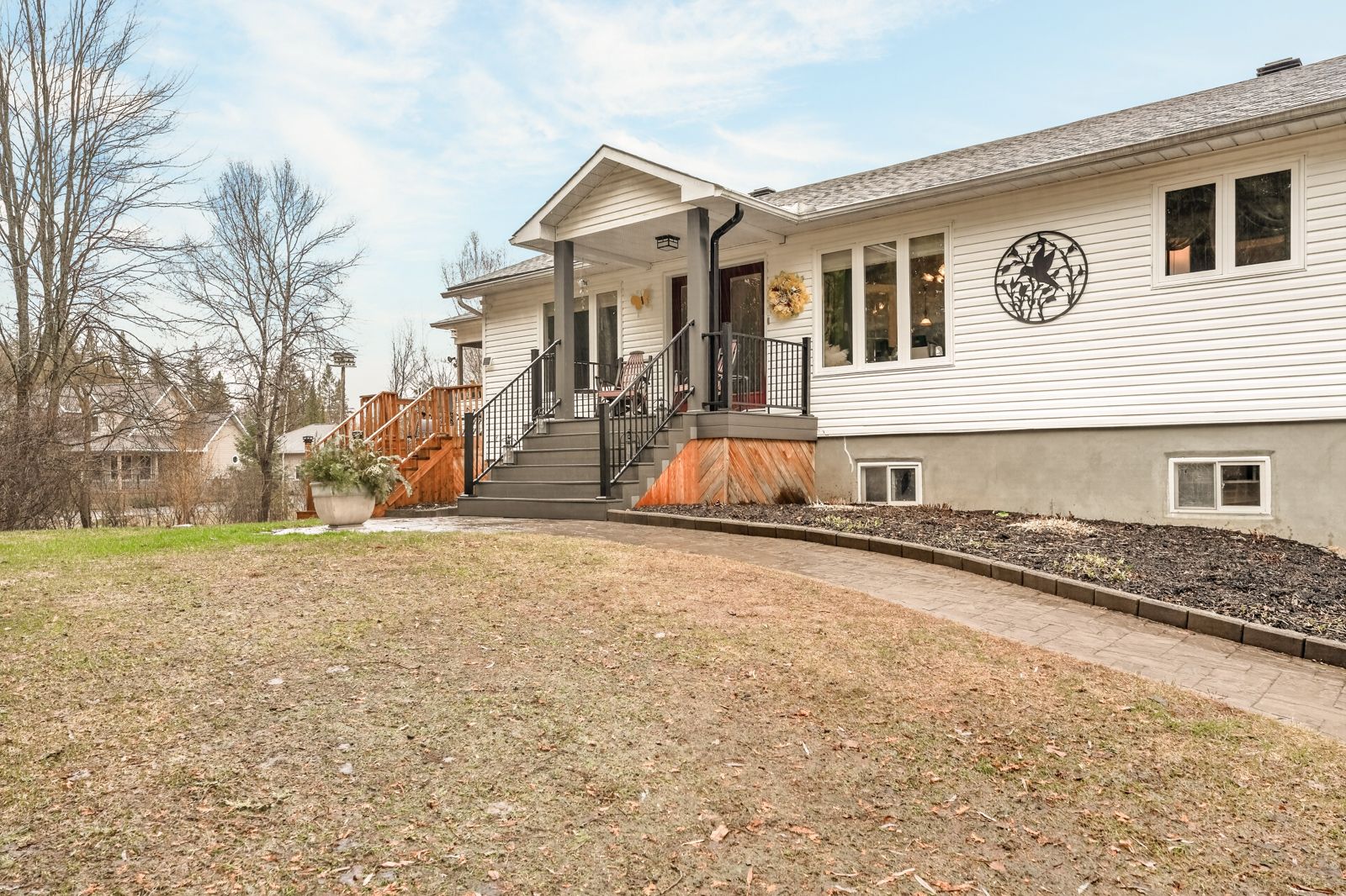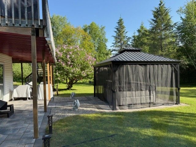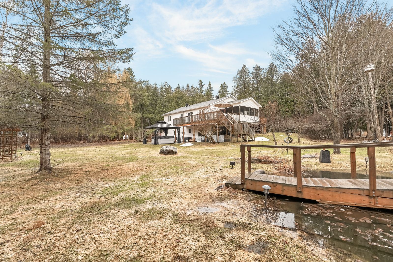 A magical setting in beautiful sierra woods! Exceptional curb appeal from the extensive landscaping. Nestled on over 2. 3 wooded acres, this well-maintained bungalow in desirable sierra woods offers an open concept floor plan for your lifestyle! Step inside to a bright and inviting layout filled with natural light. A spacious sunken living and sitting room with maple hardwood floors and large windows all overlooking this quiet neighborhood. Off the living area is the most magical room in the house with a raised 3-season screened in sun room. The dining area is ideal for everyday living and entertaining with a large window to capture the afternoon sun. The kitchen features plenty of cabinets and counter space, as well as a large 2 tier island. New fridge and stove with valid warranties. Off the kitchen are patio doors to a surround deck for bbqing and entertaining, overlooking the large, private backyard. Downstairs you will find a recreation area for entertaining and a large space with lots of storage. Included are fridge, laundry facilities and central vac. Front trek decking done in 2022. New kitchen/dining room and stairs to basement flooring in 2024. New roof in 2023. Additional highlights include, walk out patio doors to a luxurious hot tub, natural pond with bridge, raised gardens, beautiful willow, interlocking walkways and tasteful landscaping. Don't miss your opportunity to enjoy peaceful, spacious living just outside the city. Country living but minutes to greensmere golf course, 3k from the 417 and 10min from kanata, carp and almonte.