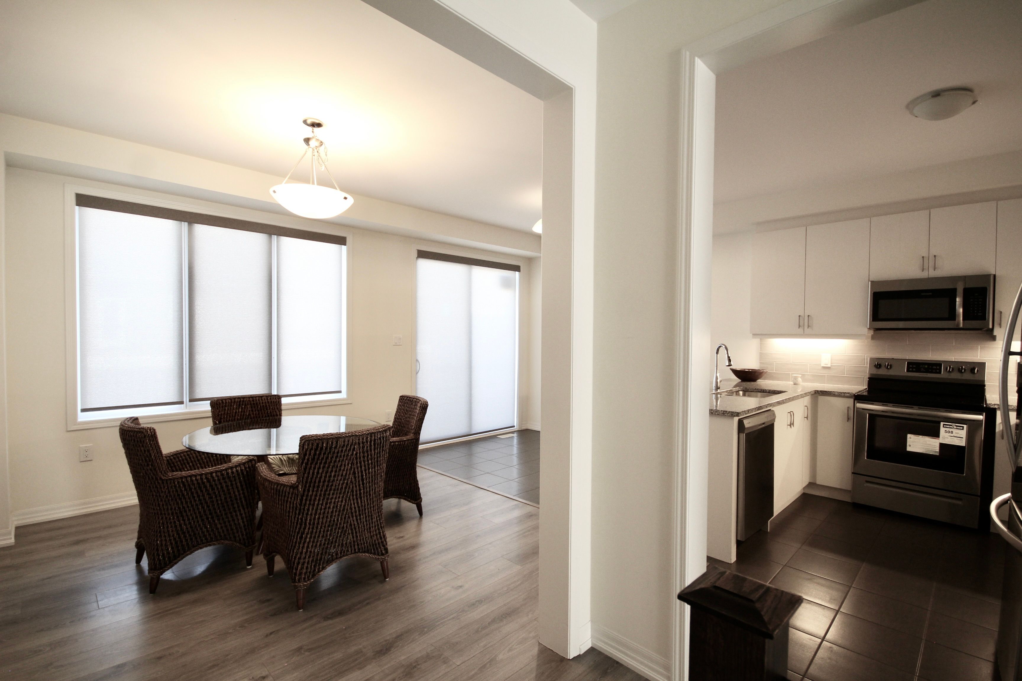 Discover modern elegance in this prestigious fully furnished 4-bedroom, 4-bathroom townhouse. Just 4 years new. Featuring 9 ceilings and wood floors throughout, this home is both stylish and functional. Spacious living: bright living room filled with lots of natural light. Gourmet kitchen: granite countertops, stainless steel appliances (french door fridge, stove, built-in microwave, and dishwasher), with a cozy breakfast area and a separate dining room, walkout to a large private terrace, perfect for relaxing or entertaining. Primary suite: master bedroom with walk-in closet and private 3-piece en-suite. Garage: wide double-car garage with ev charging outlet. Fully furnished: thoughtfully equipped with quality furniture, ideally located just minutes from major highways, grocery stores, and top shopping destinations, this home delivers the perfect blend of luxury, convenience, and modern living for individuals and families. Short/flexible term available for different price.