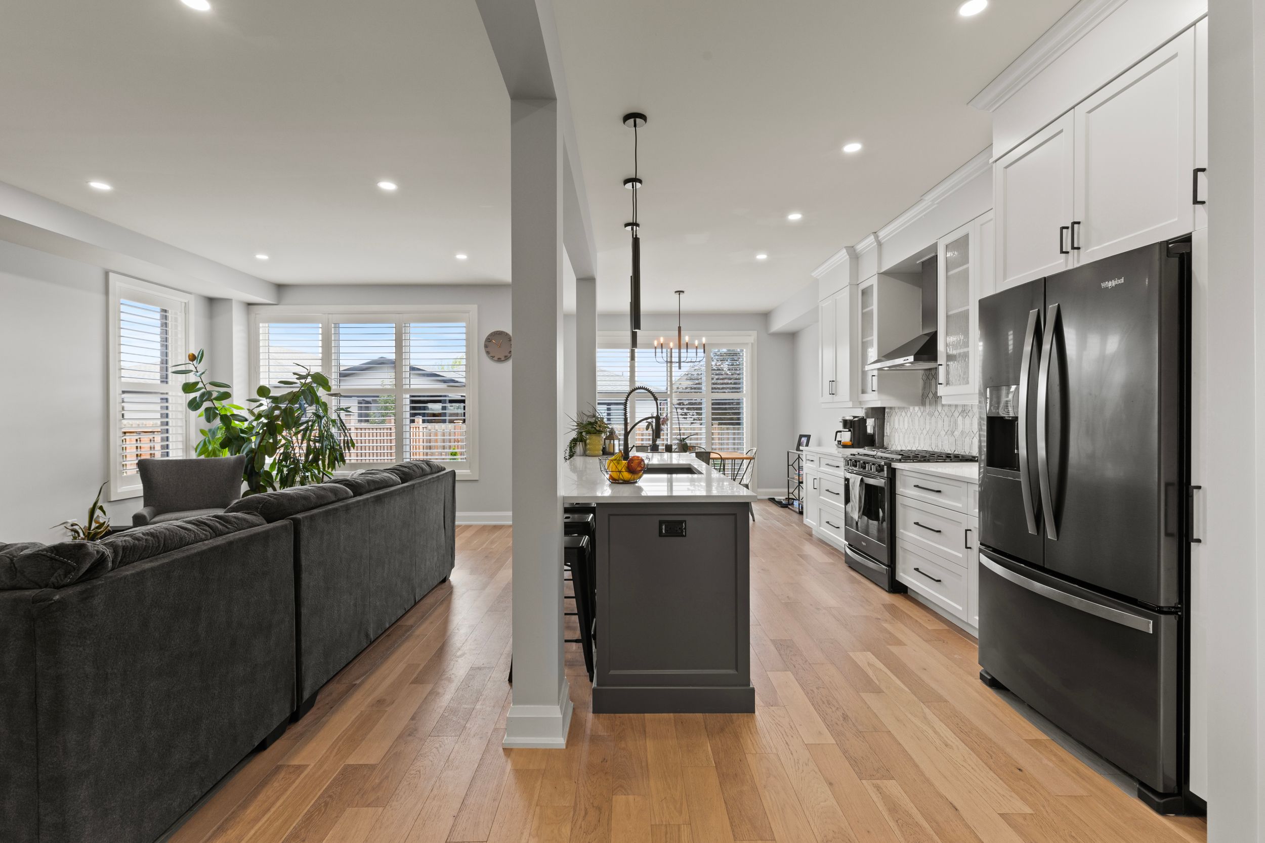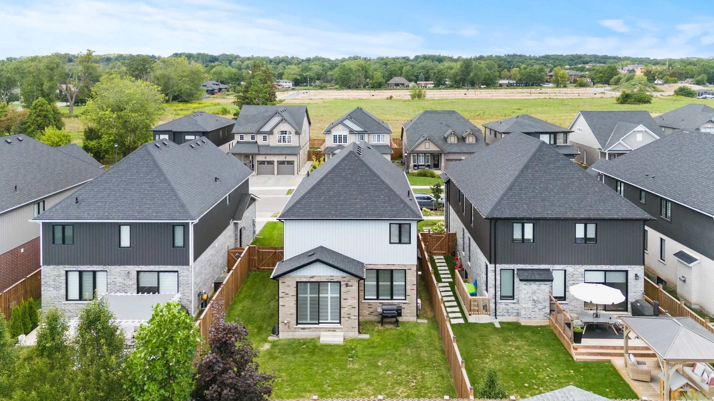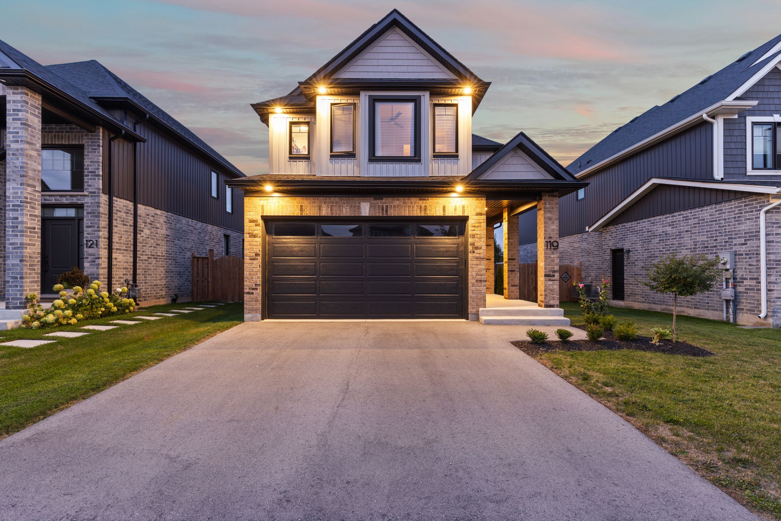 Welcome to 119 susan, a stunning two-storey home built by niagara's premier home builders kenmore homes, offering an impressive 2,148 square feet of living space. This home features open-concept living, three bedrooms, two and a half bathrooms, and a two car garage making it the perfect sanctuary for families or anyone seeking room to grow. You are greeted by a bright and inviting foyer that leads to an expansive main floor. The living room is filled with natural light and features a gas fireplace, creating the perfect ambiance for relaxation or entertaining. The heart of the home is undoubtedly the kitchen, adorned with cabinetry, ample cabinet storage, quartz countertops, a sleek backsplash, and high-end stainless steel appliances. The large island serves as a central hub for gatherings, enhanced by modern pendant lighting that complements the contemporary feel of this newly built home. Adjacent to the kitchen, a charming dining nook features sliding doors that open to your fenced-in backyard. Convenience is key with a main floor mudroom and laundry room, providing direct access to your two-car garage with a side entrance. A thoughtfully placed two-piece powder room rounds out the main floor, enhancing functionality for both residents and guests. Take the beautiful oak staircase to discover a large loft area that serves as a second living space ideal for family movie nights or a quiet retreat. The primary suite is a true oasis, complete with a walk-in closet and five-piece ensuite bathroom. Down the hall, you'll find two additional bedrooms, each boasting engineered hardwood flooring and 10-foot coffered ceilings, along with a four-piece bathroom. The unfinished basement is a blank canvas, featuring large windows and rough-in plumbing for a future bathroom, allowing you to customize this space to suit your needs and style.