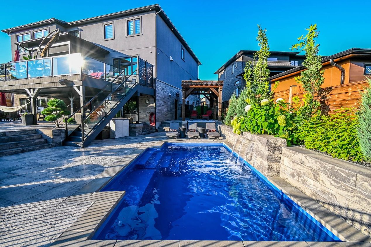 Discover unmatched welland luxury in this custom-built 2020 two-story home, offering over 6,000 sq. Ft. Of total living space crafted with exceptional detail and thoughtful design. From the moment you step inside, you're greeted by bright, open spaces and elevated finishes throughout. At the heart of the home is the chef's kitchen, featuring a striking blend of granite surfaces, italian marble, and custom cabinetry, paired with premium appliances. The standout parental wing serves as a private retreat, complete with a spa-inspired ensuite, huge walk-in shower, and his-and-hers walk-in closets, offering both luxury and functionality. This is truly a next-generation smart home, fully integrated with audio, dual heating and cooling zones, and intelligent automation for comfort, efficiency, and security. Step outside to your own outdoor paradise-a resort-style setting with a hot tub, custom smart pool with waterfall, and a wet bar, all overlooking protected conservation land and a tranquil creek. Whether entertaining or unwinding, this backyard delivers an experience like no other. A rare offering combining craftsmanship, technology, and natural beauty-this home is built to impress and designed to be lived in.