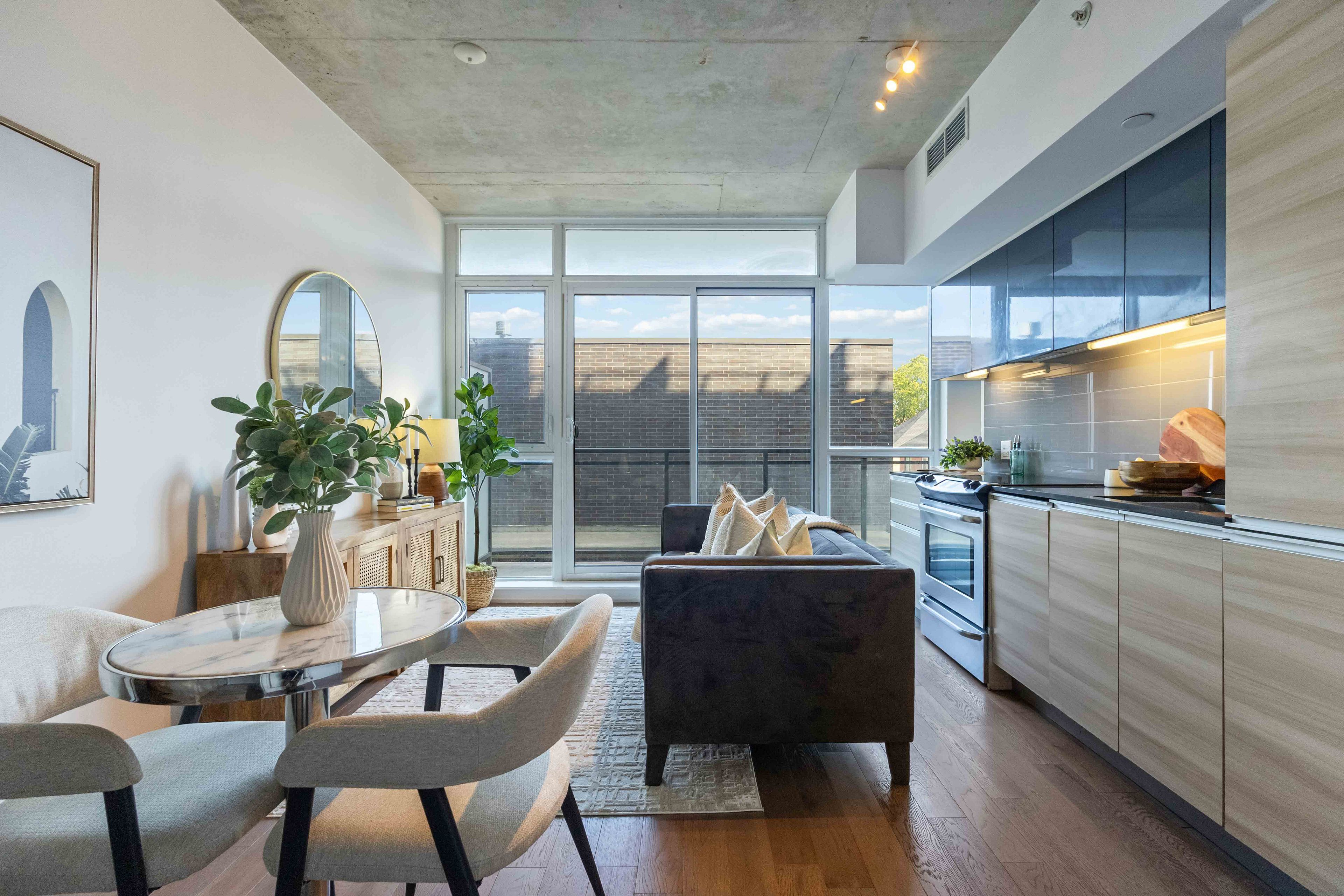 Attention first-time home buyers and savvy real estate investors! Welcome to this bright and modern 1-bedroom, 1-bathroom condo for sale in the heart of leslieville, offering exceptional lifestyle appeal and strong rental potential. This carpet-free condo features floor-to-ceiling windows, filling the space with natural light, and a functional open-concept kitchen ideal for everyday living and entertaining. The generously sized bedroom comfortably fits a king-size bed and includes wall-to-wall closet space for ample storage. Step outside to your private balcony, perfectly positioned to enjoy peaceful morning light and seamless indoor-outdoor living. Located in the pet-friendly carlaw building, home to crow's theatre and the popular piano piano restaurant, residents enjoy premium amenities including a 24-hour concierge, fully equipped fitness centre, and a rooftop terrace with bbqs and breathtaking city views. This condo is steps to leslieville's best cafés, restaurants, and shops, including dineen coffee, bonjour brioche, good neighbour, and more. With easy access to transit, parks, and downtown, the location is unbeatable.