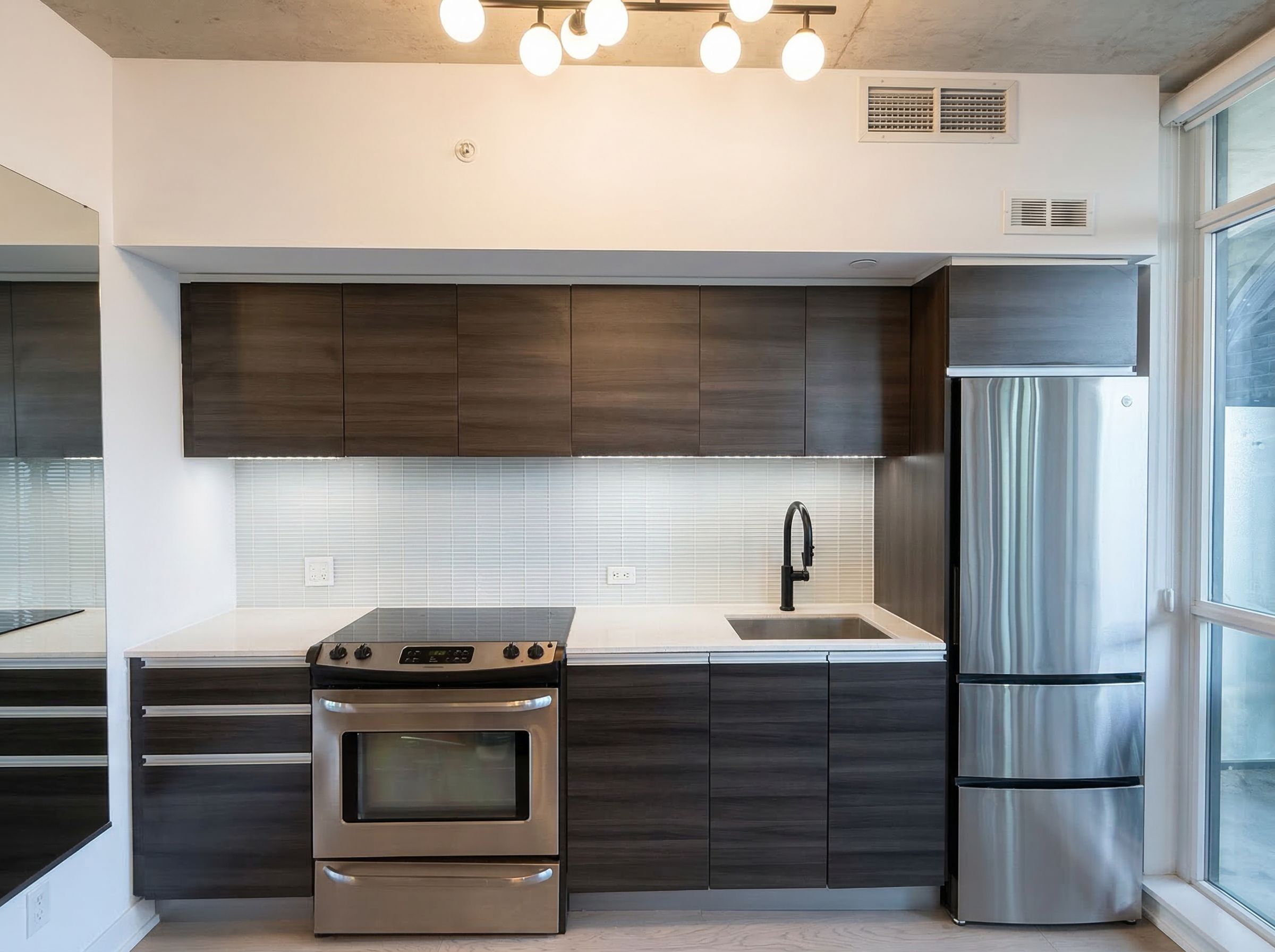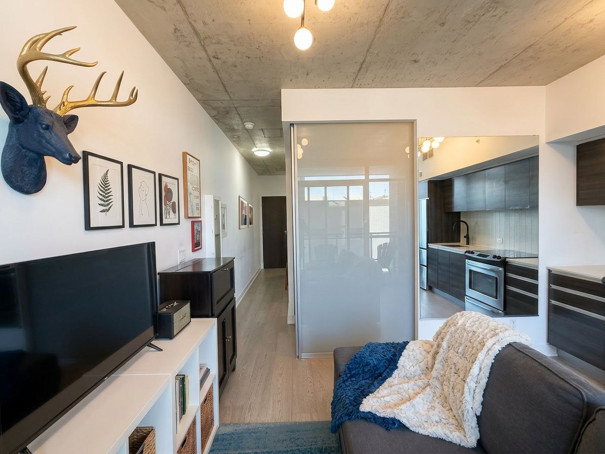 Functional and stylish 1-bedroom condo in the heart of leslieville at dundas & carlaw. This bright suite features a well-designed open-concept living, dining, and kitchen layout with a walk-out balcony from the living room-perfect for morning coffee or evening relaxation. Thoughtful upgrades throughout include zebra roller blinds for graded light and privacy, modern light fixtures with dimmers, and custom built-in storage solutions. The bedroom features a full-wall (10+ ft) custom closet with shelving and drawers, while the hallway offers a custom shoe and coat closet with both long and short hanging space. Additional updates include a new fridge (2025), spray kitchen faucet, and freshly re-caulked kitchen backsplash and bathroom (2026). Gas bbq hookup on the balcony. Located in vibrant leslieville with excellent transit access and a large selection of local eateries, cafes, shops, and fitness studios just steps away. Large storage locker (5'-11" width x 5' depth x 6-8" height) on the same level as the unit available for an additional $100/month. Underground parking available for rent through impark.