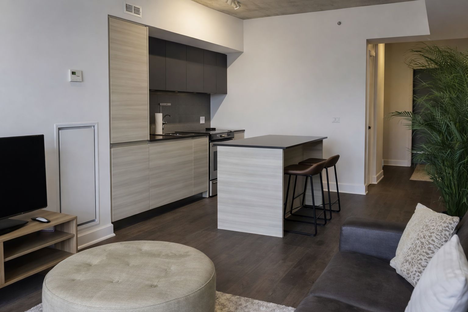 • Access to rooftop terrace, fitness center, and concierge service.