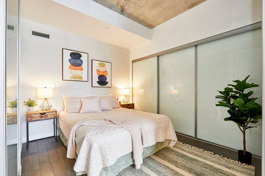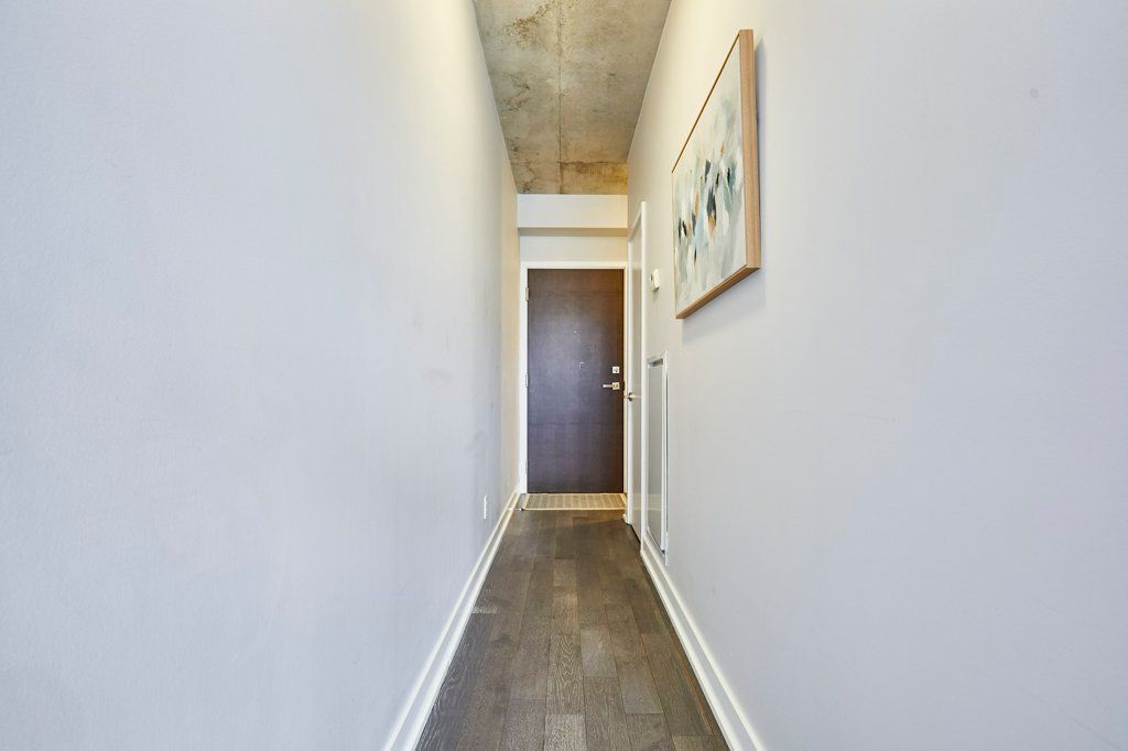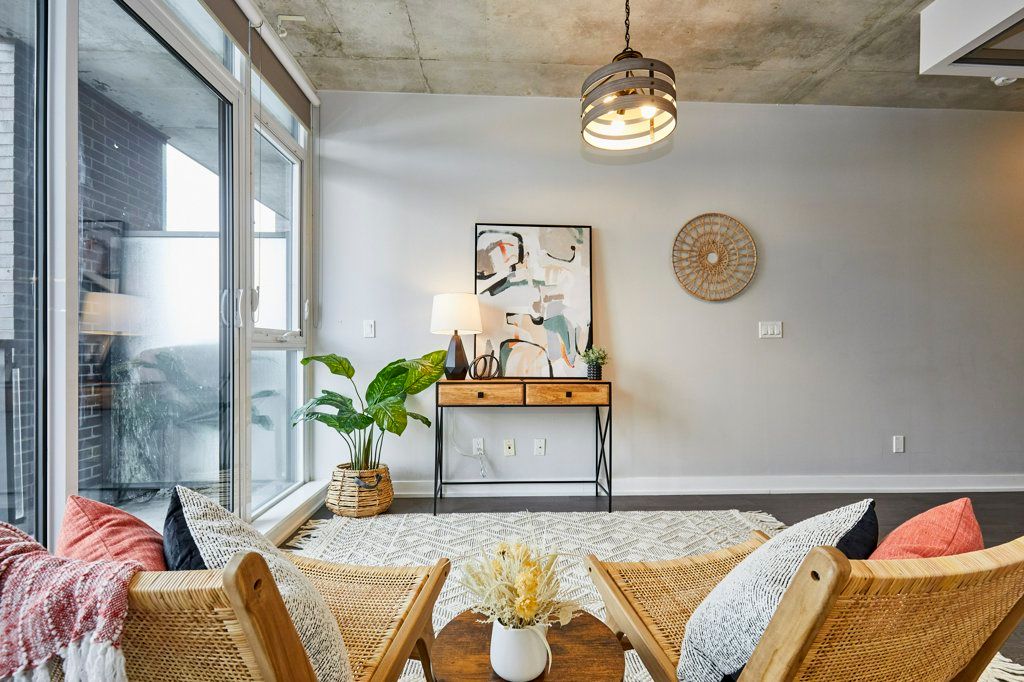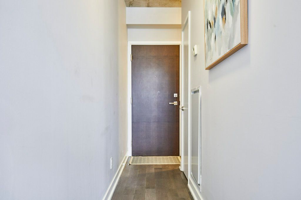Welcome to the carlaw - an impeccably designed condo-loft that offers a bright, efficient footprint and the perfect entry point into leslieville. This suite features 9-foot exposed concrete ceilings, floor-to-ceiling windows, and engineered hardwood throughout an open-concept layout optimized for modern living. The sleek kitchen has integrated appliances, quartz countertops, and under-cabinet lighting, while practical details like a proper entry hall closet and a separate laundry room with extra storage enhance the home's daily functionality. Step outside to your private, covered balcony - equipped with a gas bbq hookup-offering year-round usability and a quiet escape. Residents enjoy premium amenities including a 24-hour concierge, a fully equipped gym, and a rooftop terrace with breathtaking city skyline sunsets. With piano piano and crow's theatre at your doorstep, and the best shops and cafes of riverside and leslieville are just a short stroll away, this location offers a completely walkable lifestyle in one of toronto's most coveted pockets. This property is priced for immediate action, this suite is the leslieville entry point you've been waiting for!
