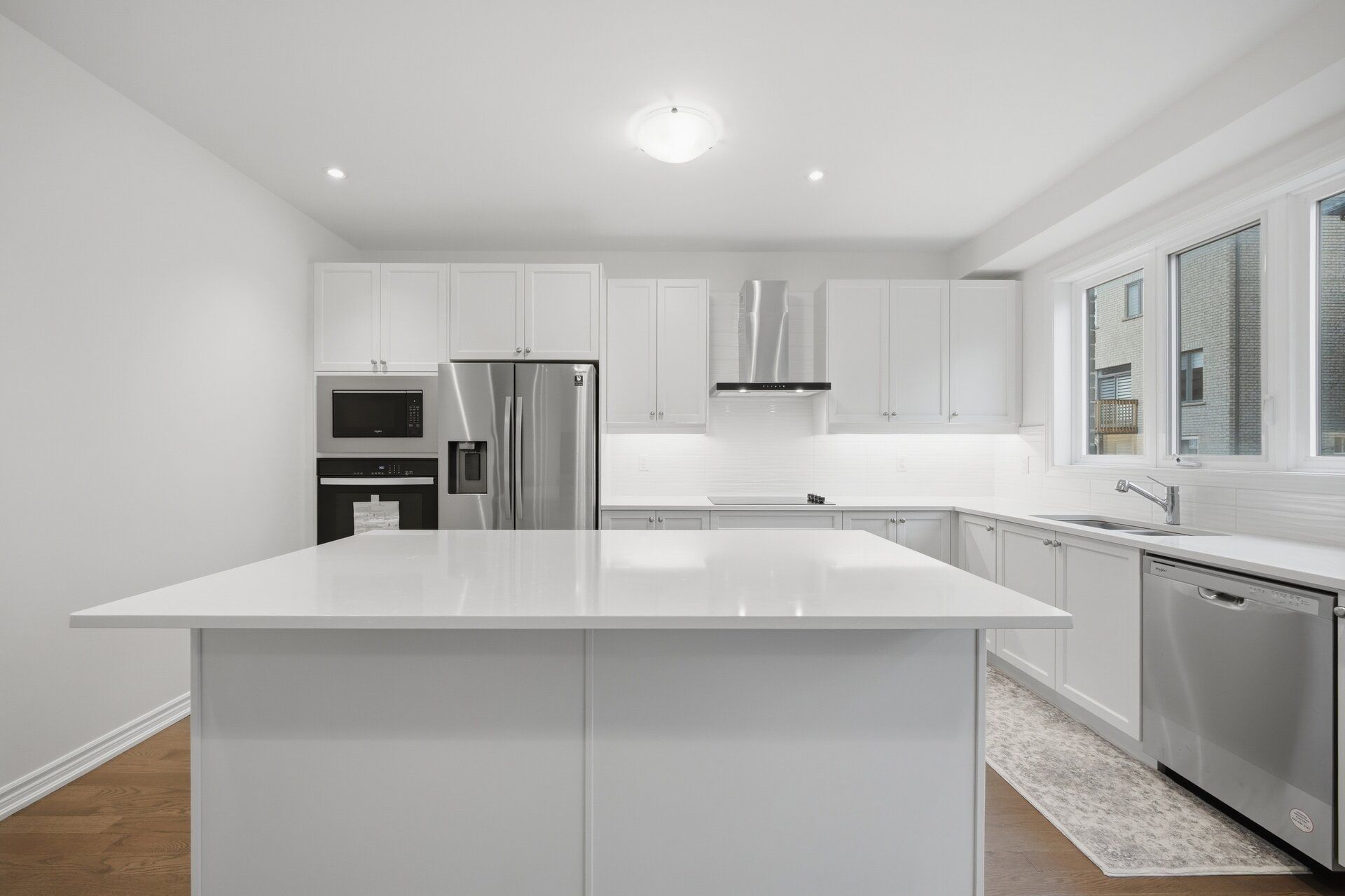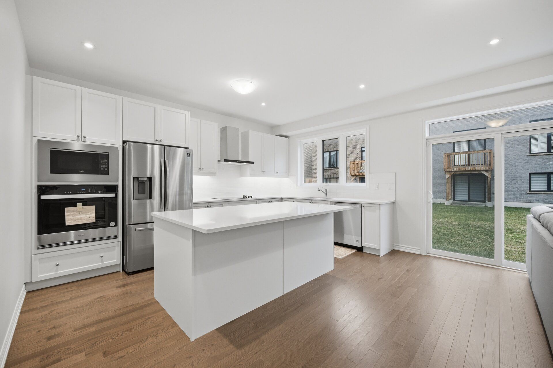 • Upgraded kitchen with quartz countertop, built-in microwave, and oven.