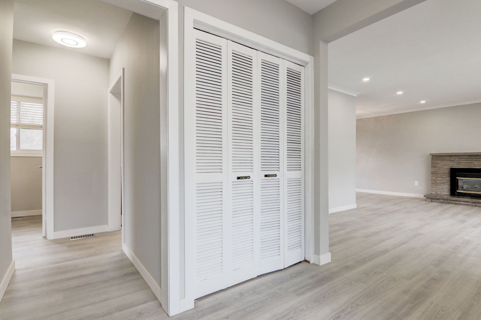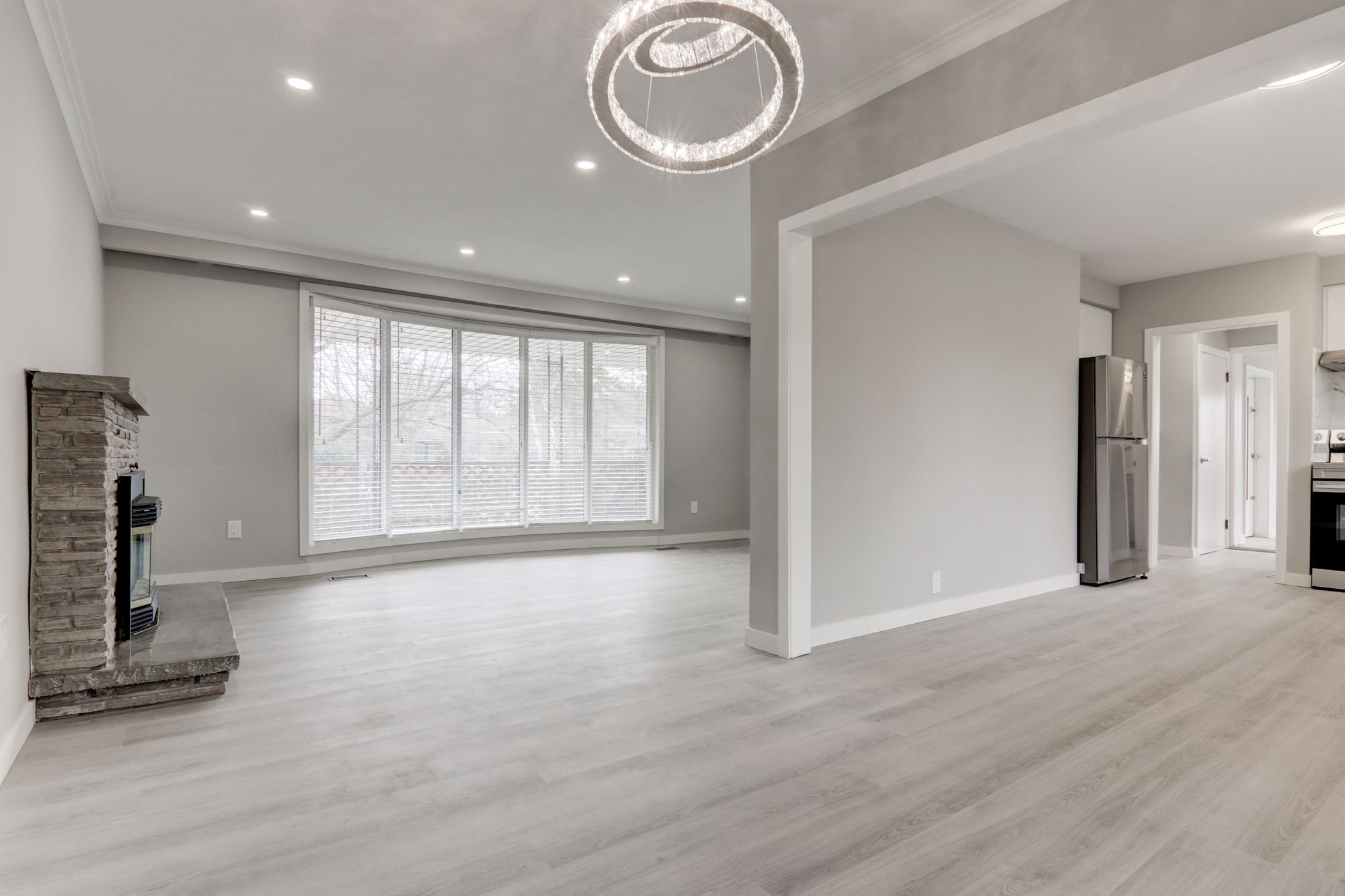 • Spacious living room with a fireplace creates a welcoming atmosphere.