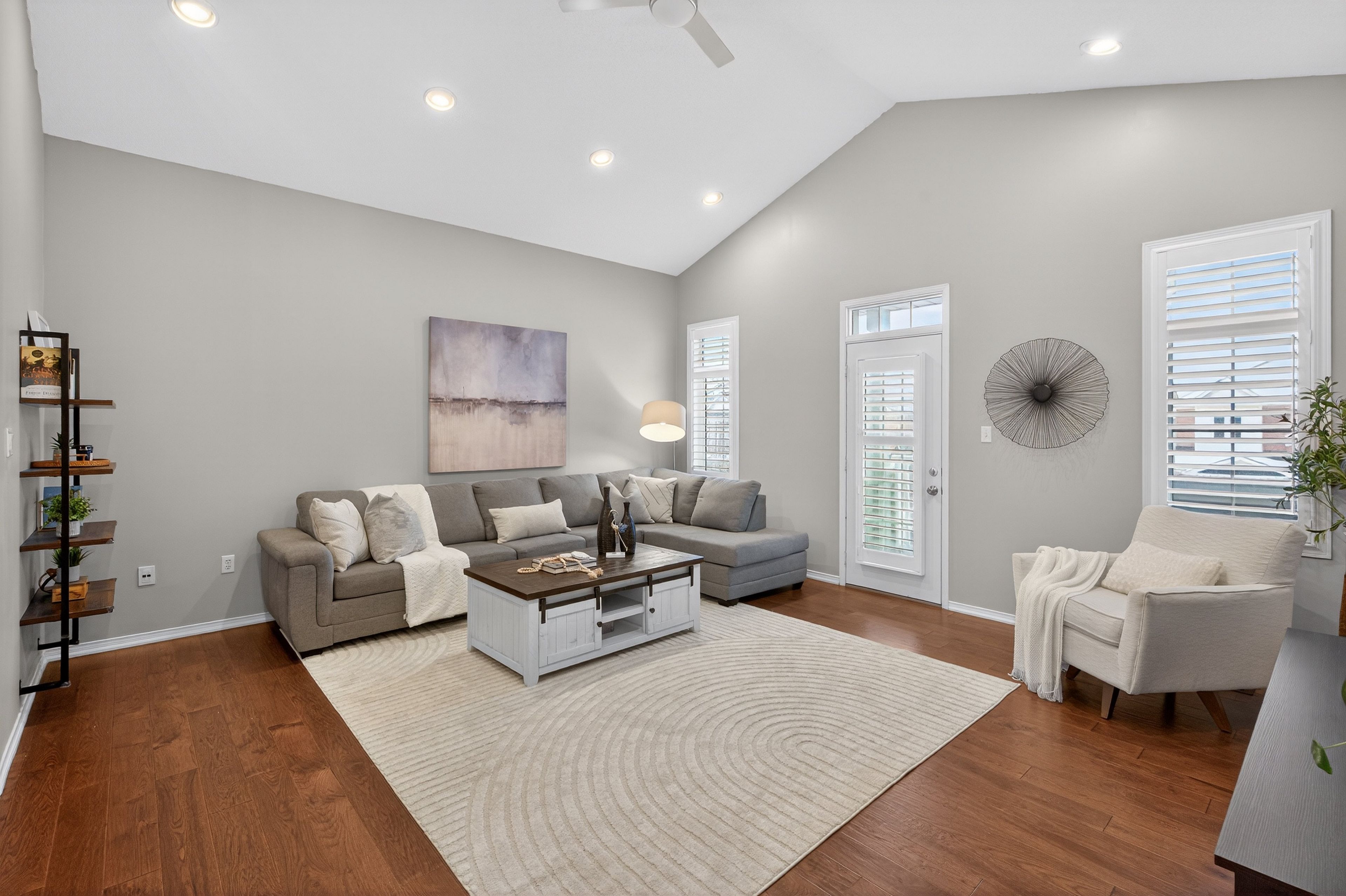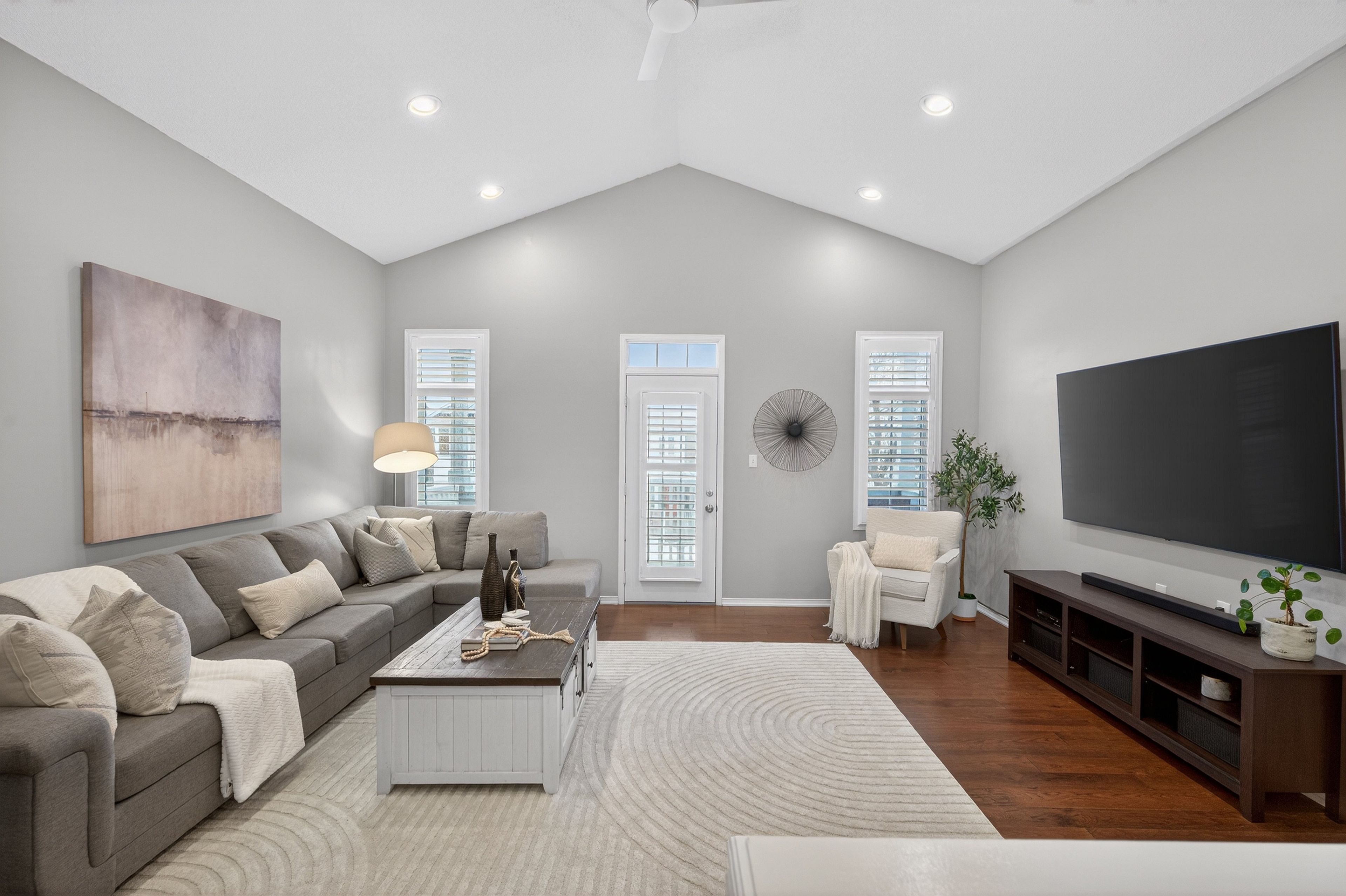 • Large second-floor family room with vaulted ceiling and balcony access.