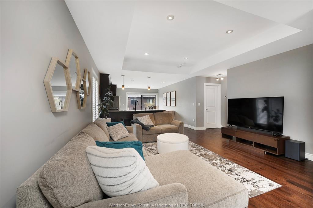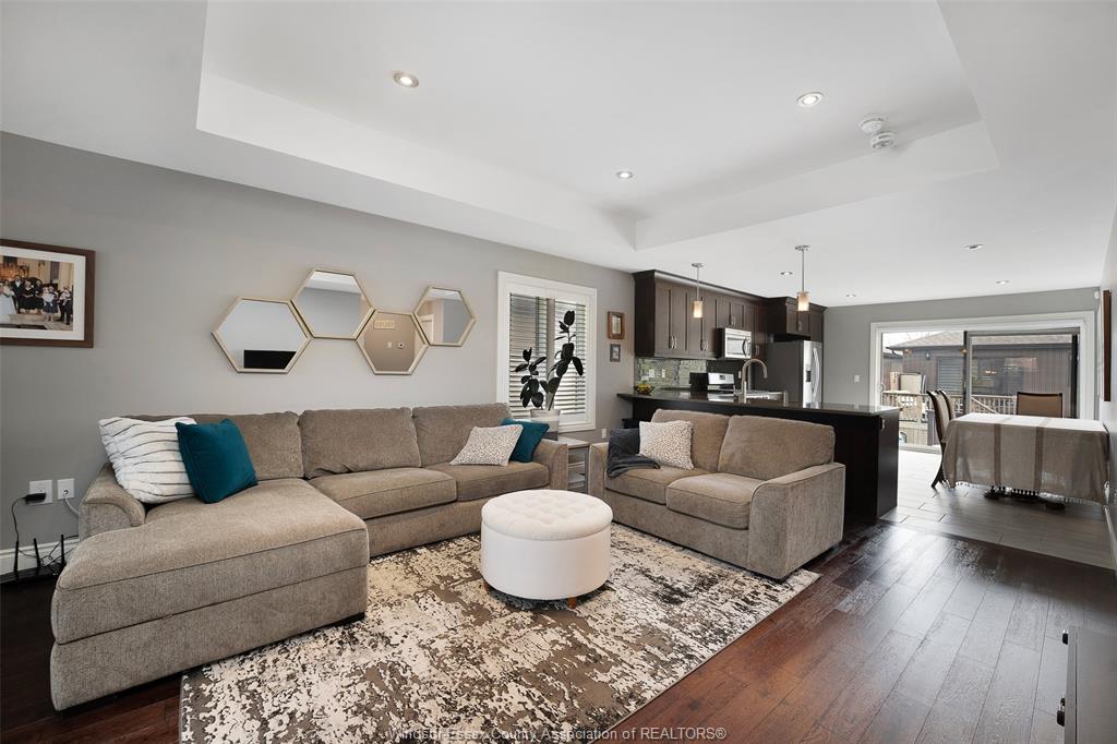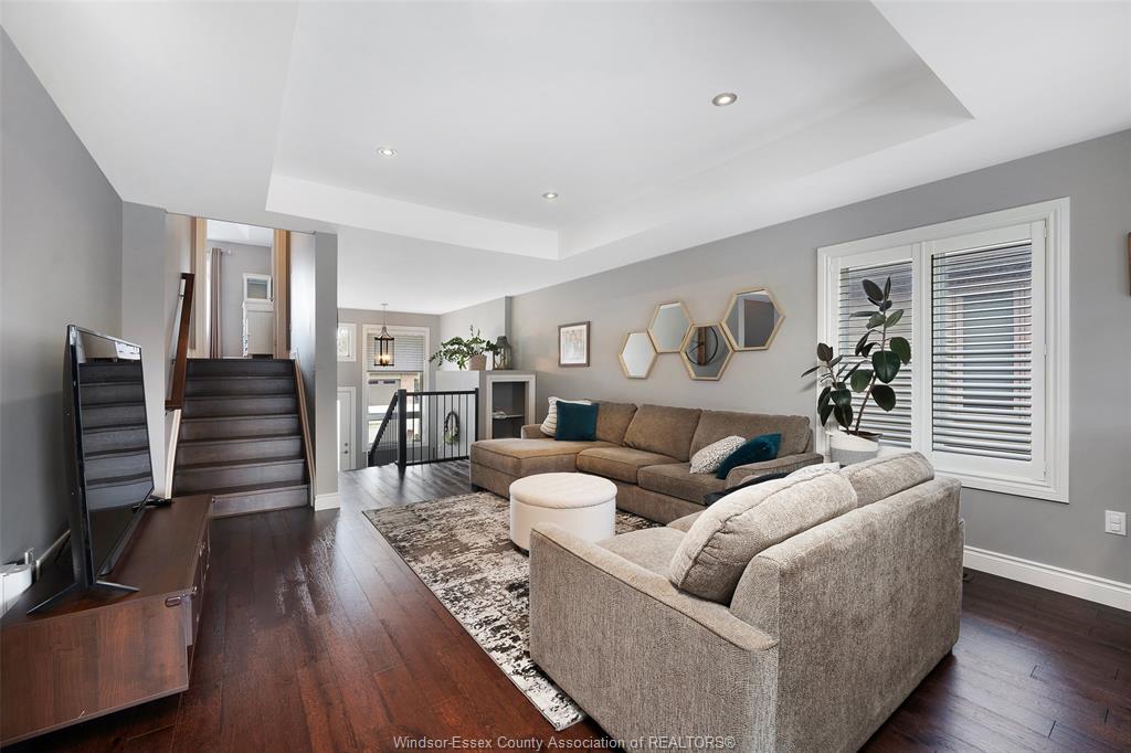 • Rich engineered hardwood and tray ceilings enhance main level appeal.
