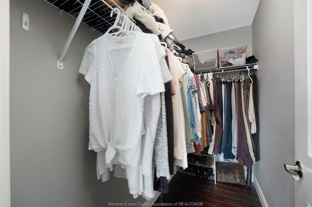 • Two large bedrooms with walk-in closets and hardwood flooring.
