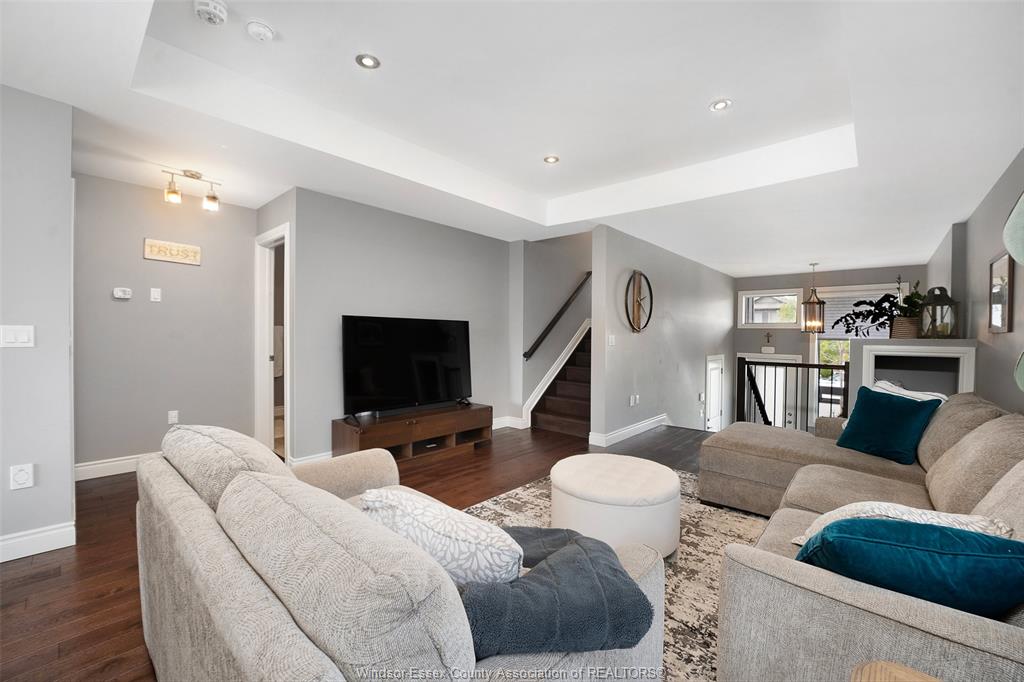 Luxury end-unit townhome elegantly finished with brick and james hardie siding. This beautifully appointed 1,260 sq ft home offers upscale finishes throughout, starting with a spacious porcelain-tiled foyer featuring large windows and a glass front door. The main level showcases rich engineered hardwood, tray ceilings, crown moulding, and a stylish kitchen with quartz countertops, under-cabinet lighting, and patio doors leading to a 10’ x 12’ deck. Two large bedrooms both feature walk-in closets and hardwood flooring, including a primary suite with a luxurious ensuite complete with porcelain tile and glass shower. The fully finished lower level adds exceptional living space with a gas fireplace, custom shelving, and a third bedroom. A beautiful, move-in-ready home with high-end finishes throughout.