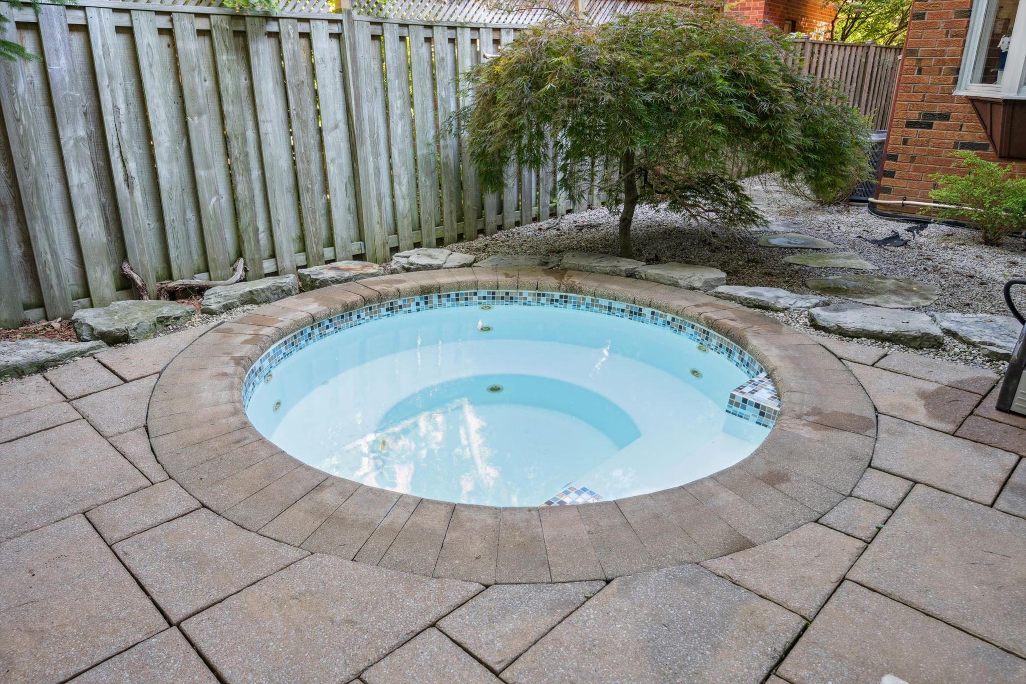 • Muskoka-like backyard features an in-ground pool, hot tub, and BBQ area.