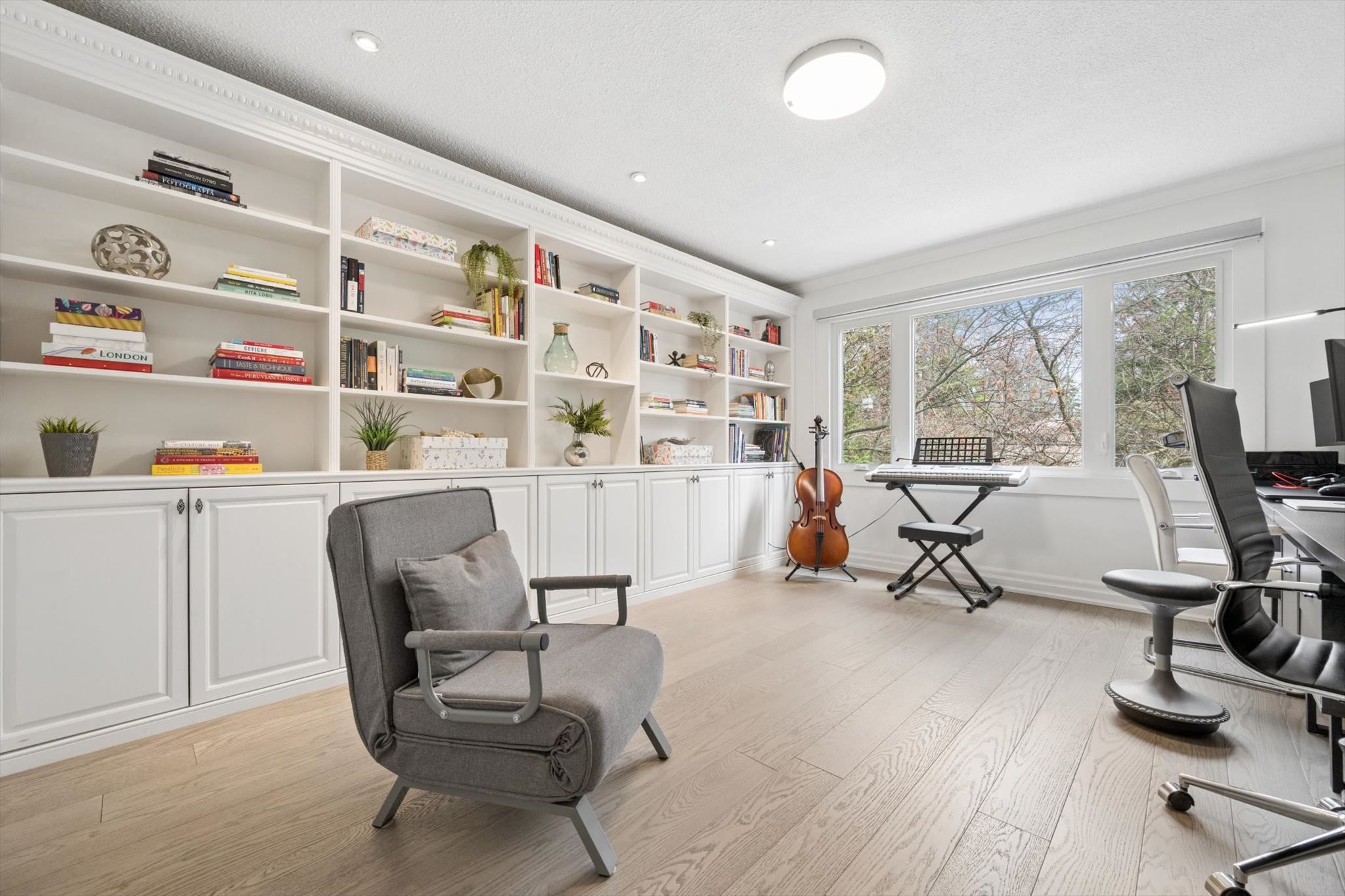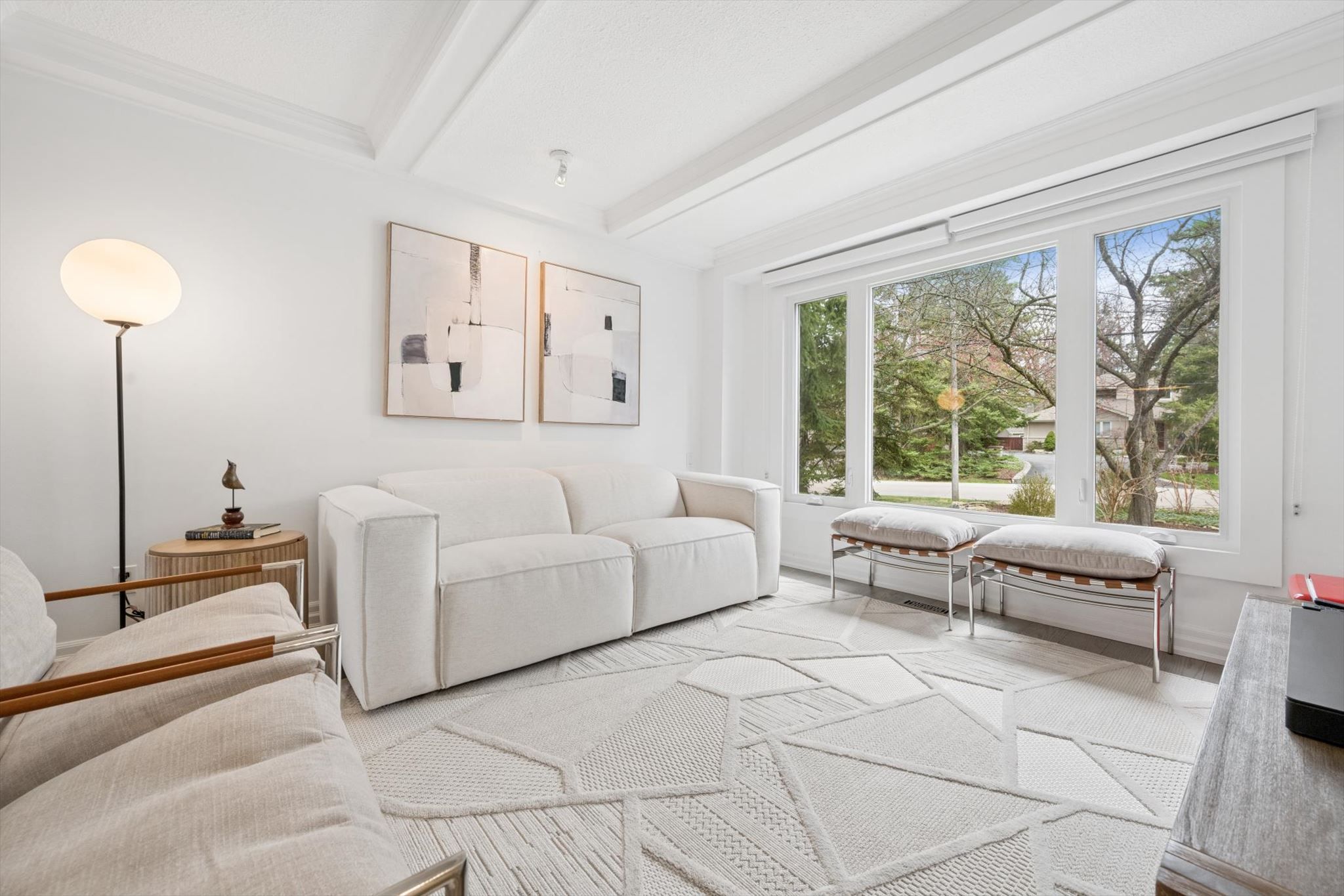 • Expansive living area with cathedral ceilings and abundant natural light.