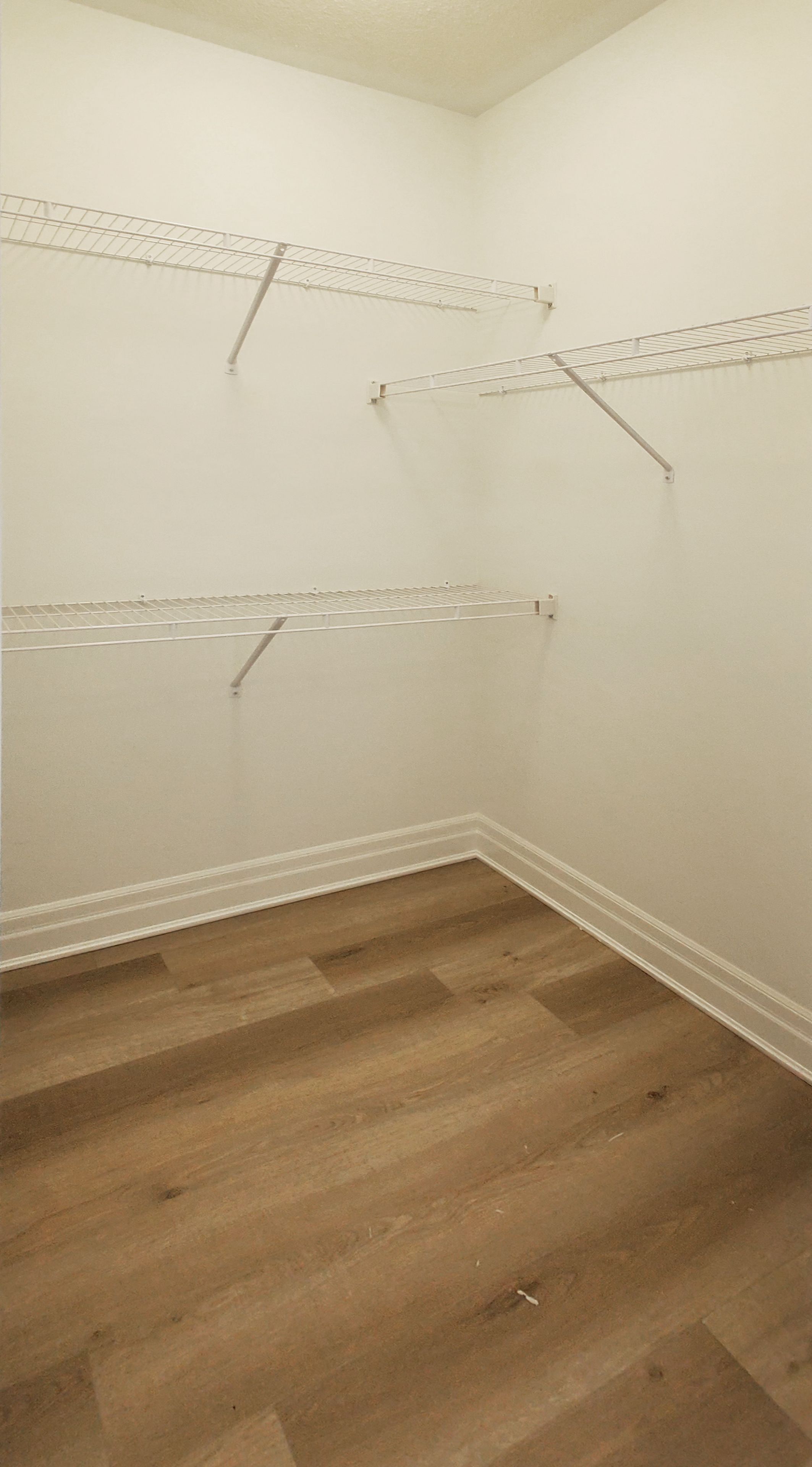 • High ceilings and vinyl flooring create an open and inviting atmosphere.