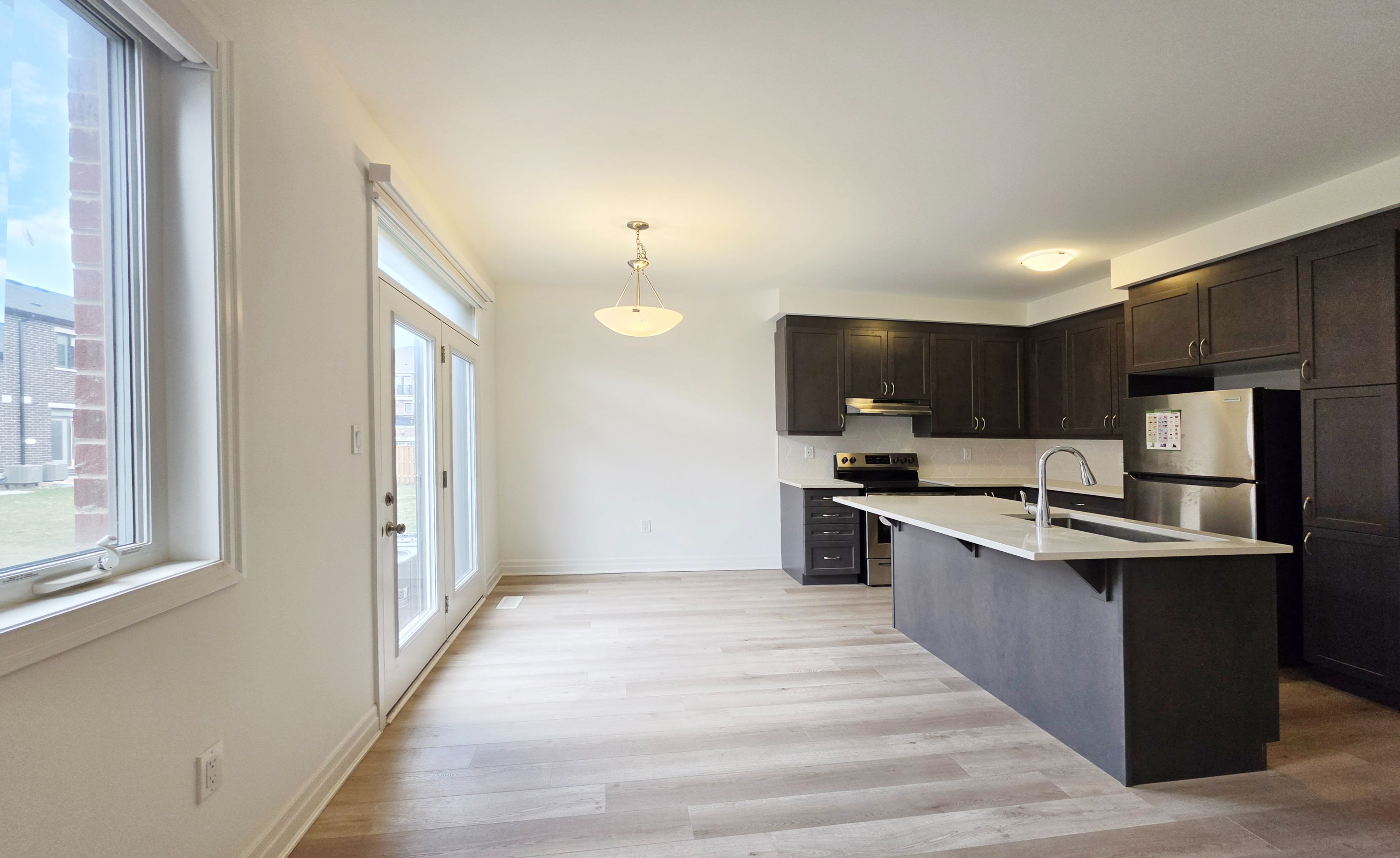 Freehold classic 3 bedroom two-storey townhouse with private backyard in joshua creek community. Approx 2200 sqft total living space including newly finished basement w/ modern 3pc bathroom. High ceiling -9ft throughout, beautiful vinyl flooring throughout main and second. Open concept kitchen w/ quartz countertop, solid wood cabinets, brand new stainless steel stove & dishwasher, newer fridge & range hood, custom built backsplash. 2nd floor laundry. Brand new luxury zebra blinds throughout. Upgraded doors & trims, and oak staircase. Ev charger outlet ready in garage. Enjoy quick access to hwy 403 & 407 & qew, top-ranking schools, major grocery stores, banks, restaurants, malls, & all essential amenities just minutes away. This move-in ready home combines luxury, location, and lifestyle. Don't miss this incredible opportunity!