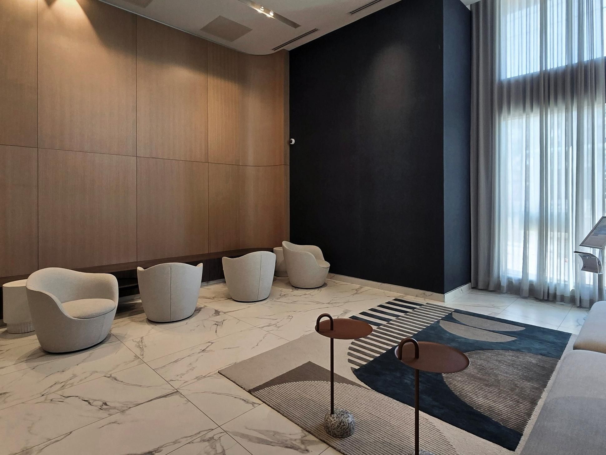 This stylish 2-bedroom + den, 2-bathroom condo offers 806 sq. Ft. Of thoughtfully designed interior space, complemented by a juliette balcony with a lovely southeast view. The open-concept layout features a sleek kitchen with quartz countertops, high-quality appliances, and ample storage - seamlessly flowing into the spacious living and dining area. With 9-ft ceilings and floor-to-ceiling windows, the home feels bright, airy, and expansive - perfect for both relaxing and entertaining. The primary bedroom includes a 3-piece ensuite and a large closet, while the second bedroom offers flexibility for guests or a home office. The den provides an ideal workspace or reading nook. Additional conveniences include in-unit laundry and secure parking. Located just minutes from the gardiner expressway and highway 427, with ttc access at your doorstep, commuting is effortless. Enjoy proximity to sherway gardens mall, top restaurants, shops, and parks - all within a vibrant, well-connected west toronto community. Extras: amenities include an outdoor rooftop terrace, a private event space with a kitchen and fireplace, a library/study with terrace access, and a fully equipped gym featuring high-end training equipment