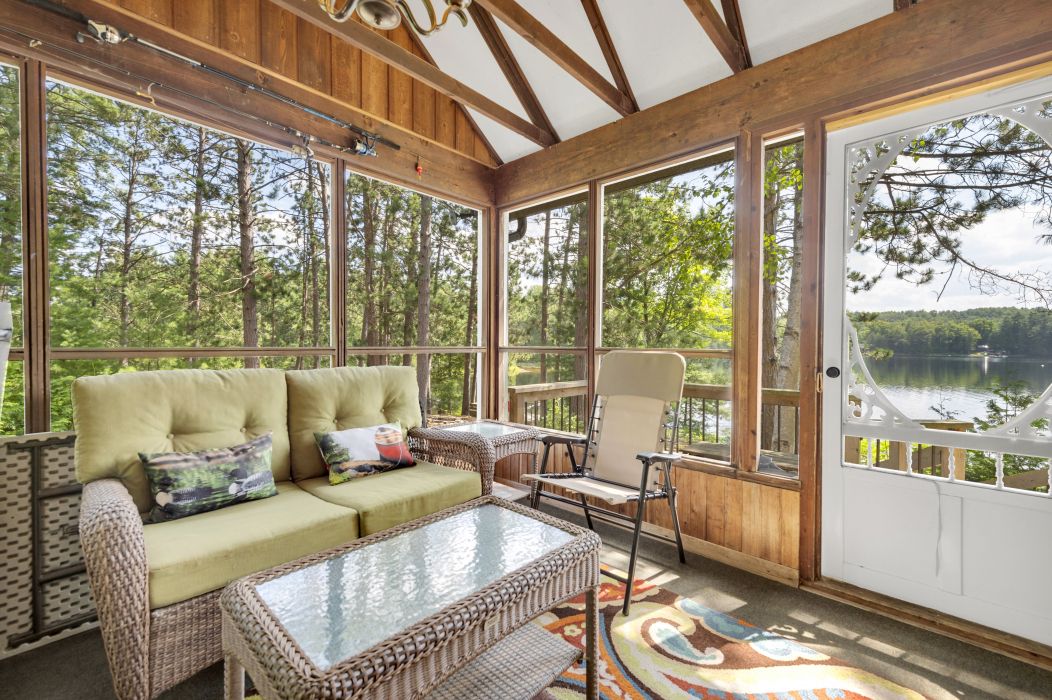 • Enjoy the lake breeze in a comfortable screened-in sunroom.