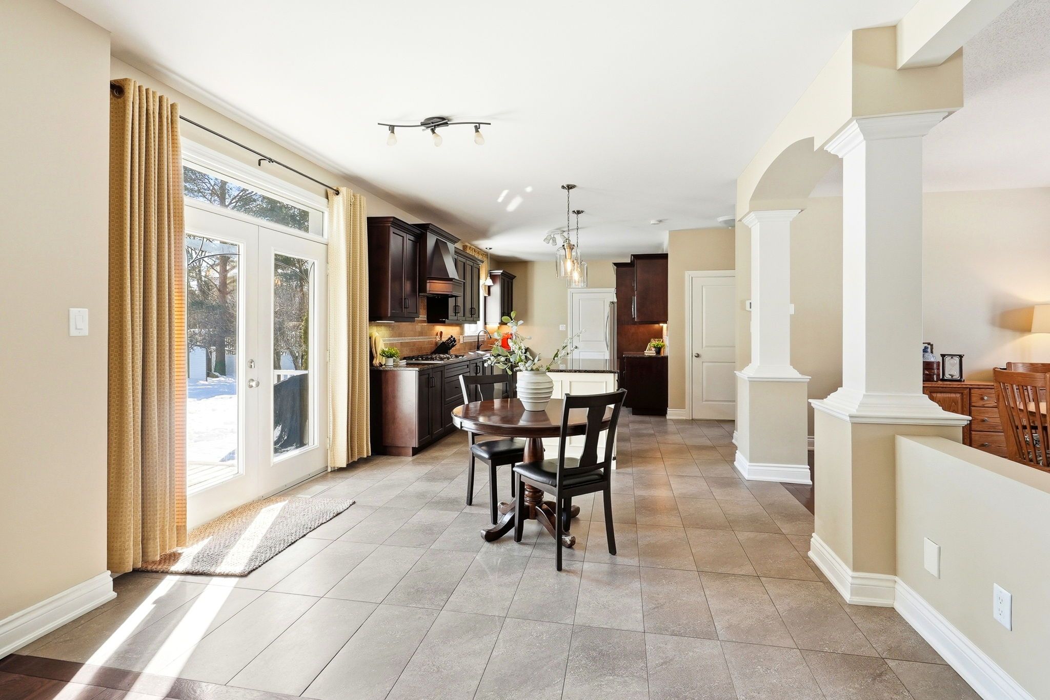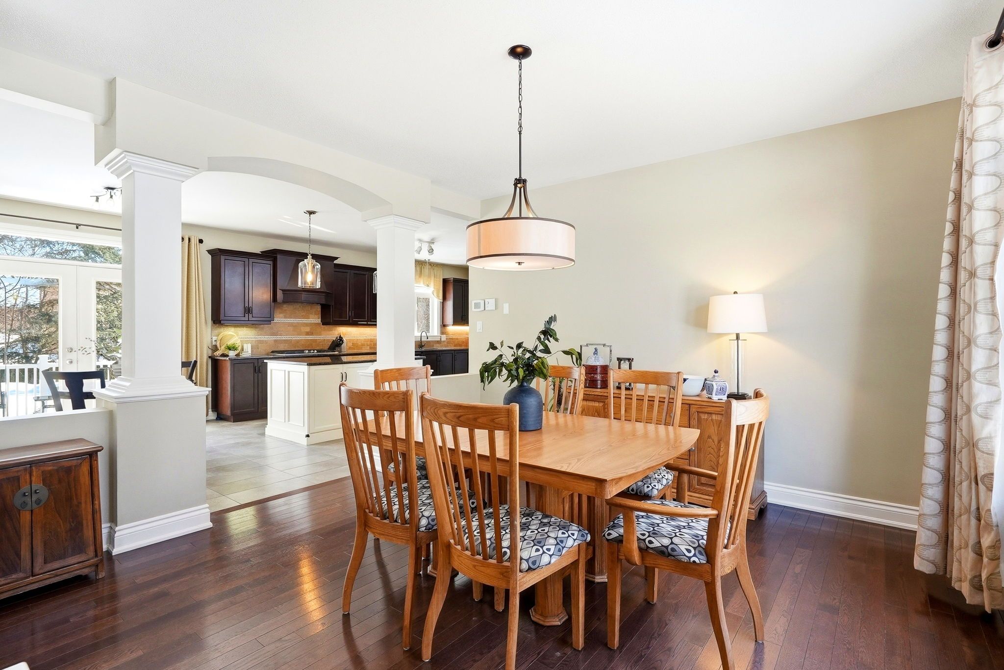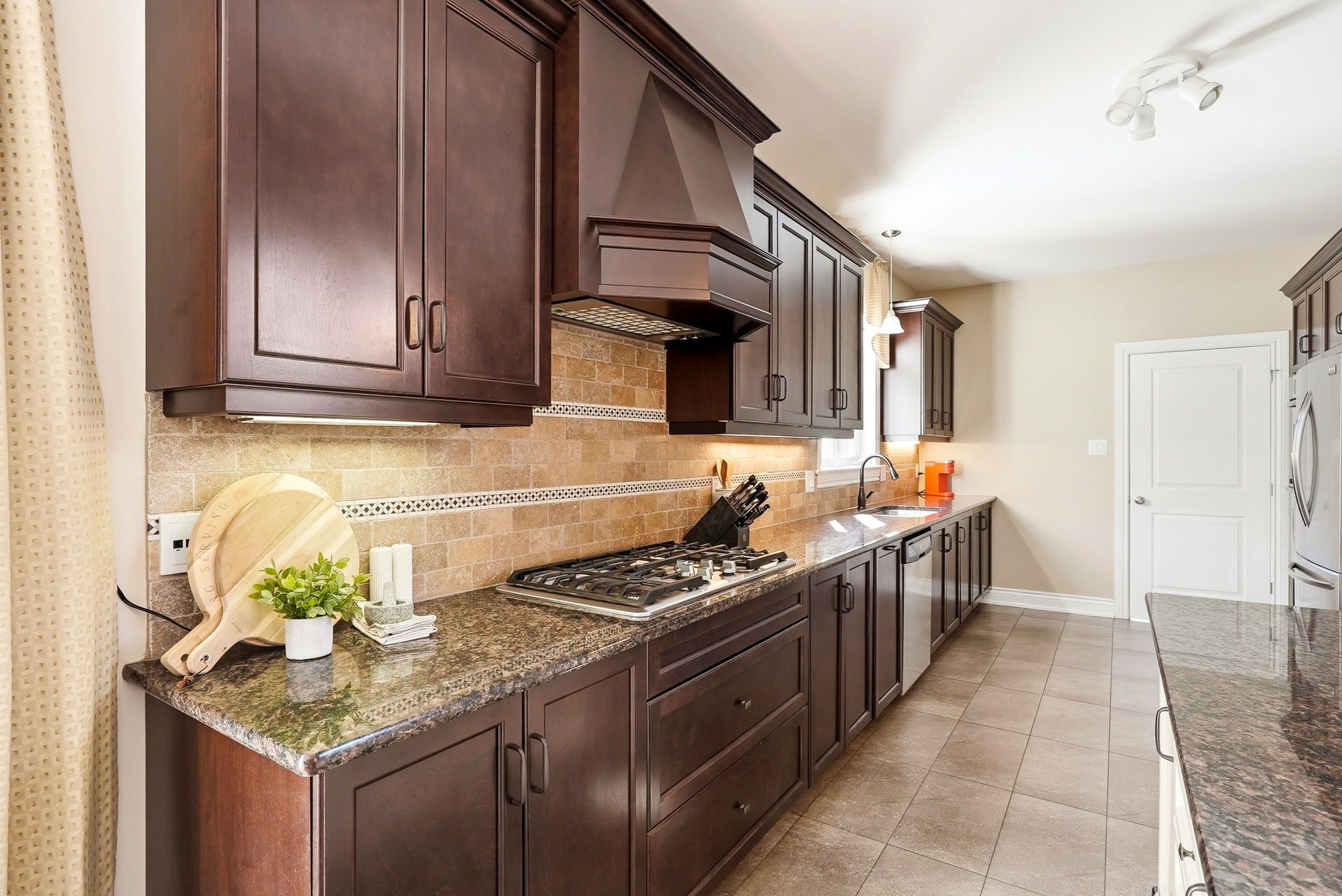 • Chef's kitchen with gas cooktop, double ovens, and plenty of prep space.