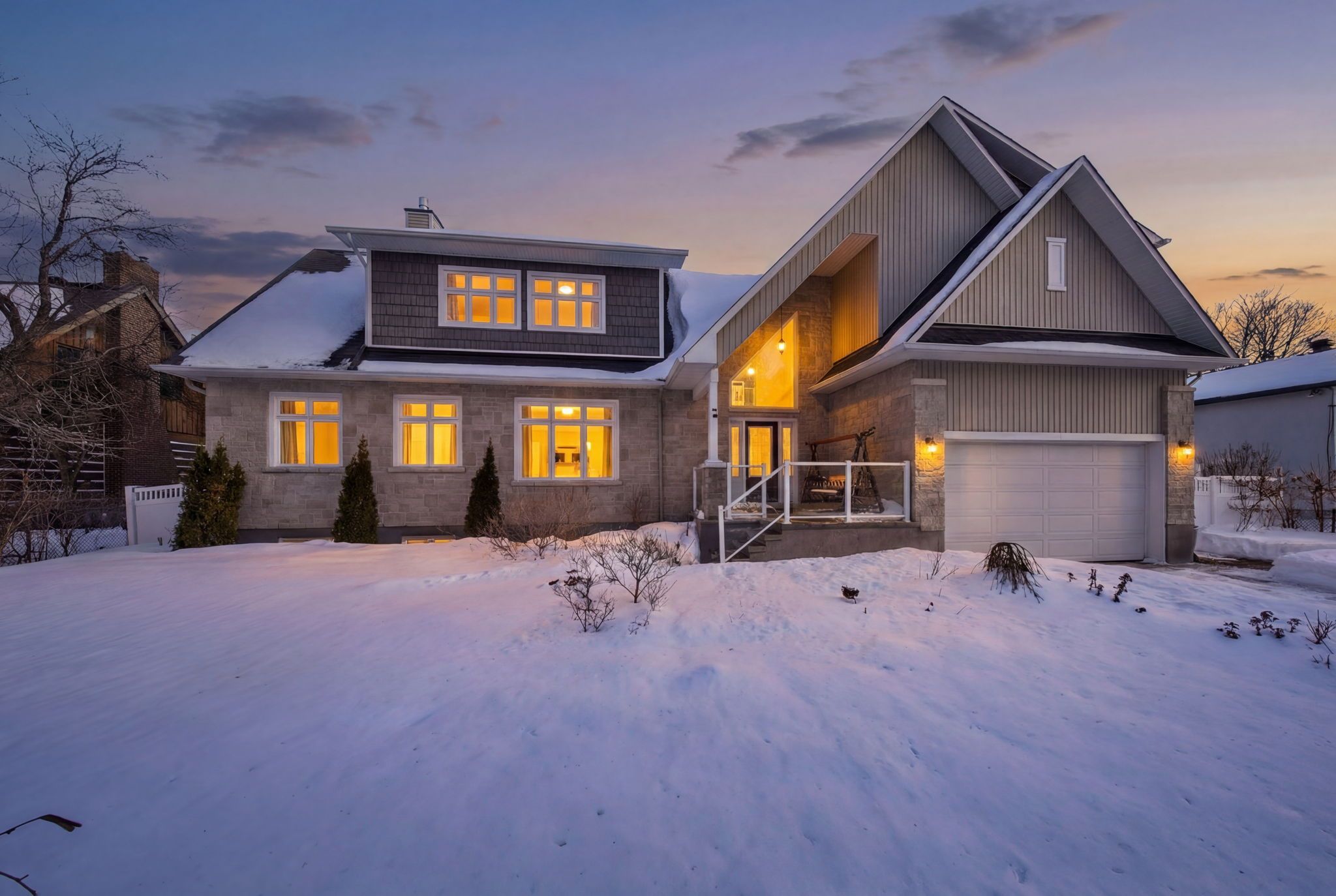 Set on a private 100ft x 150ft lot, this striking stone-front custom home in morgan's grant offers over 3,500 sq ft of beautifully finished space. Rebuilt in 2013 (foundation retained), the 3+1 bedroom, 2. 5 bathroom residence combines modern comfort, thoughtful design, and family-friendly functionality with the rare feel of tranquil country living, just minutes from kanata. The welcoming front porch leads into a dramatic two-storey foyer with equally impressive windows. The bright main level features thoughtfully designed living spaces, highlighted by a double-sided gas fireplace shared between the living & family rooms. The deslauriers crafted chef's kitchen is well equipped for both family meals & hosting, offering a gas cooktop, double wall ovens, stainless steel appliances, generous prep & storage space, a breakfast area & a formal dining space. Upstairs, the oversized primary suite offers a walk-in closet, infrared sauna & a striking double-sided fireplace shared with its ensuite that features double vanities, a separate shower & a tub overlooking the backyard. Two additional bedrooms, a full bathroom - and a versatile loft overlooking the foyer (providing the perfect reading nook, office, or flex space!) completes this upper level. The fully finished basement extends the living space with a large recreation room, electric fireplace, storage room & optional guest or teen space. Step outside to the rear deck with awning, overlooking the expansive landscaped backyard complete with fruit trees - perfect for outdoor dining, entertaining, or relaxing in the natural setting. Plus, an attached two-car garage with inside entry, a mudroom with ample storage, main-floor laundry with powder room, and a paved driveway with space for additional vehicles. Take advantage of this unique opportunity to enjoy space, nature & community living with transit, shops, schools, ponds, parks, hiking, walking, and ski trails nearby. Min 48hr irrevocable.